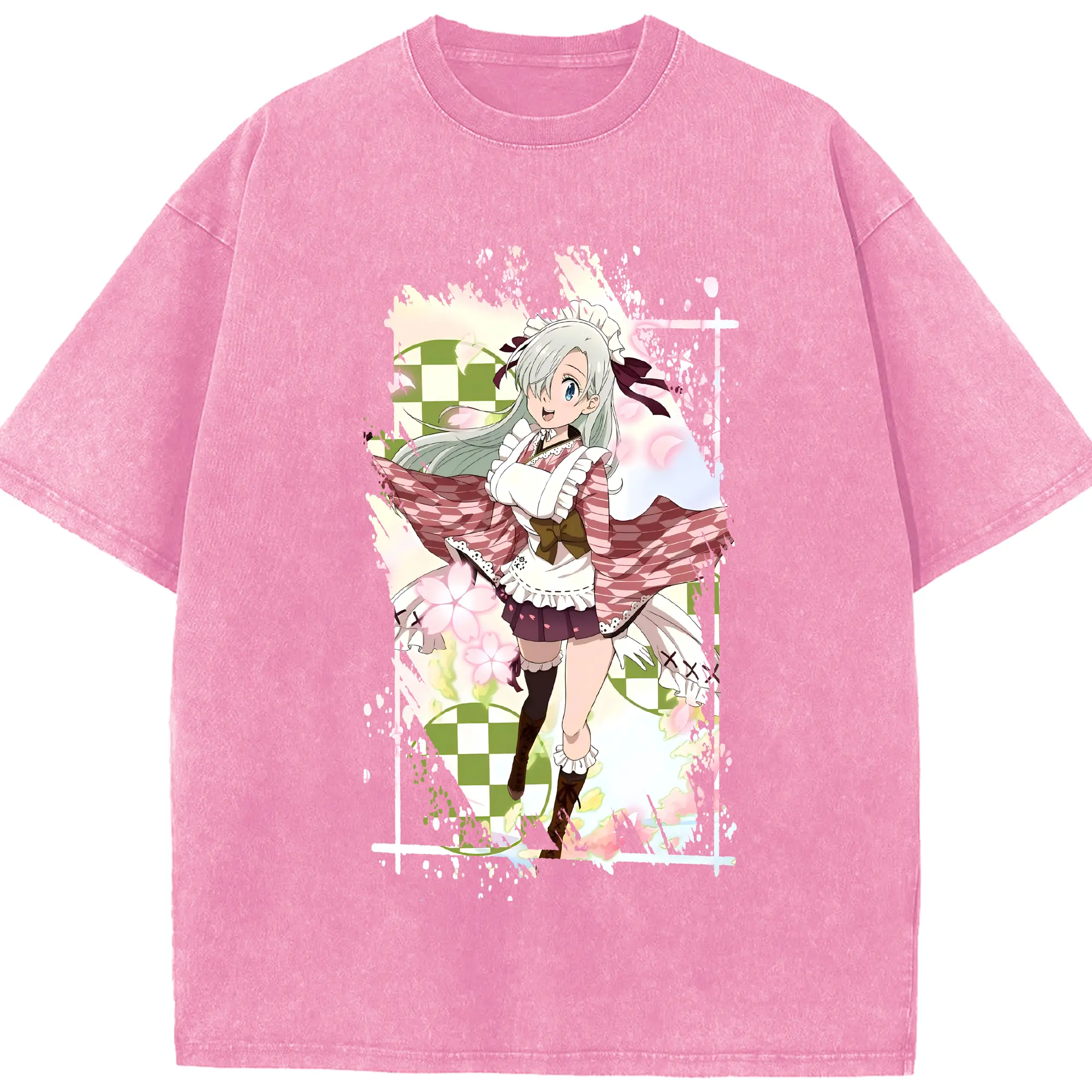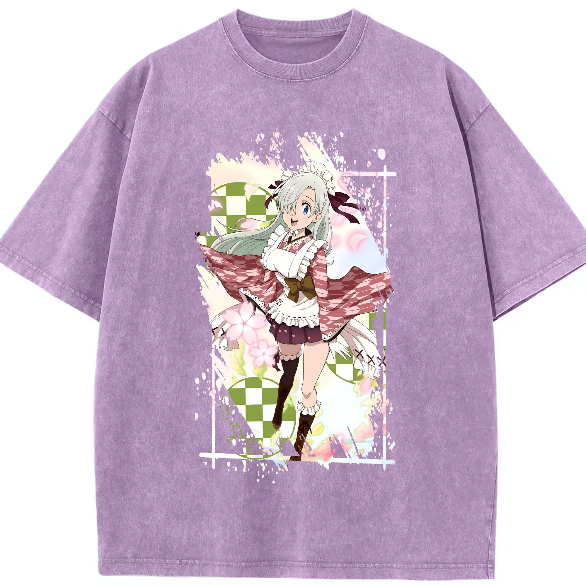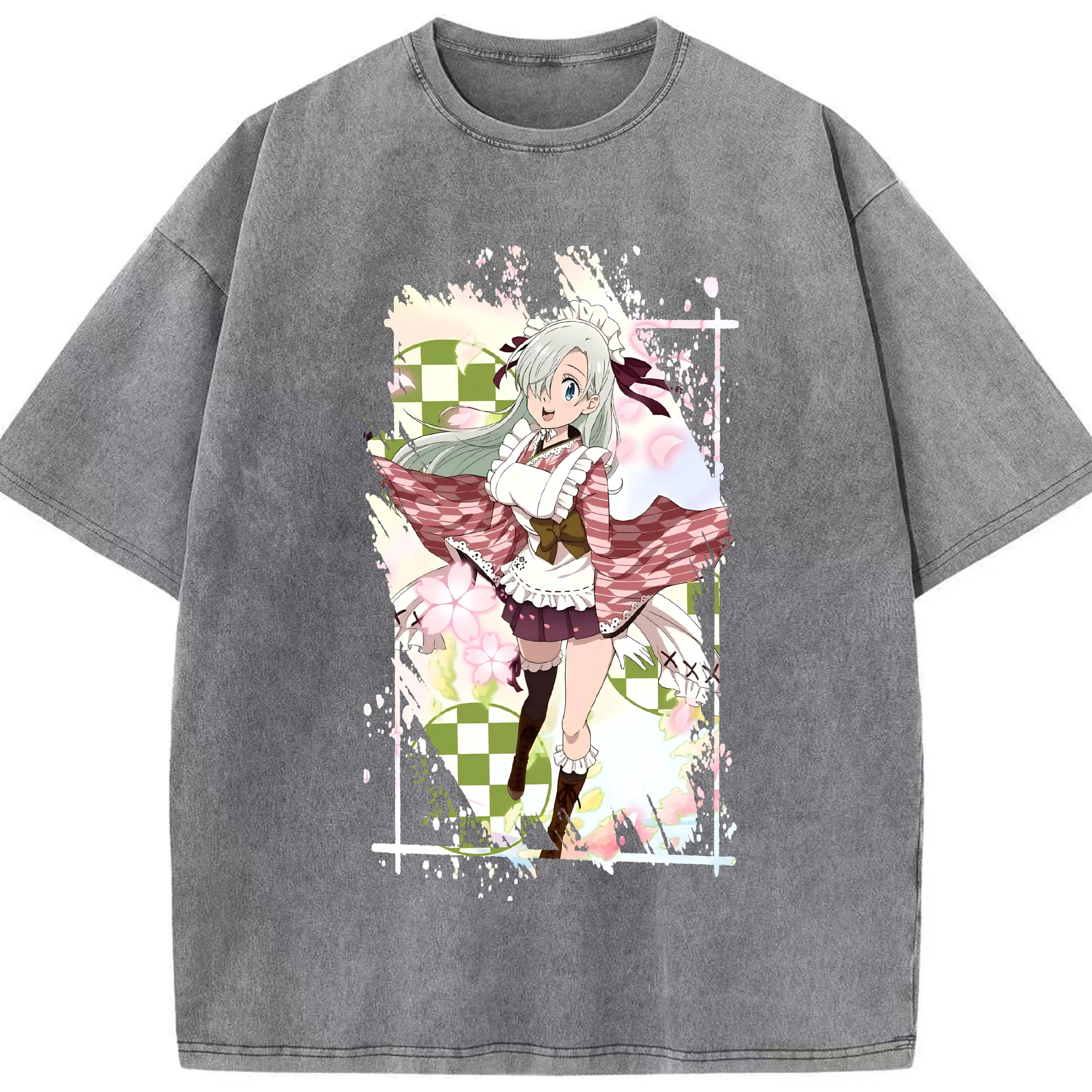 七つの大罪 グッズ エリザベス - 綿100% ヴィンテージ風 半袖Tシャツ ・ 背面プリント ・ 柔らか肌触り ・ 通気性 快適 ・ スポーツ カジュアル 外出用