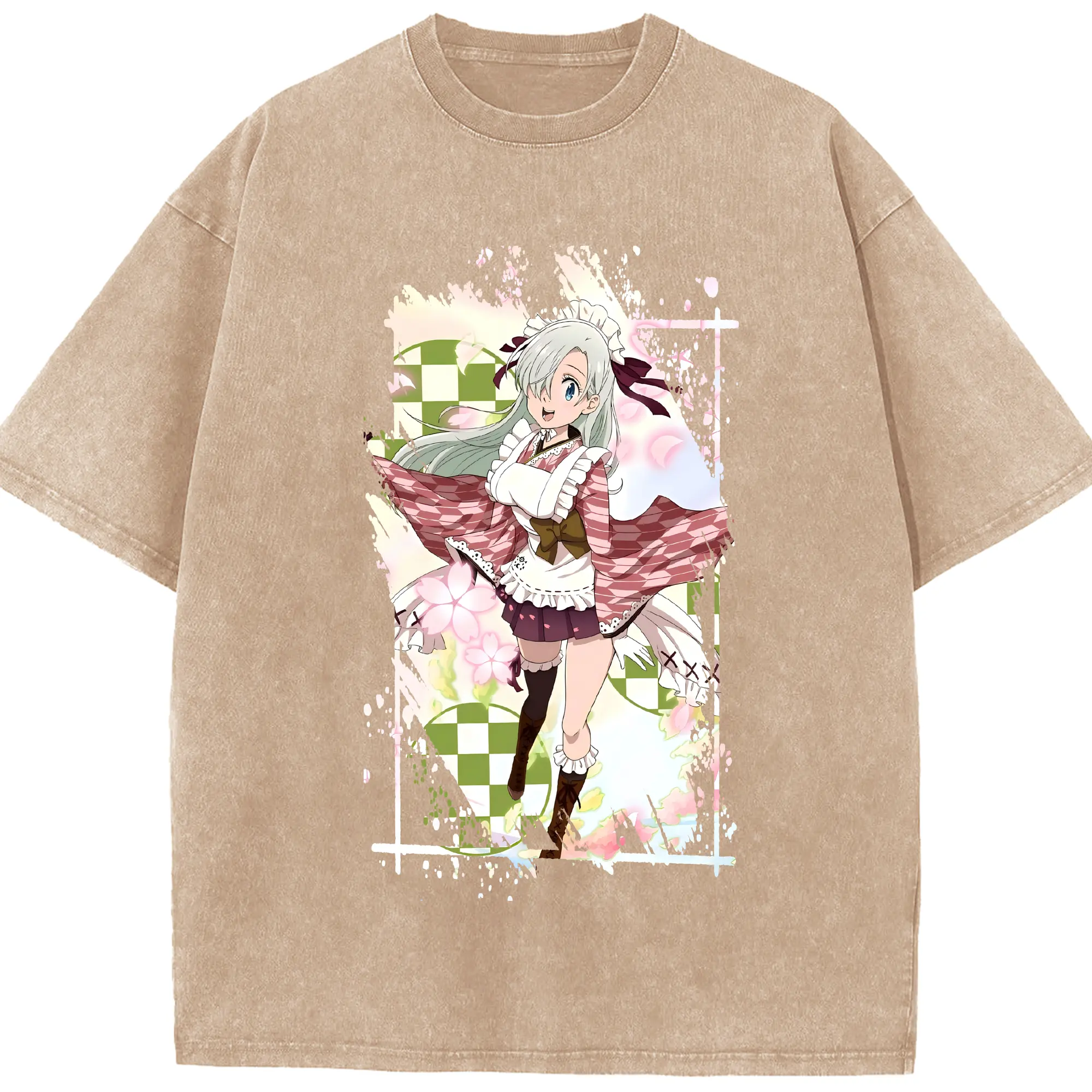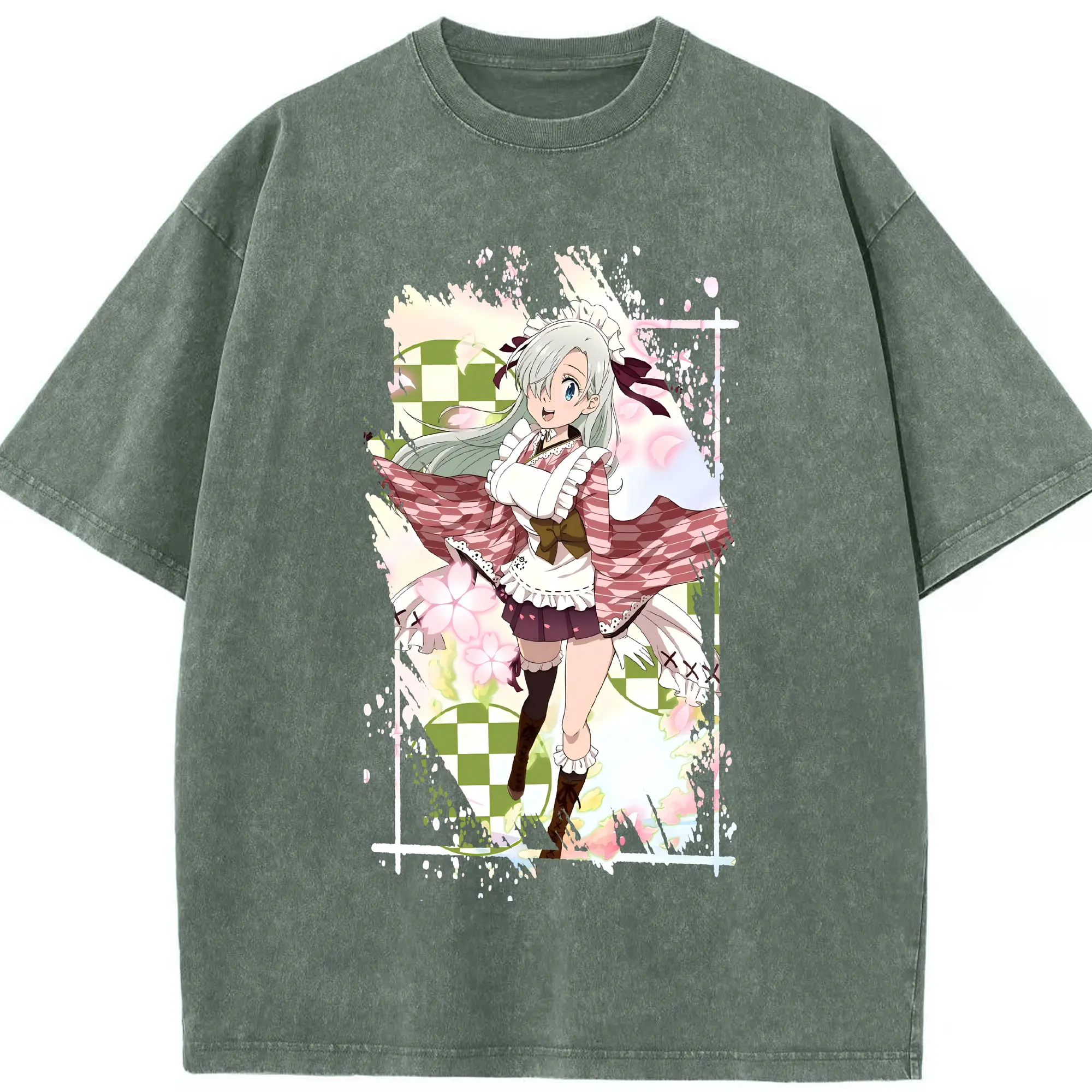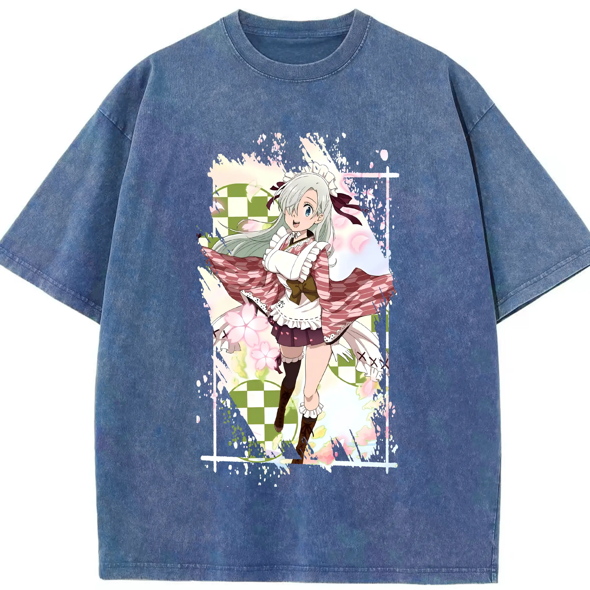 七つの大罪 グッズ エリザベス - 綿100% ヴィンテージ風 半袖Tシャツ ・ 背面プリント ・ 柔らか肌触り ・ 通気性 快適 ・ スポーツ カジュアル 外出用
