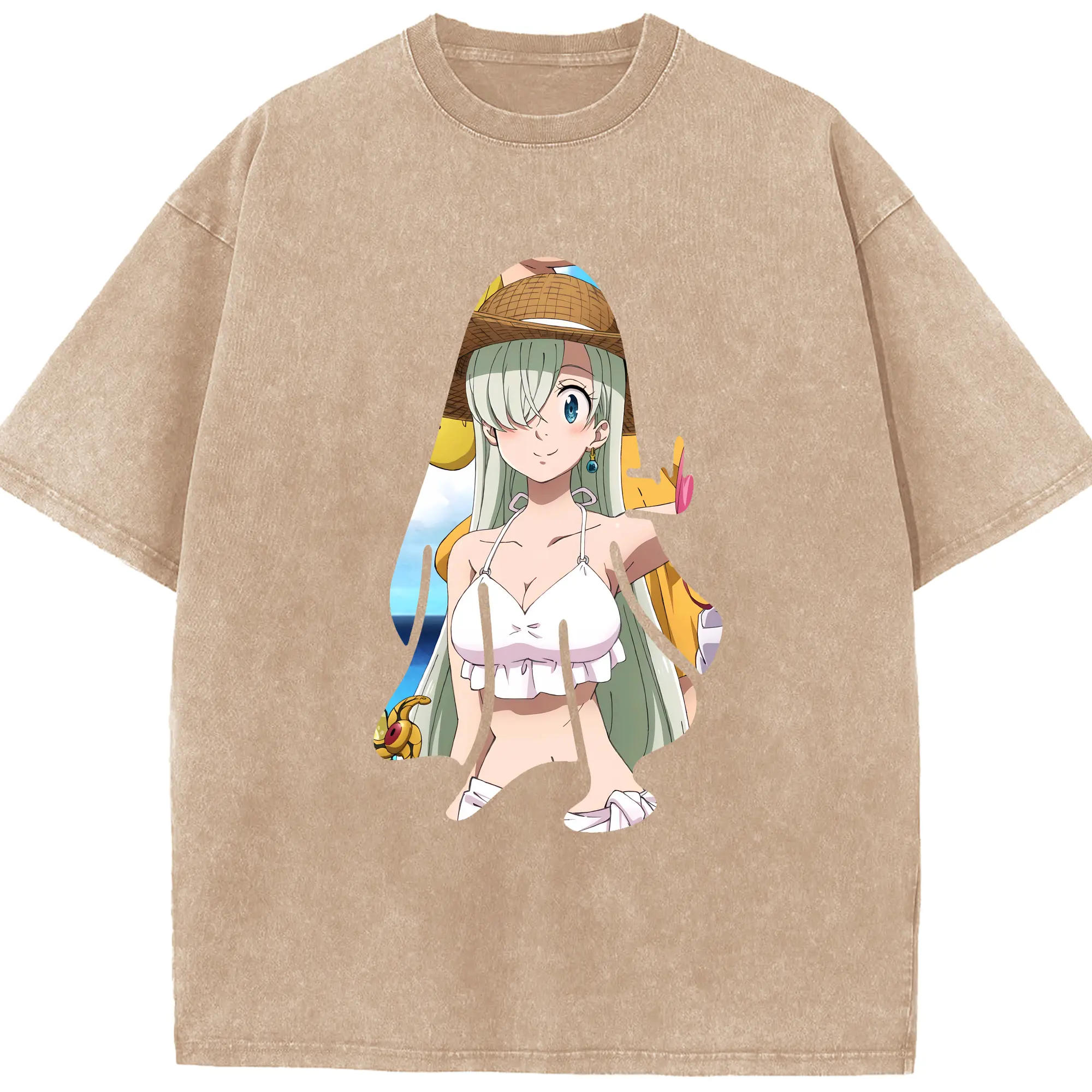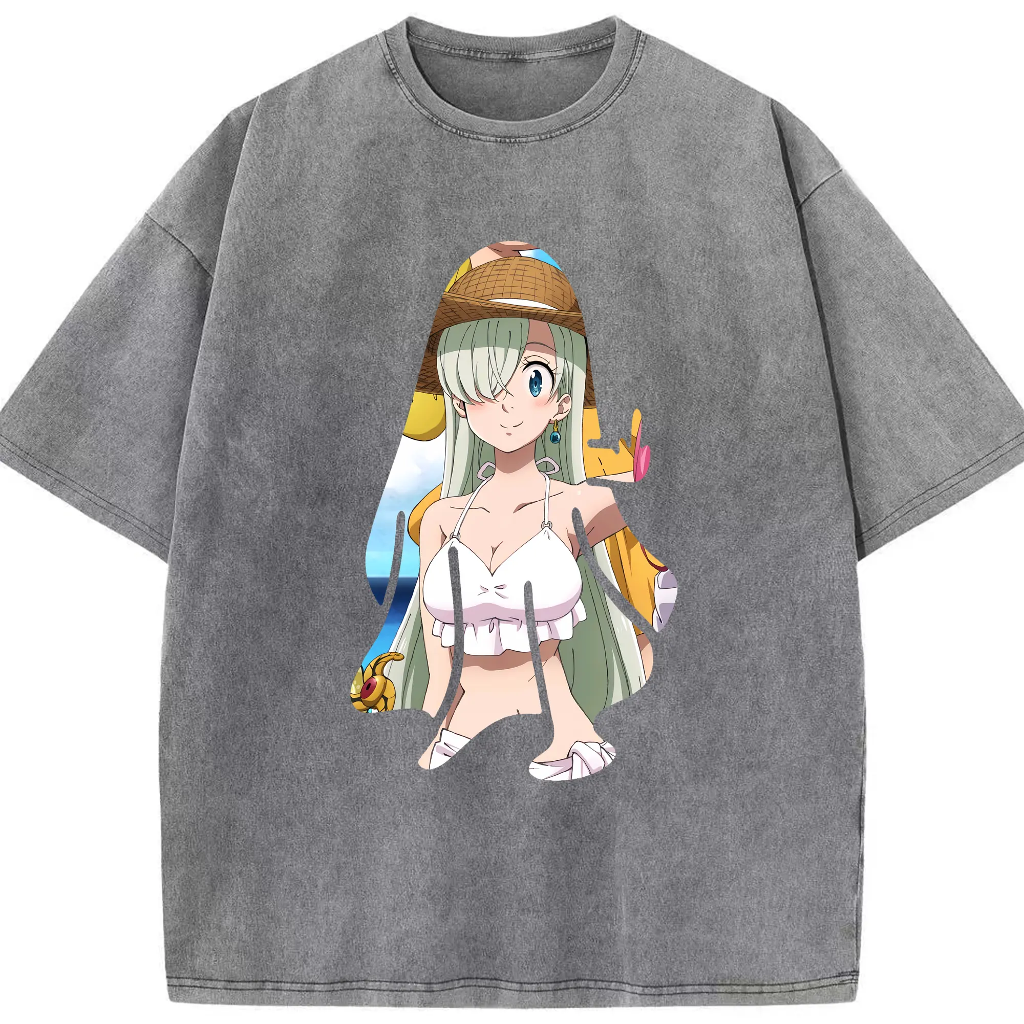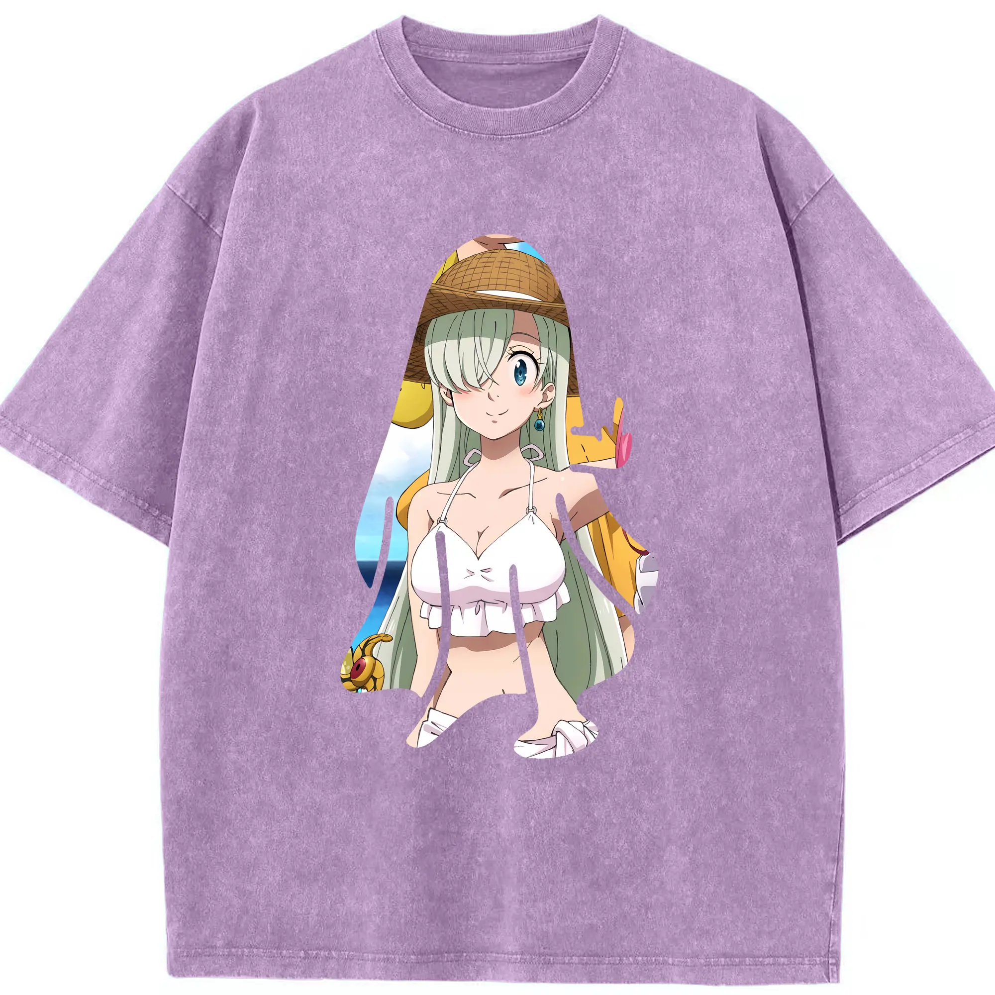 七つの大罪 グッズ エリザベス - 綿100% ヴィンテージ風 半袖Tシャツ ・ 背面プリント ・ 柔らか肌触り ・ 通気性 快適 ・ スポーツ カジュアル 外出用
