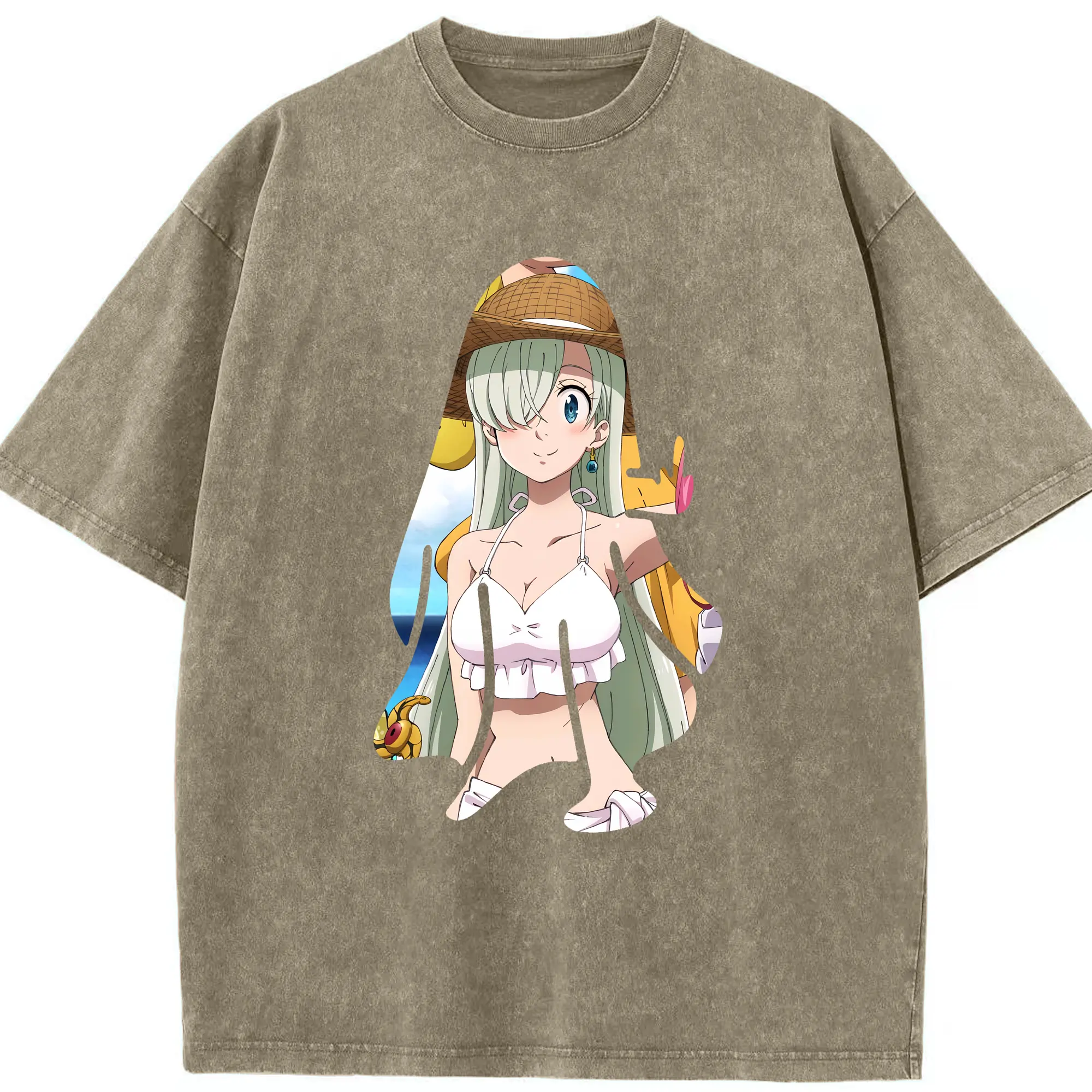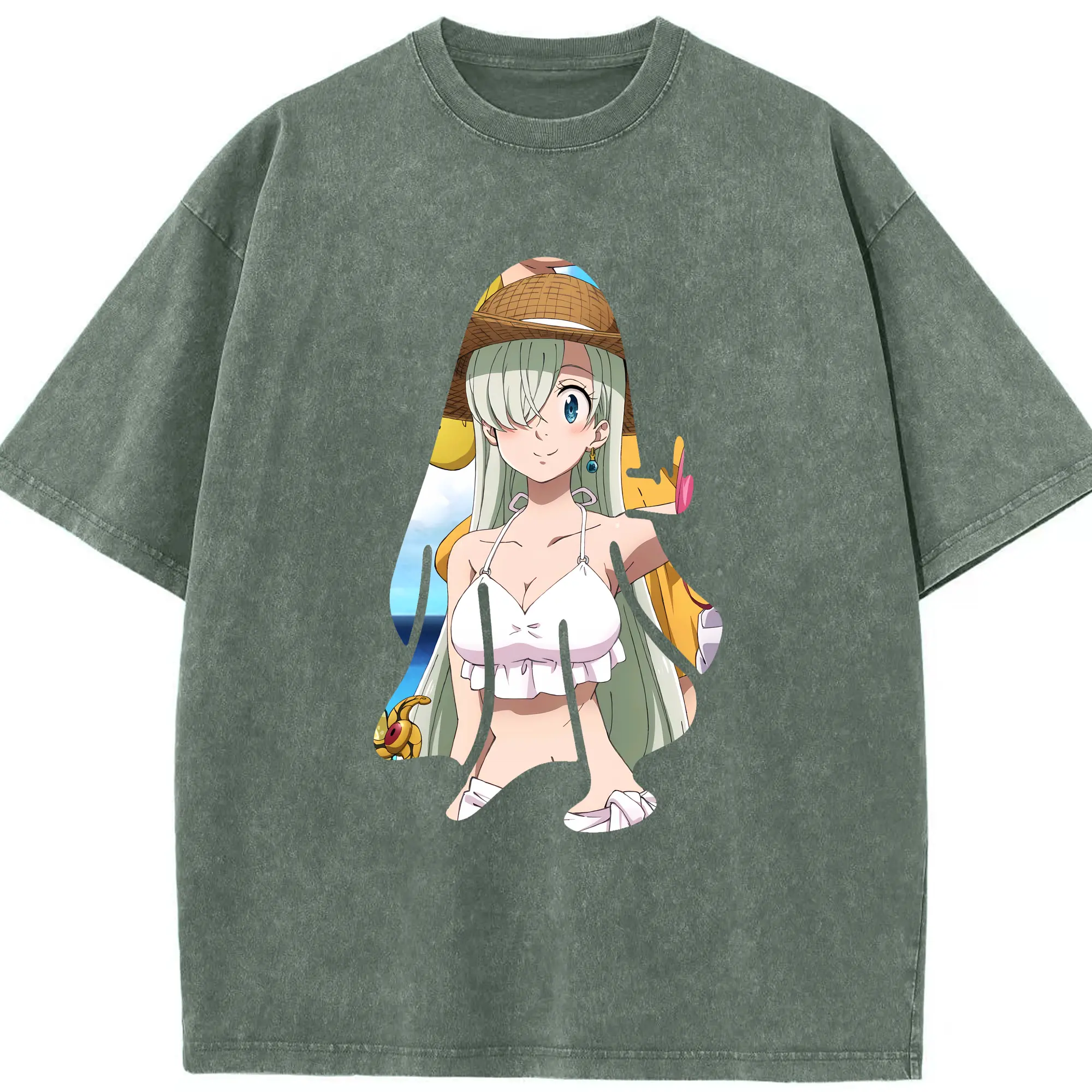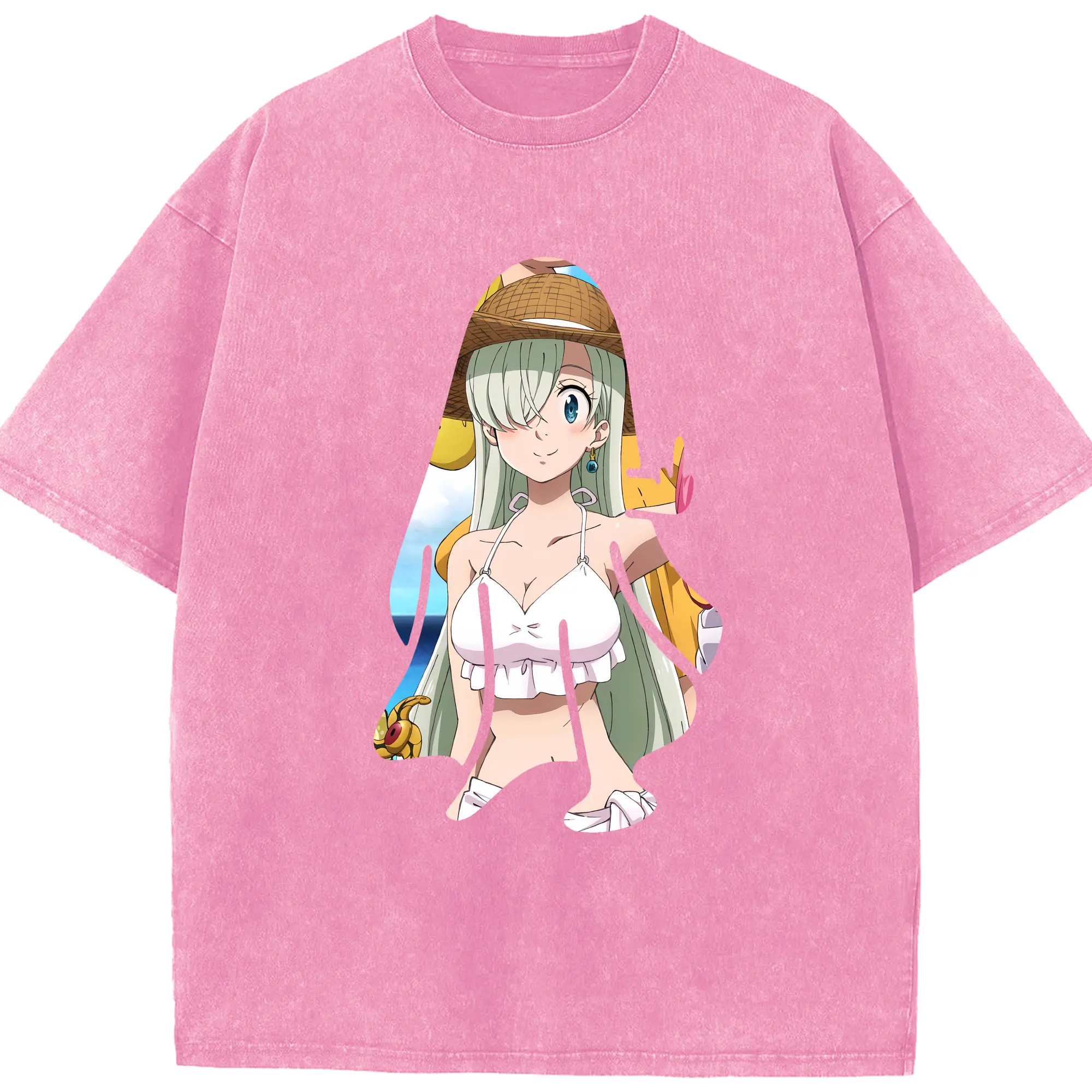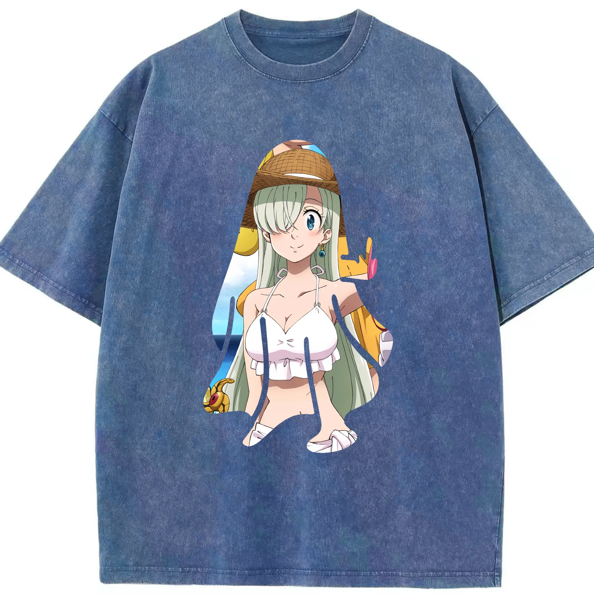 七つの大罪 グッズ エリザベス - 綿100% ヴィンテージ風 半袖Tシャツ ・ 背面プリント ・ 柔らか肌触り ・ 通気性 快適 ・ スポーツ カジュアル 外出用