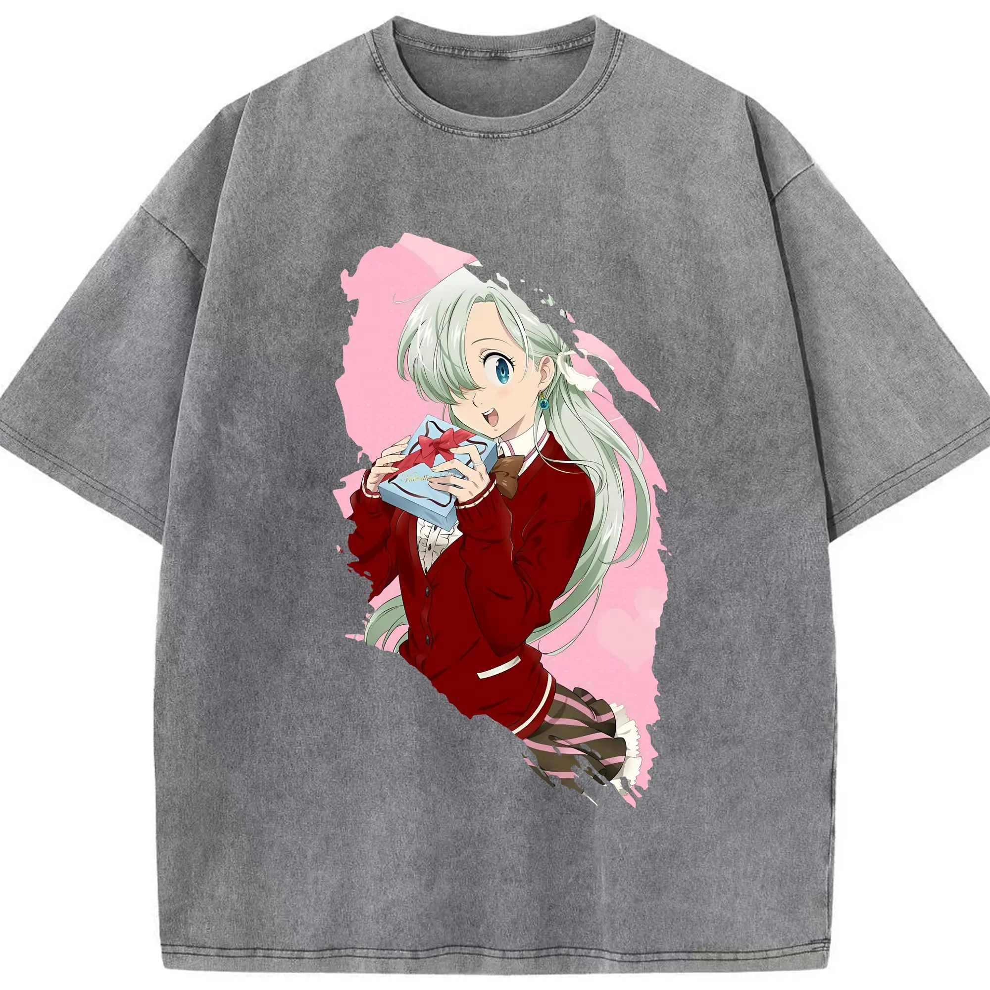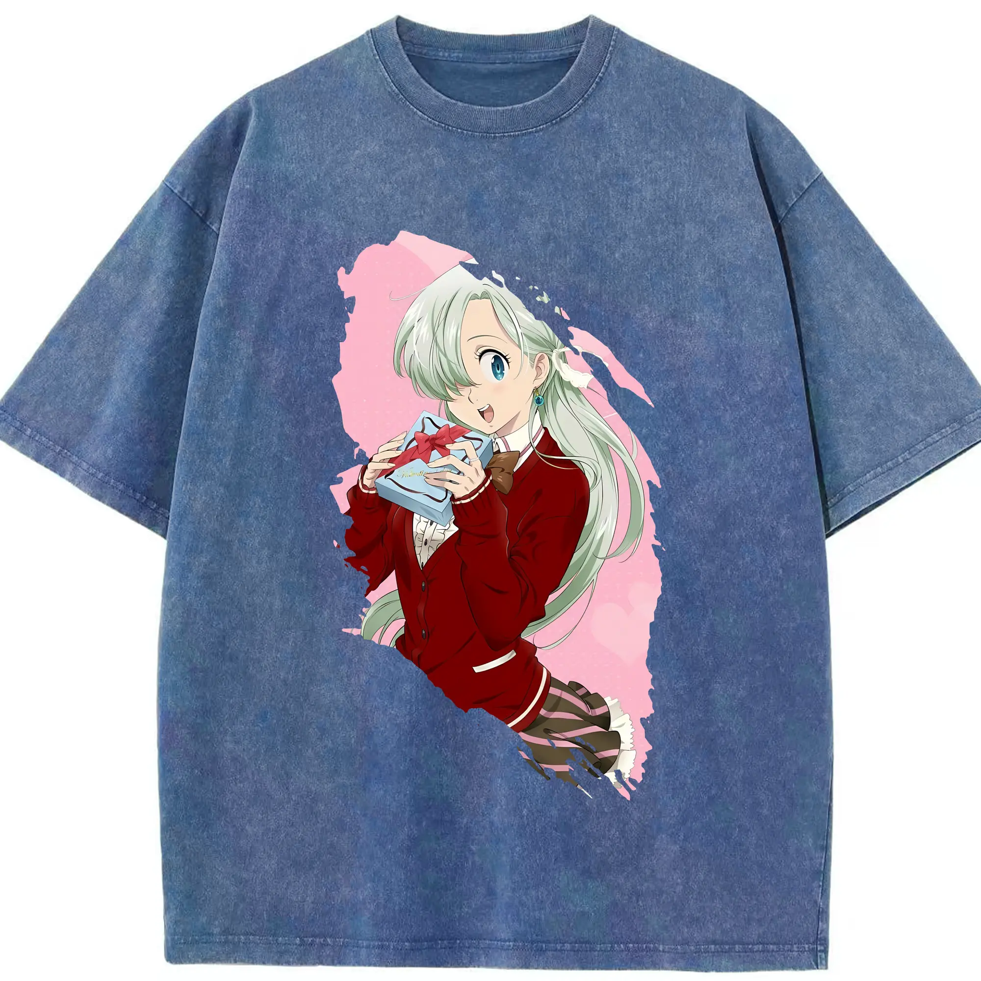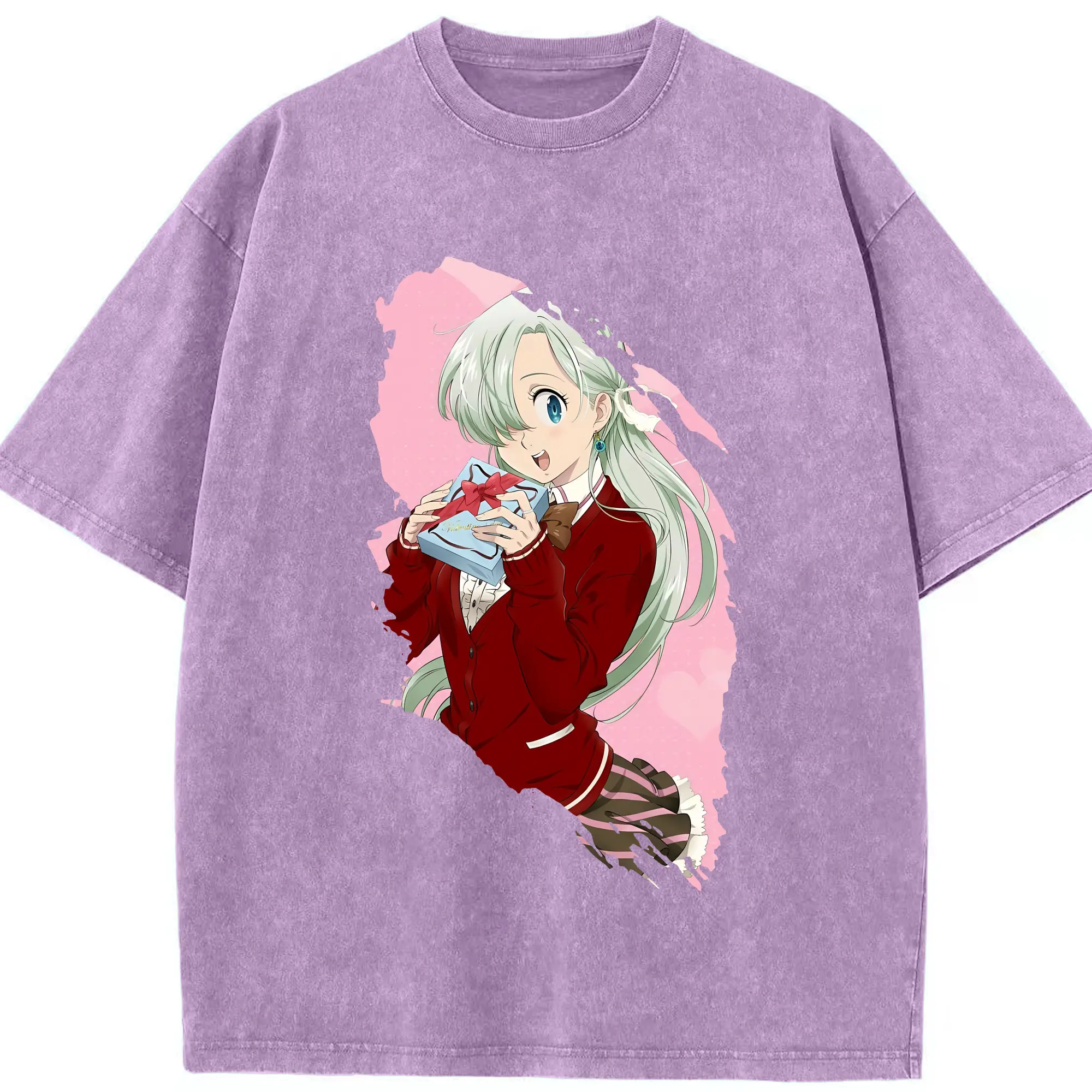 七つの大罪 グッズ エリザベス - 綿100% ヴィンテージ風 半袖Tシャツ ・ 背面プリント ・ 柔らか肌触り ・ 通気性 快適 ・ スポーツ カジュアル 外出用