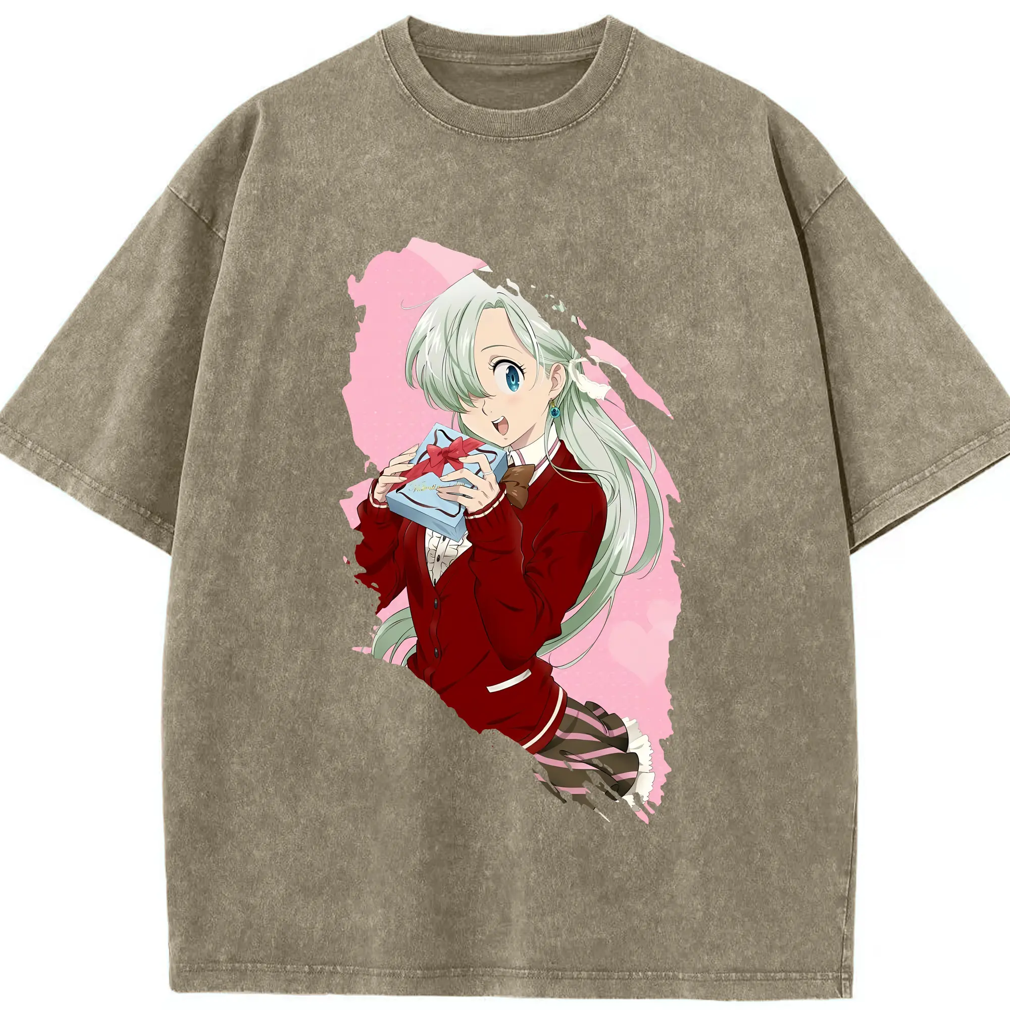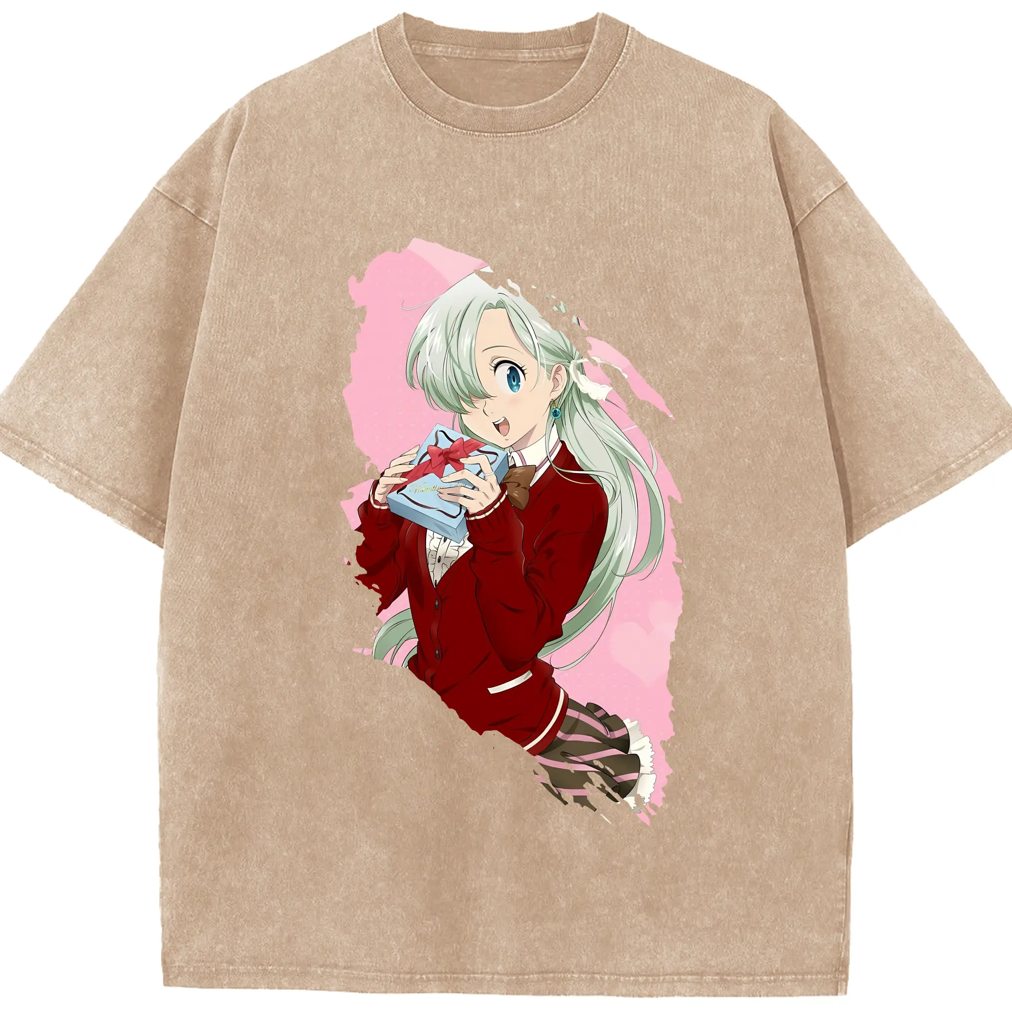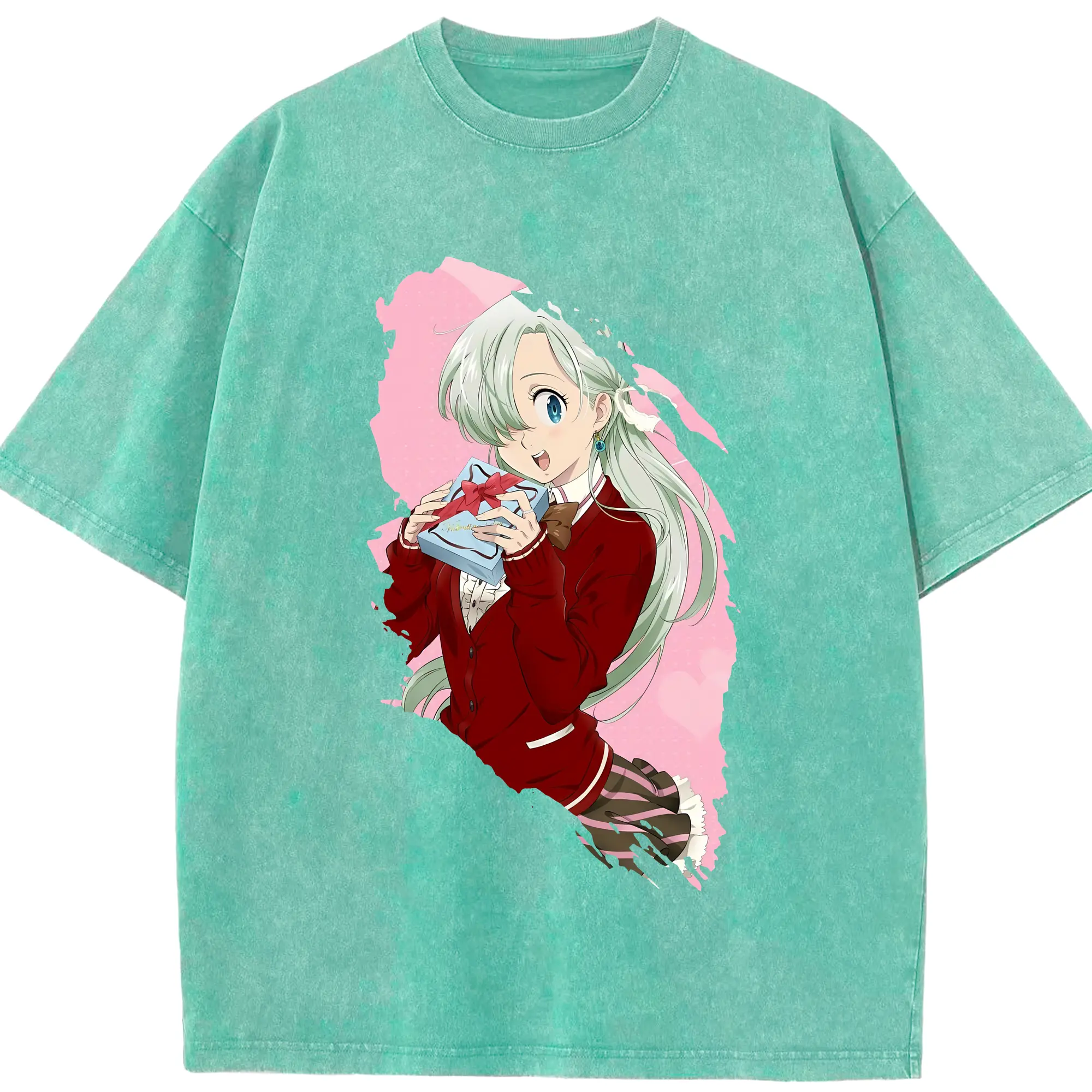 七つの大罪 グッズ エリザベス - 綿100% ヴィンテージ風 半袖Tシャツ ・ 背面プリント ・ 柔らか肌触り ・ 通気性 快適 ・ スポーツ カジュアル 外出用