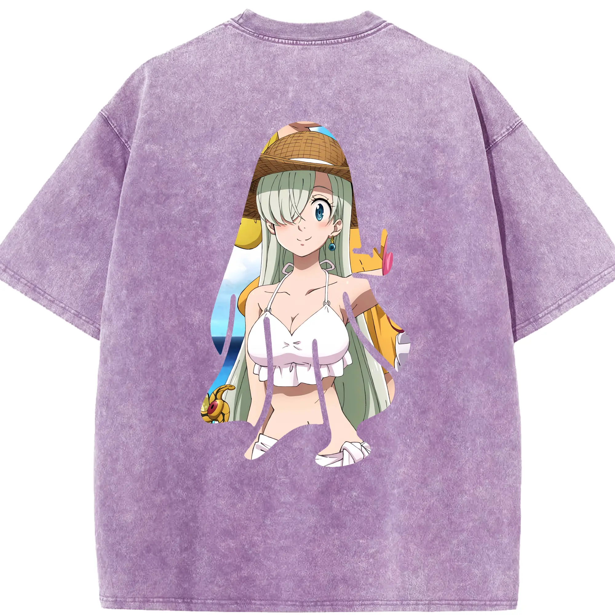 七つの大罪 グッズ エリザベス - 綿100% ヴィンテージ風 半袖Tシャツ ・ フロントプリント ・ 柔らか肌触り ・ 通気性 快適 ・ スポーツ カジュアル 外出用