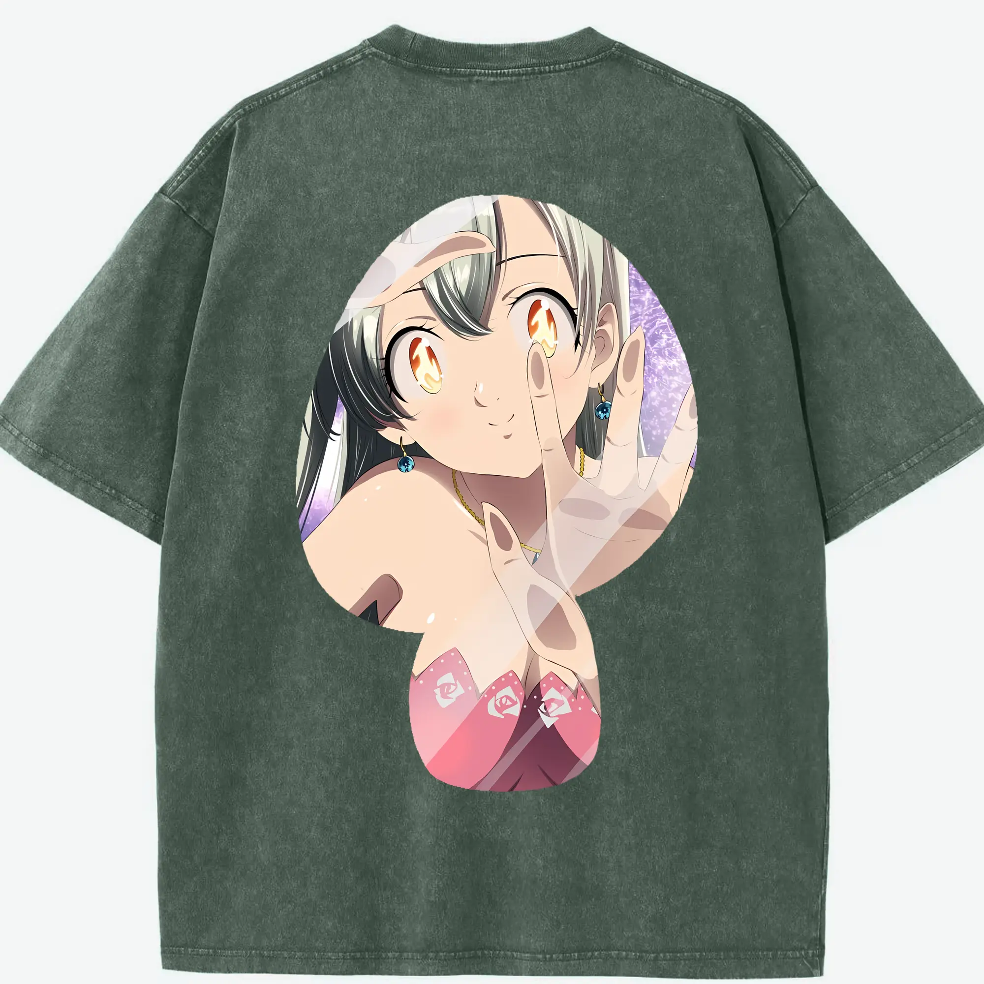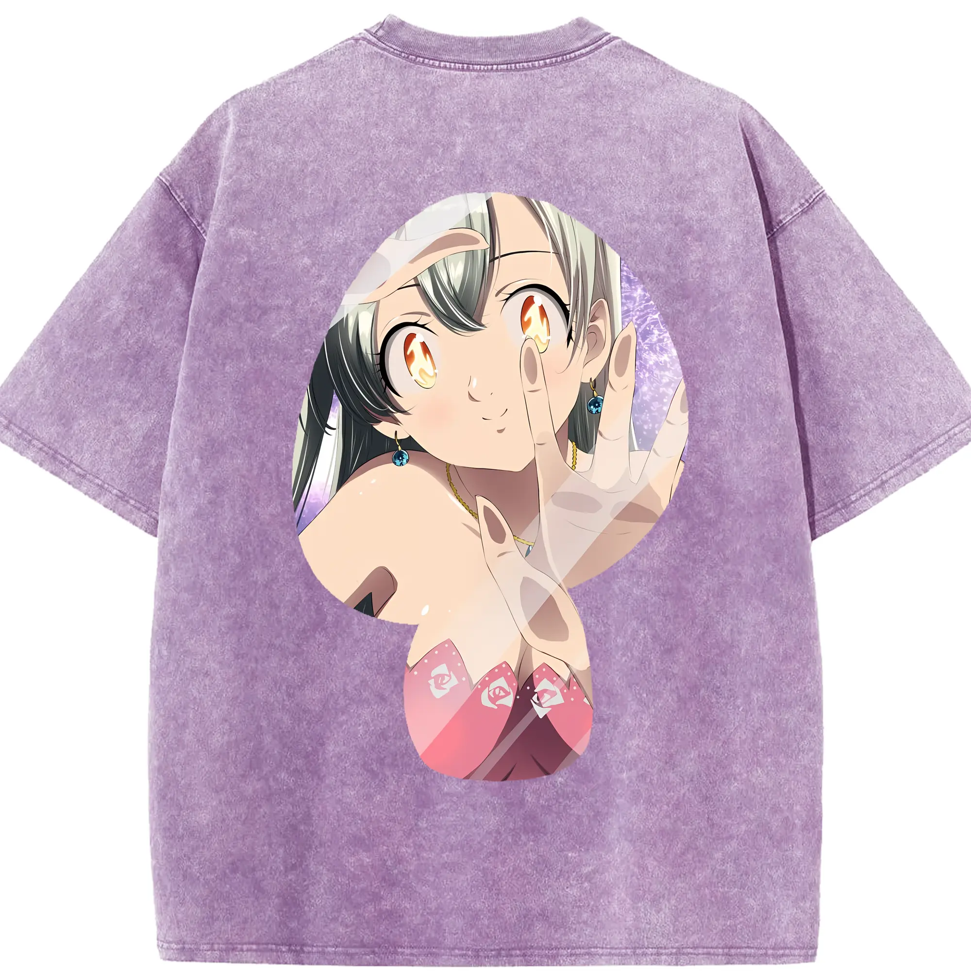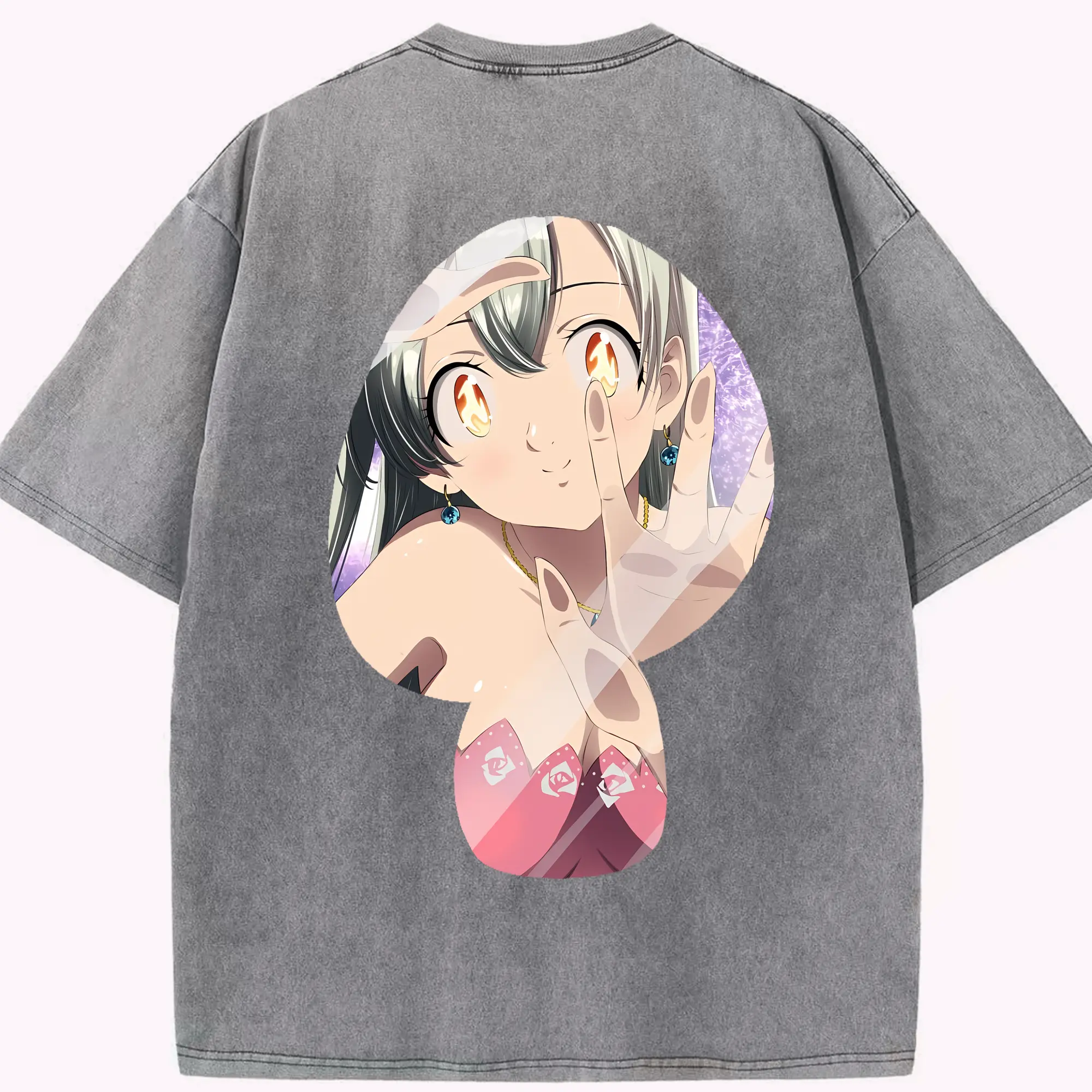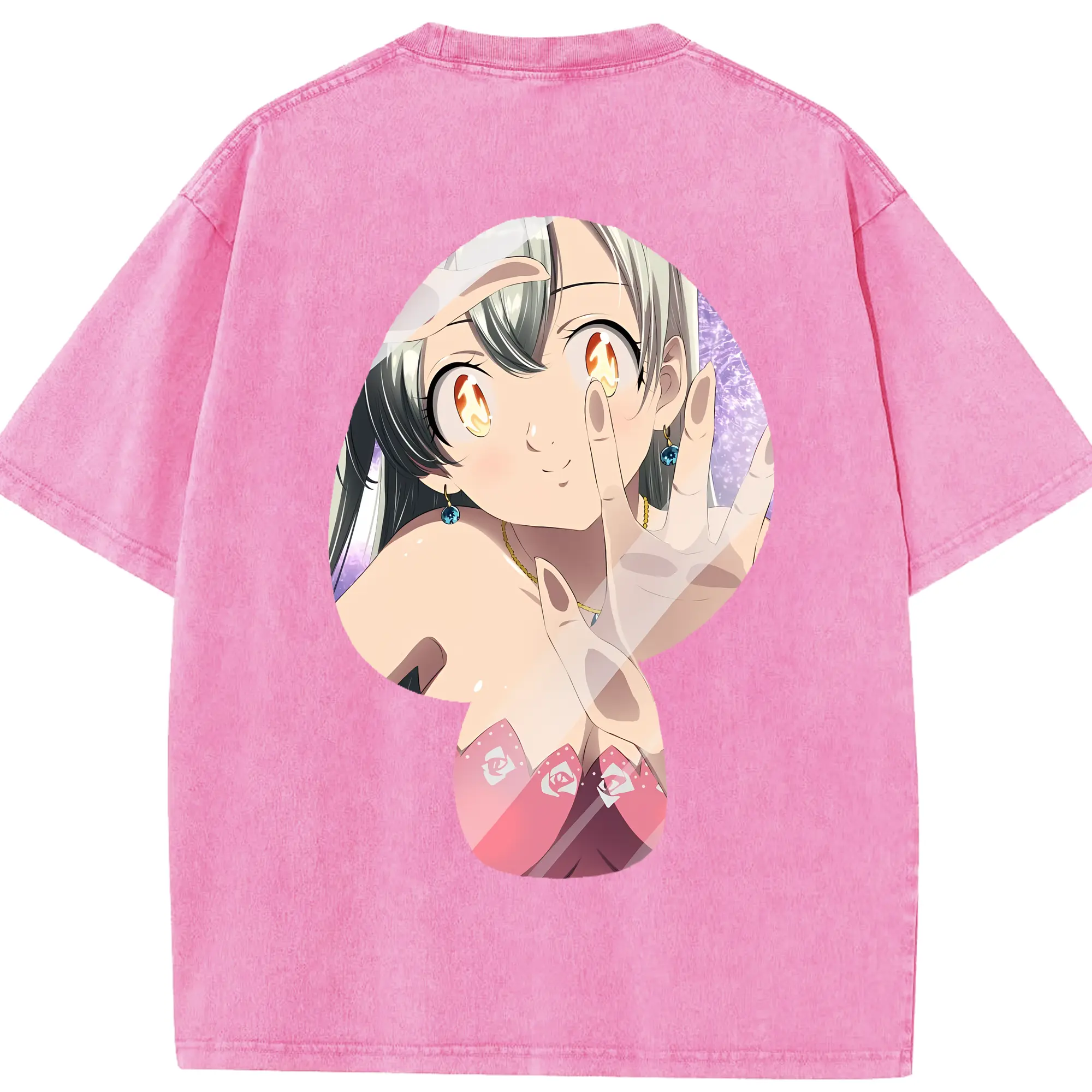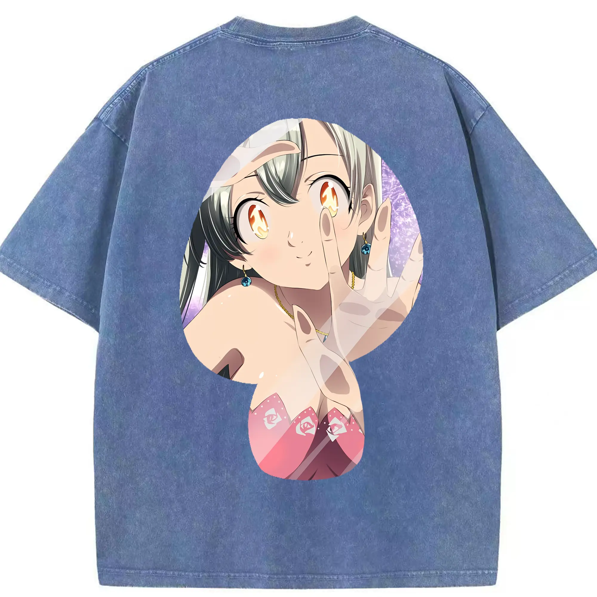 七つの大罪 グッズ エリザベス - 綿100% ヴィンテージ風 半袖Tシャツ ・ フロントプリント ・ 柔らか肌触り ・ 通気性 快適 ・ スポーツ カジュアル 外出用