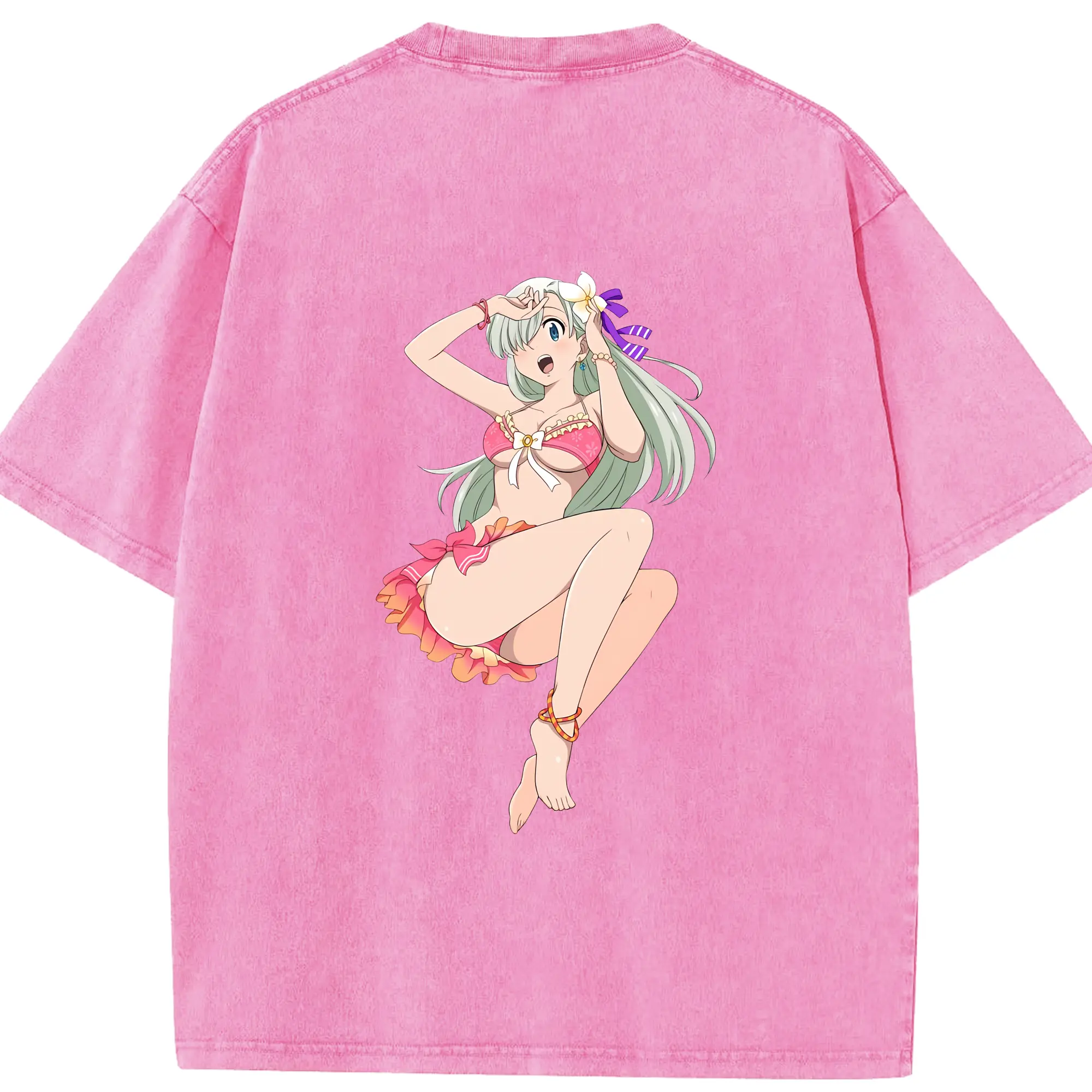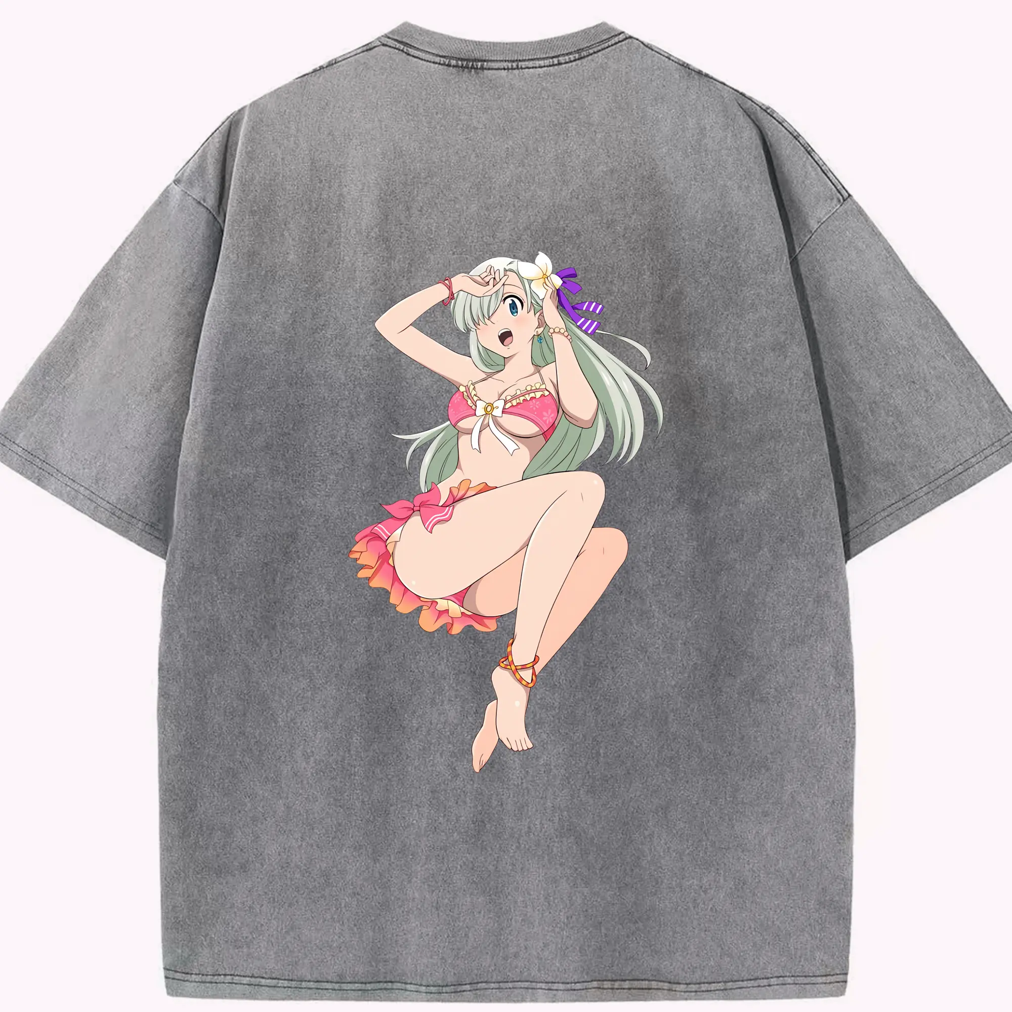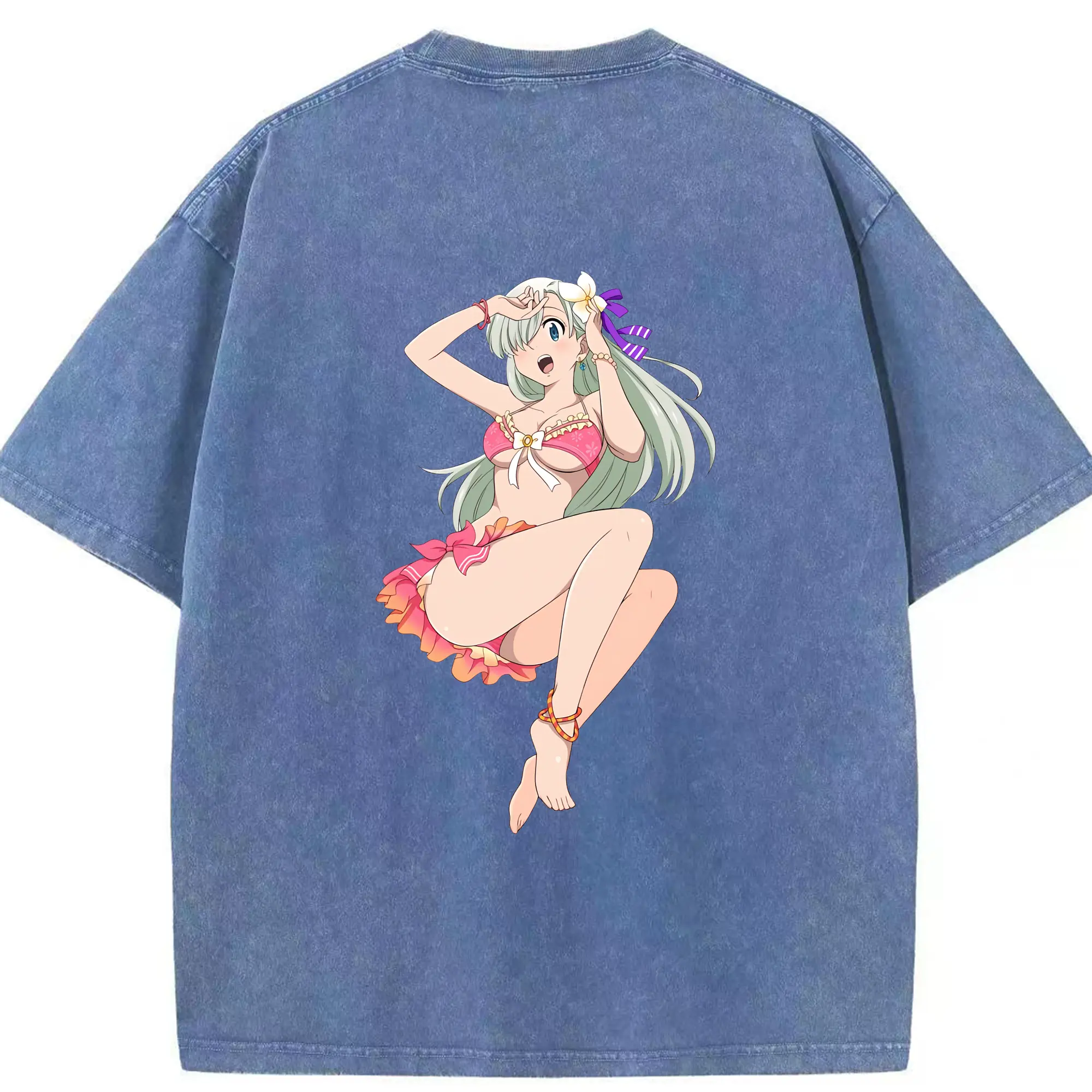 七つの大罪 グッズ エリザベス - 綿100% ヴィンテージ風 半袖Tシャツ ・ フロントプリント ・ 柔らか肌触り ・ 通気性 快適 ・ スポーツ カジュアル 外出用