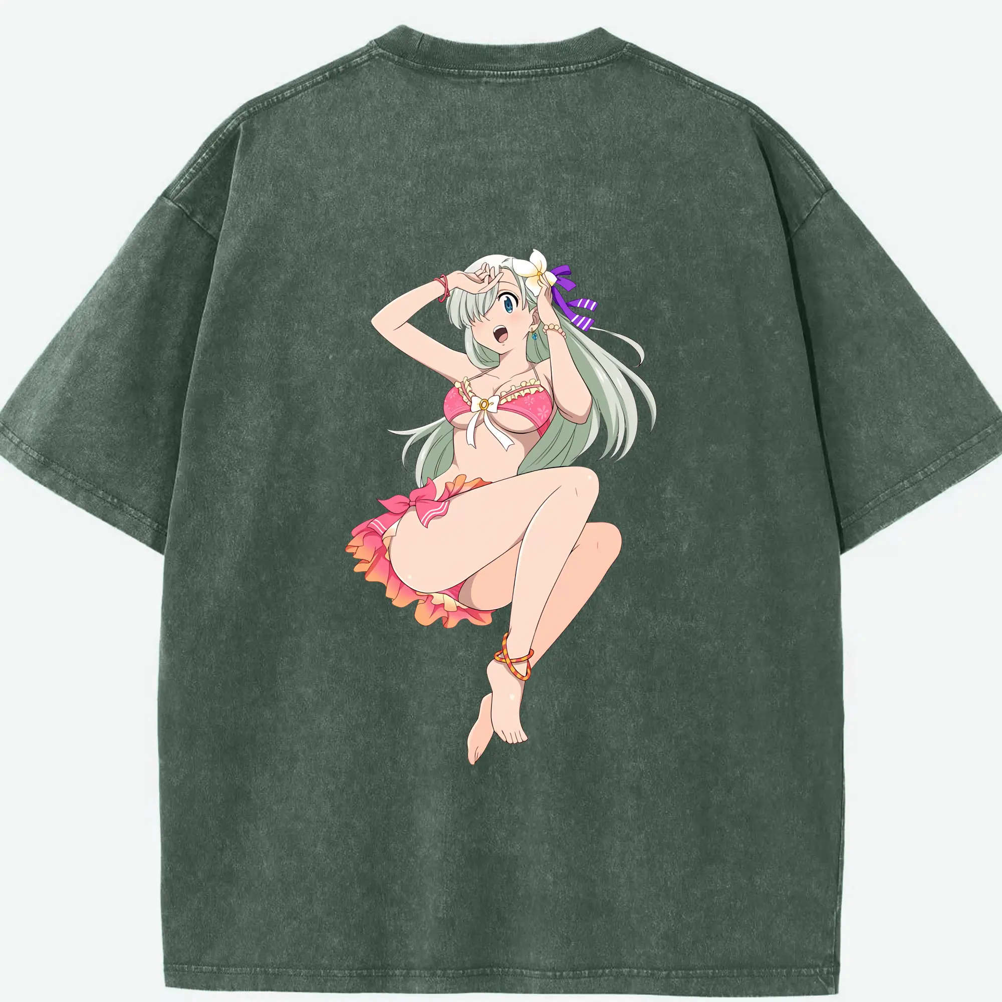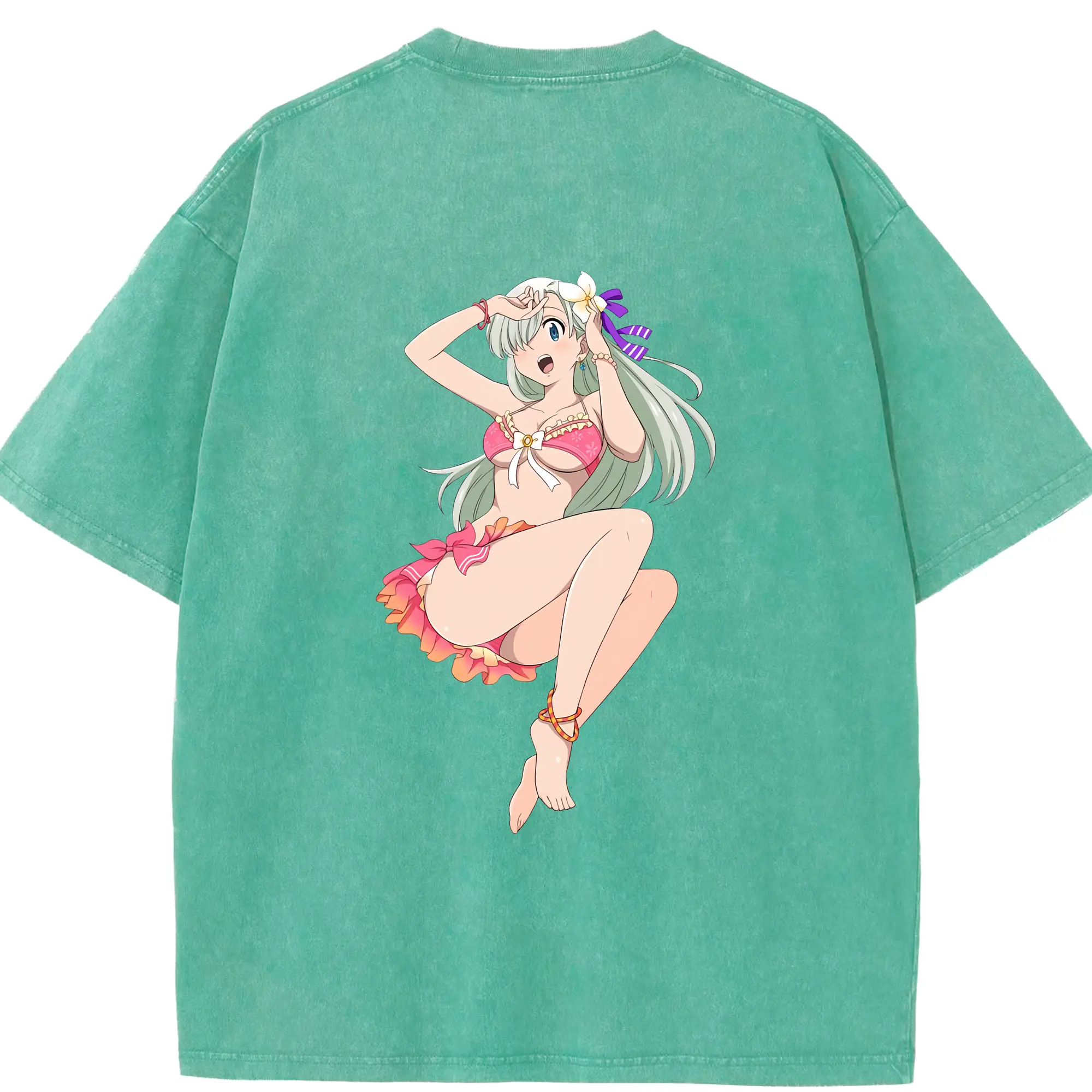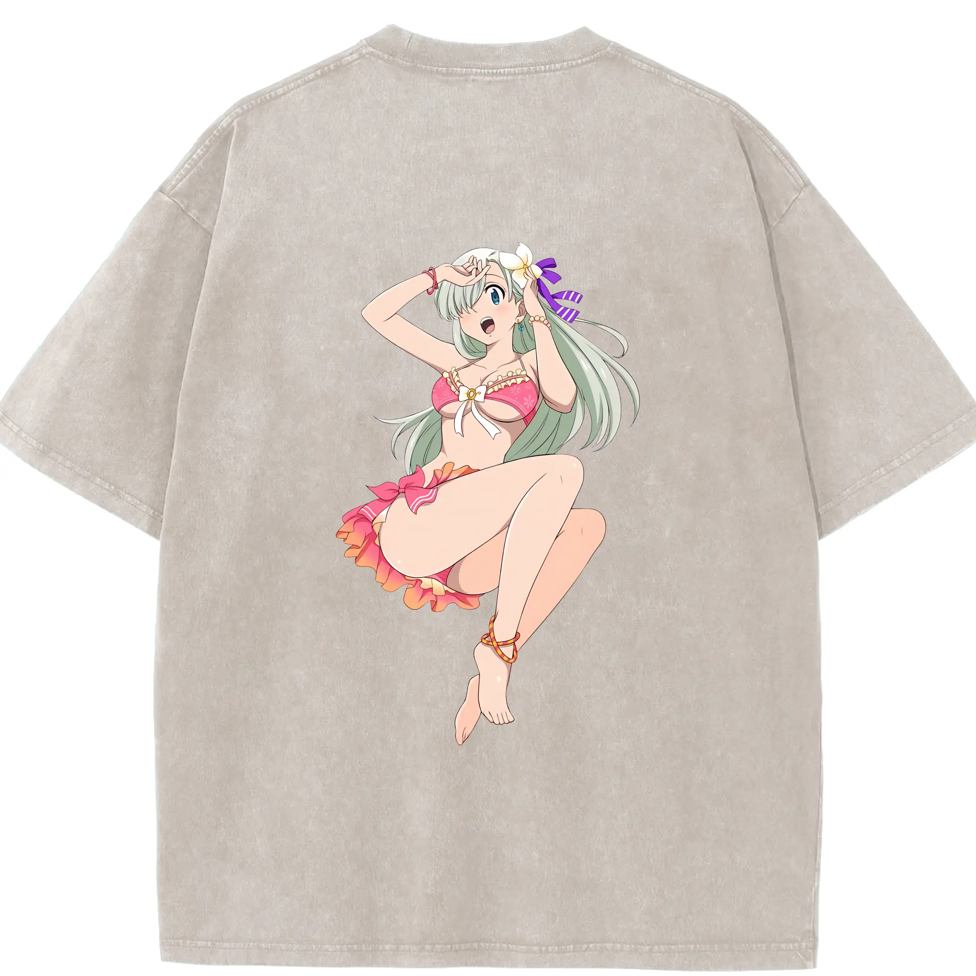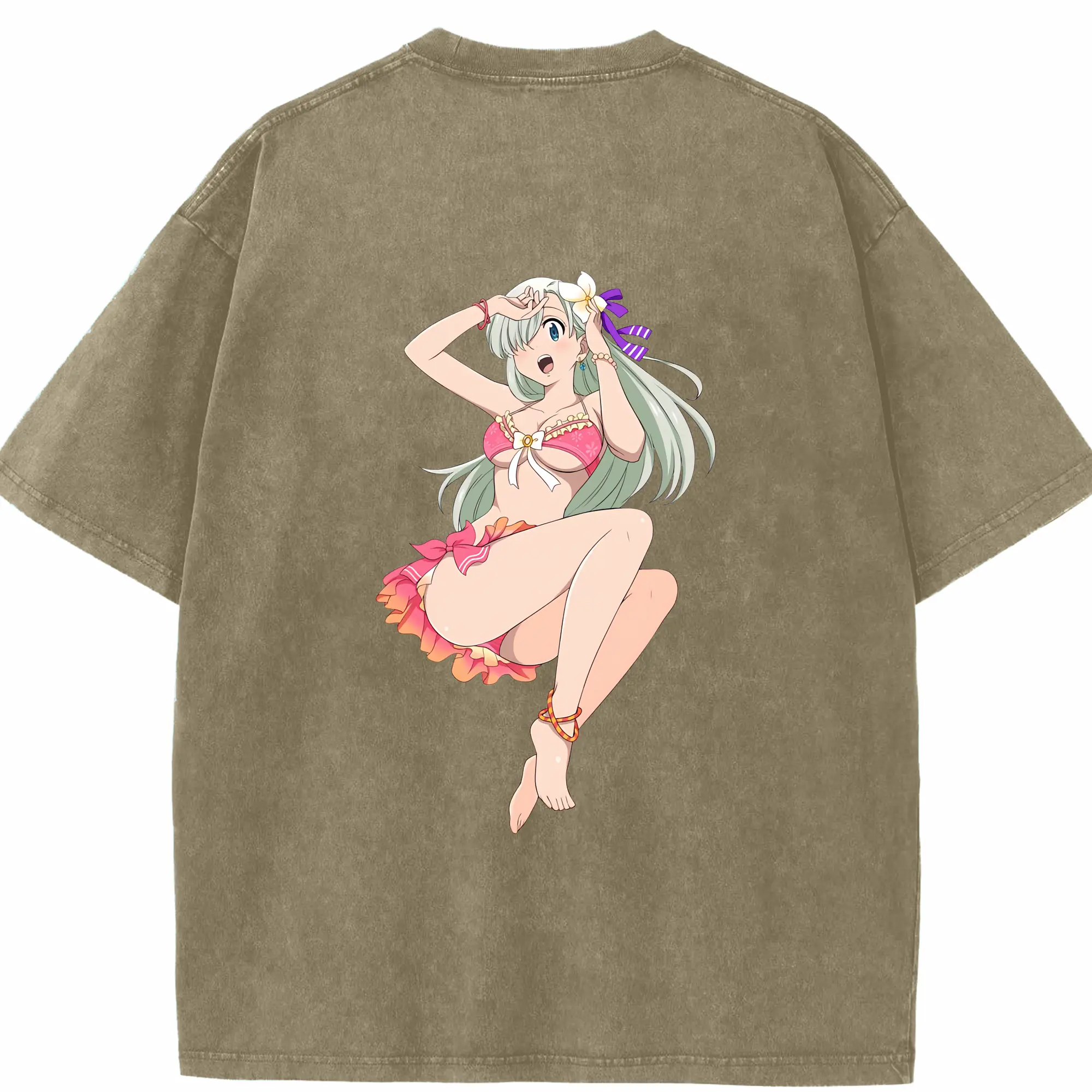 七つの大罪 グッズ エリザベス - 綿100% ヴィンテージ風 半袖Tシャツ ・ フロントプリント ・ 柔らか肌触り ・ 通気性 快適 ・ スポーツ カジュアル 外出用