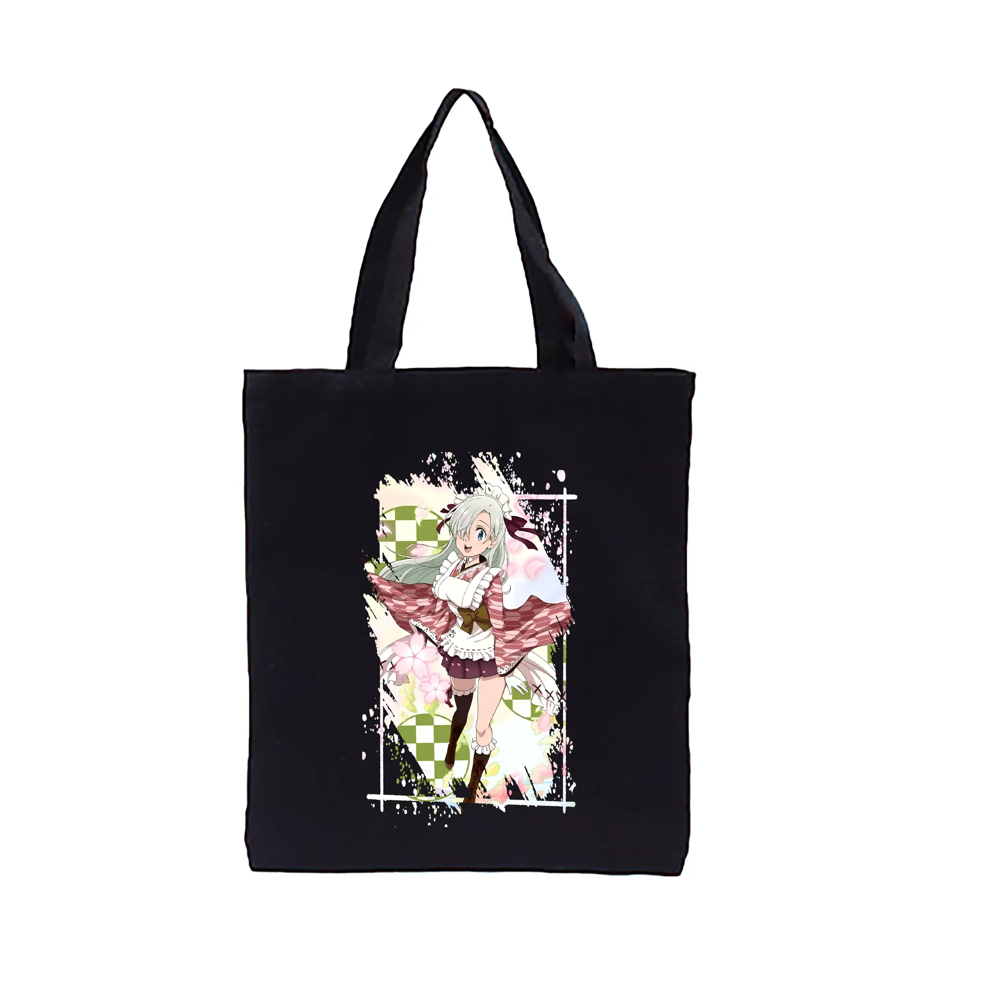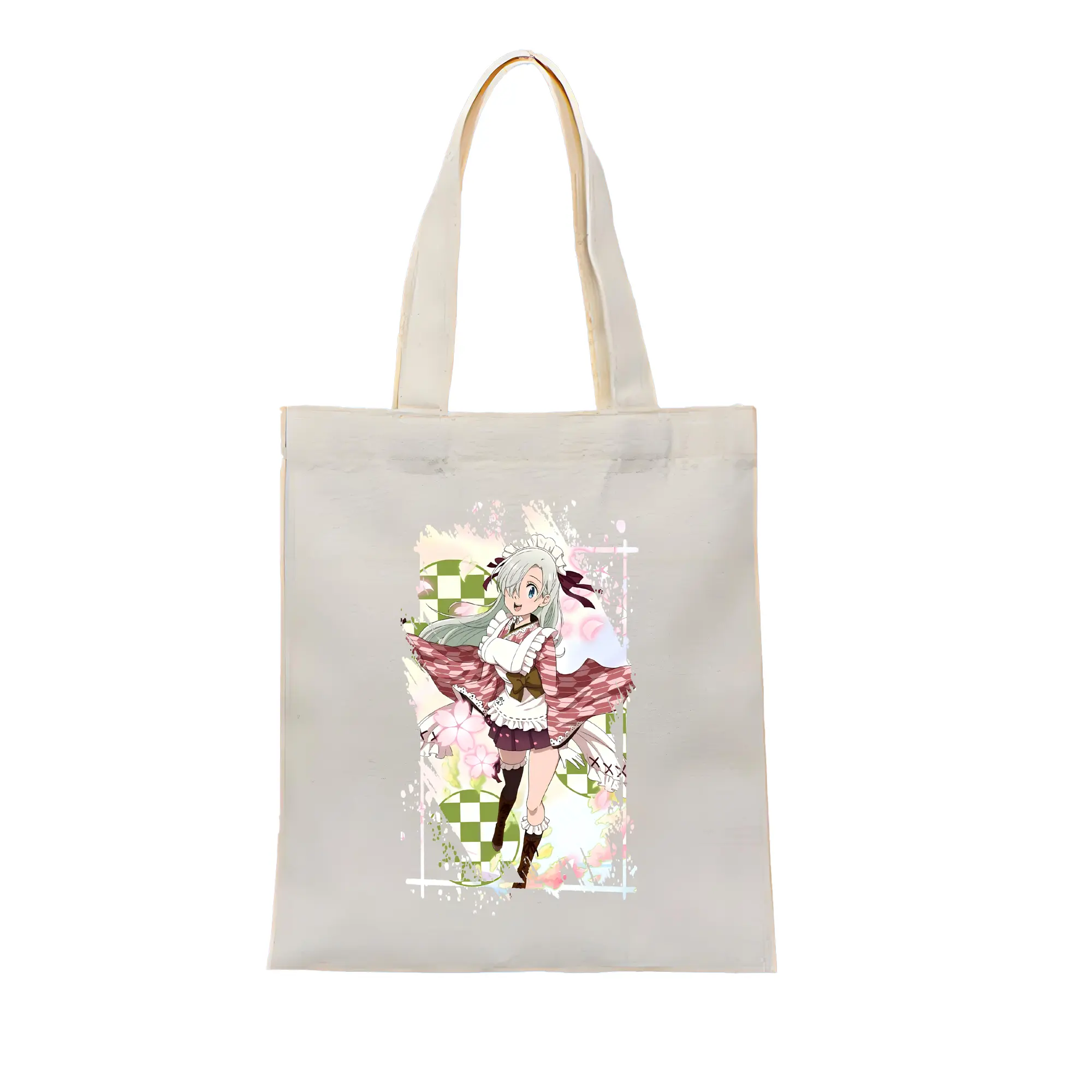 七つの大罪 グッズ エリザベス - 縦型キャンバス手提げバッグ(トートバッグ) ・ キャンバス素材 ・ ショッピング用 ・ 軽量 丈夫 お手入れ簡単