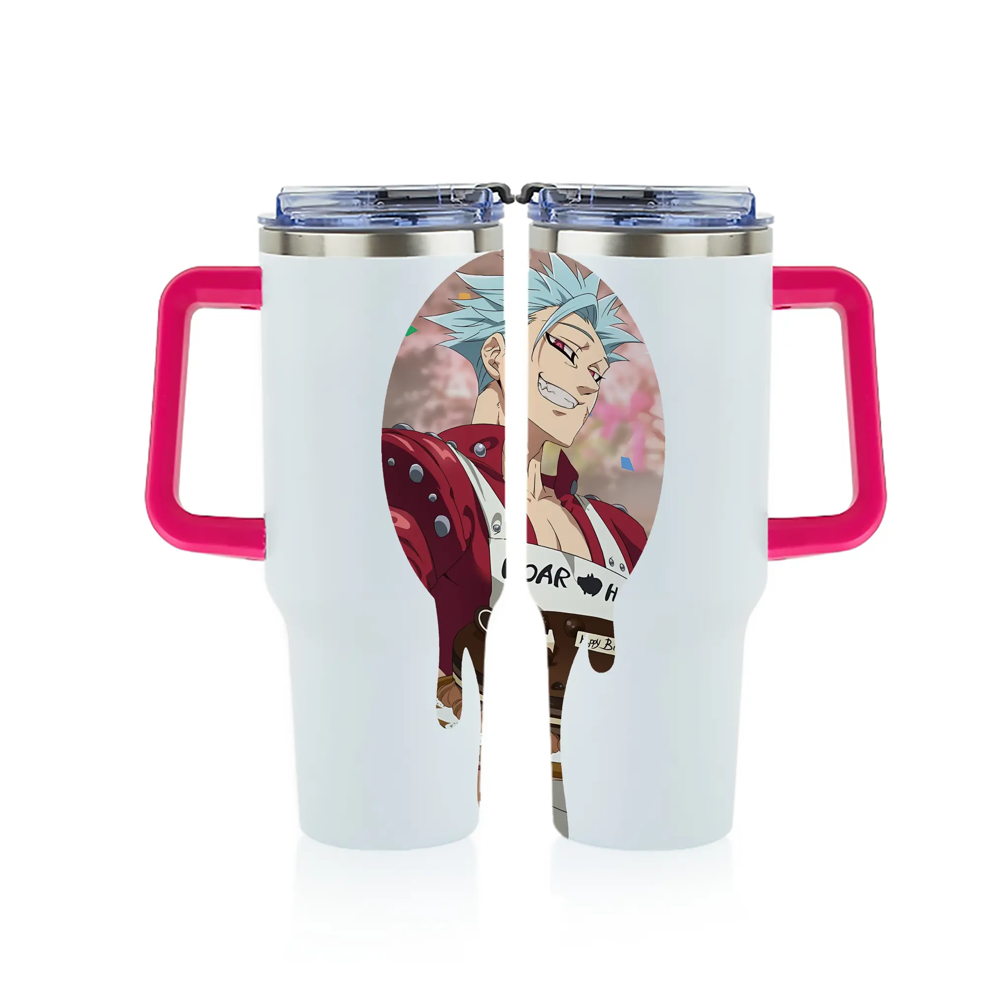 七つの大罪 グッズ バン - 1200mL フルプリント車用タンブラー ・ 304ステンレス 内側 ・ 201ステンレス 外側 ・ 保温 保冷 ・ 通勤 ドライブ アウトドア用
