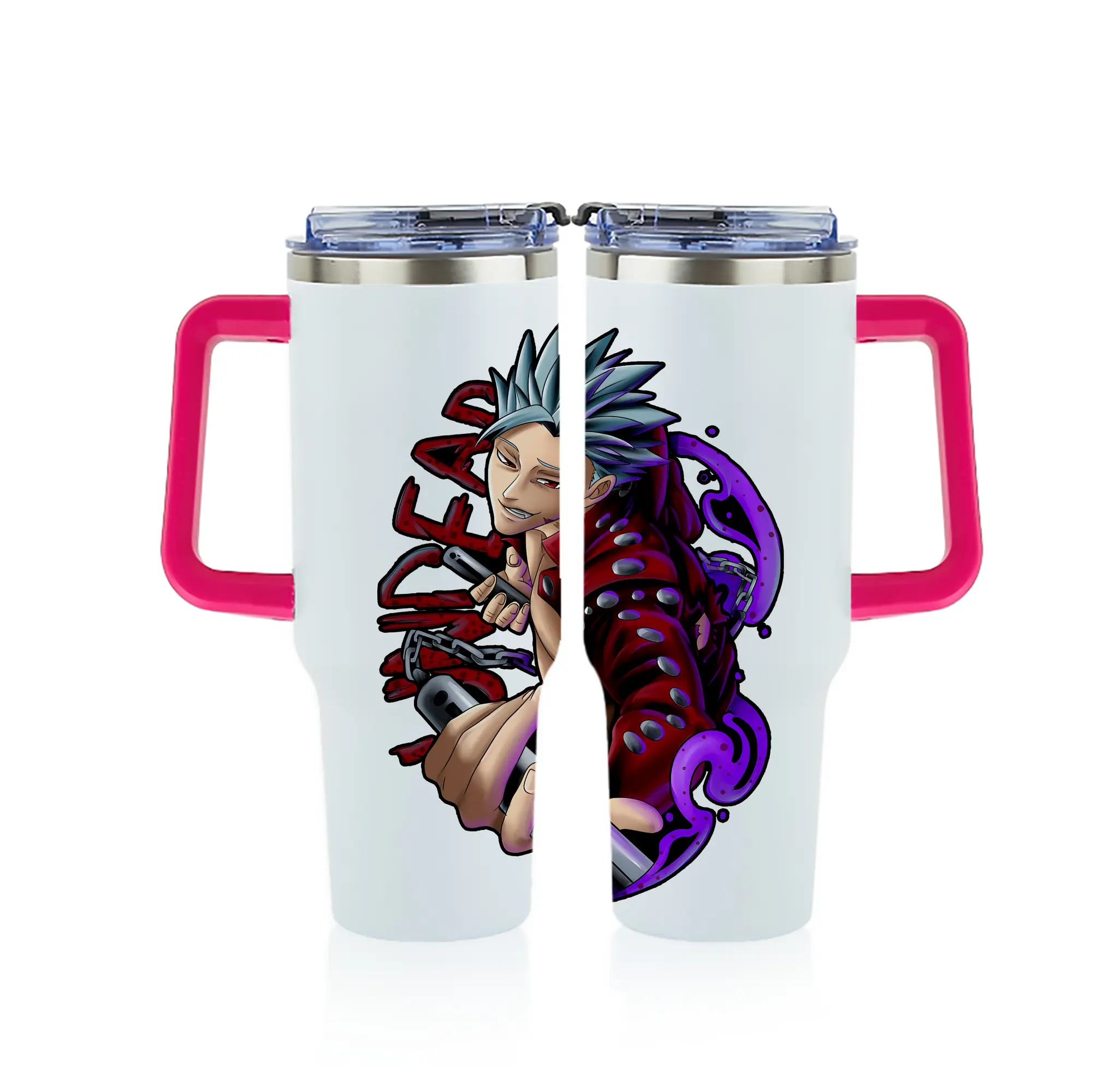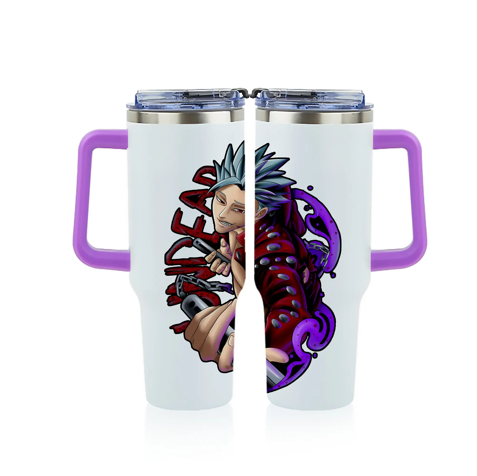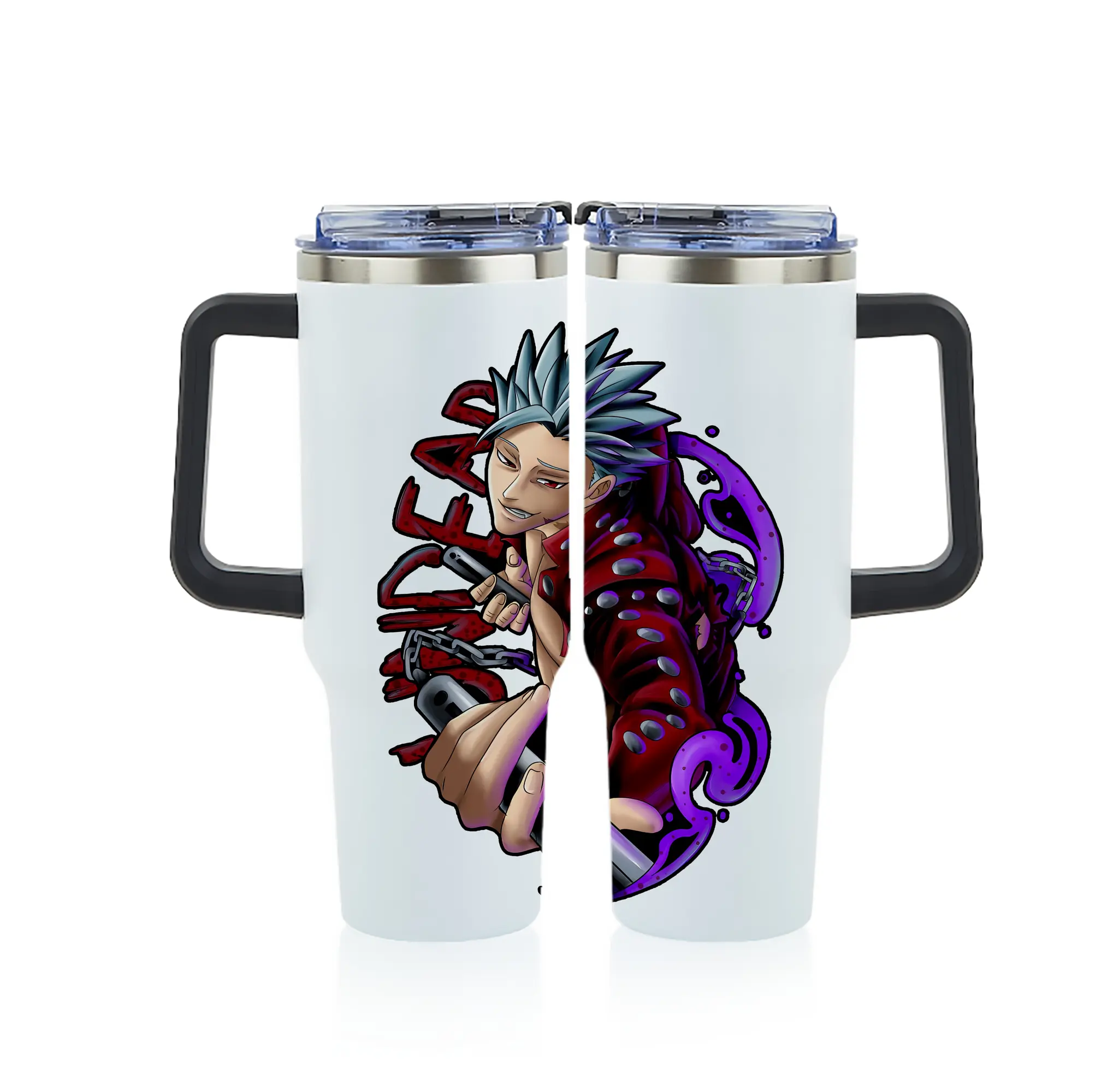 七つの大罪 グッズ バン - 1200mL フルプリント車用タンブラー ・ 304ステンレス 内側 ・ 201ステンレス 外側 ・ 保温 保冷 ・ 通勤 ドライブ アウトドア用