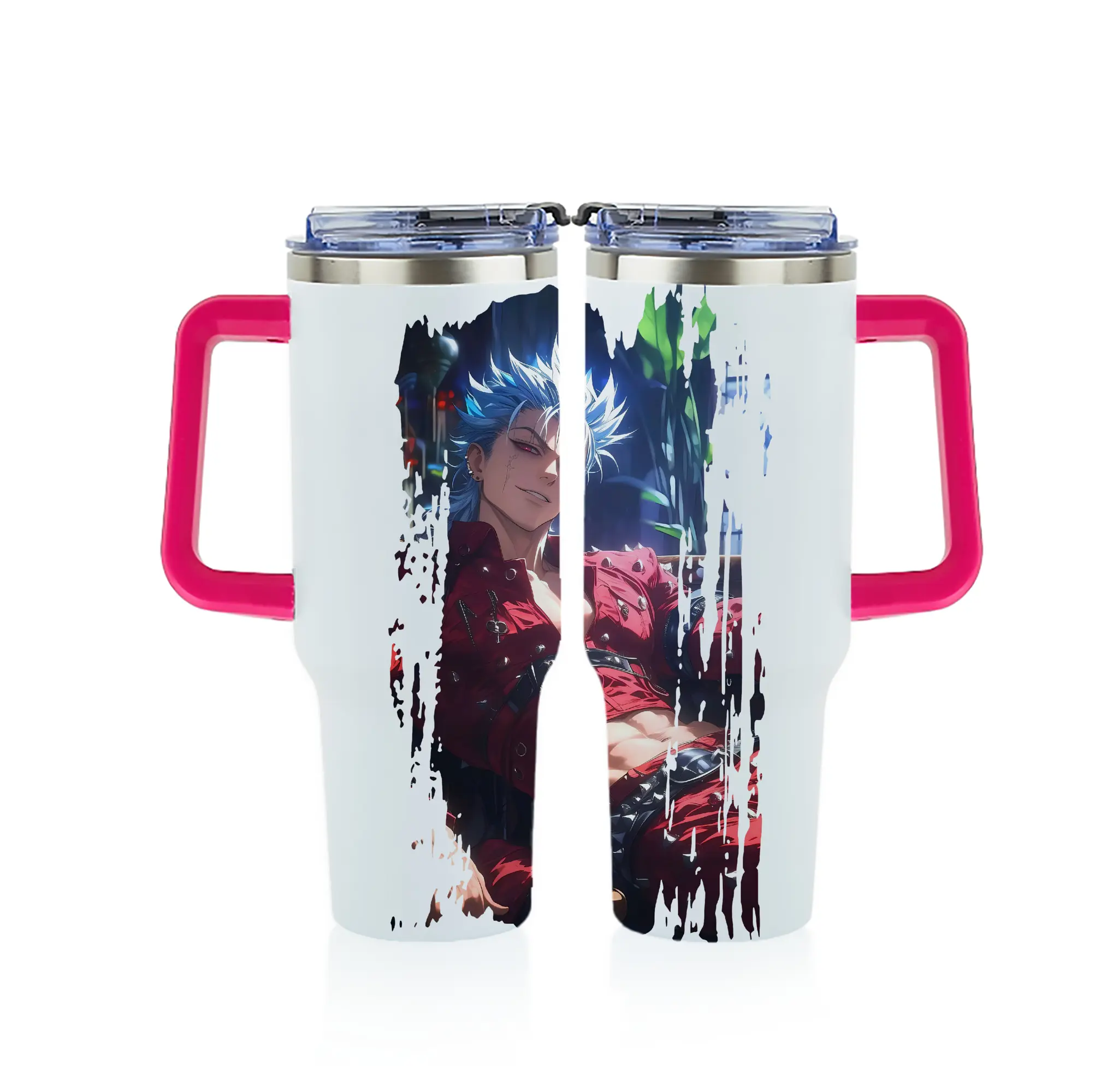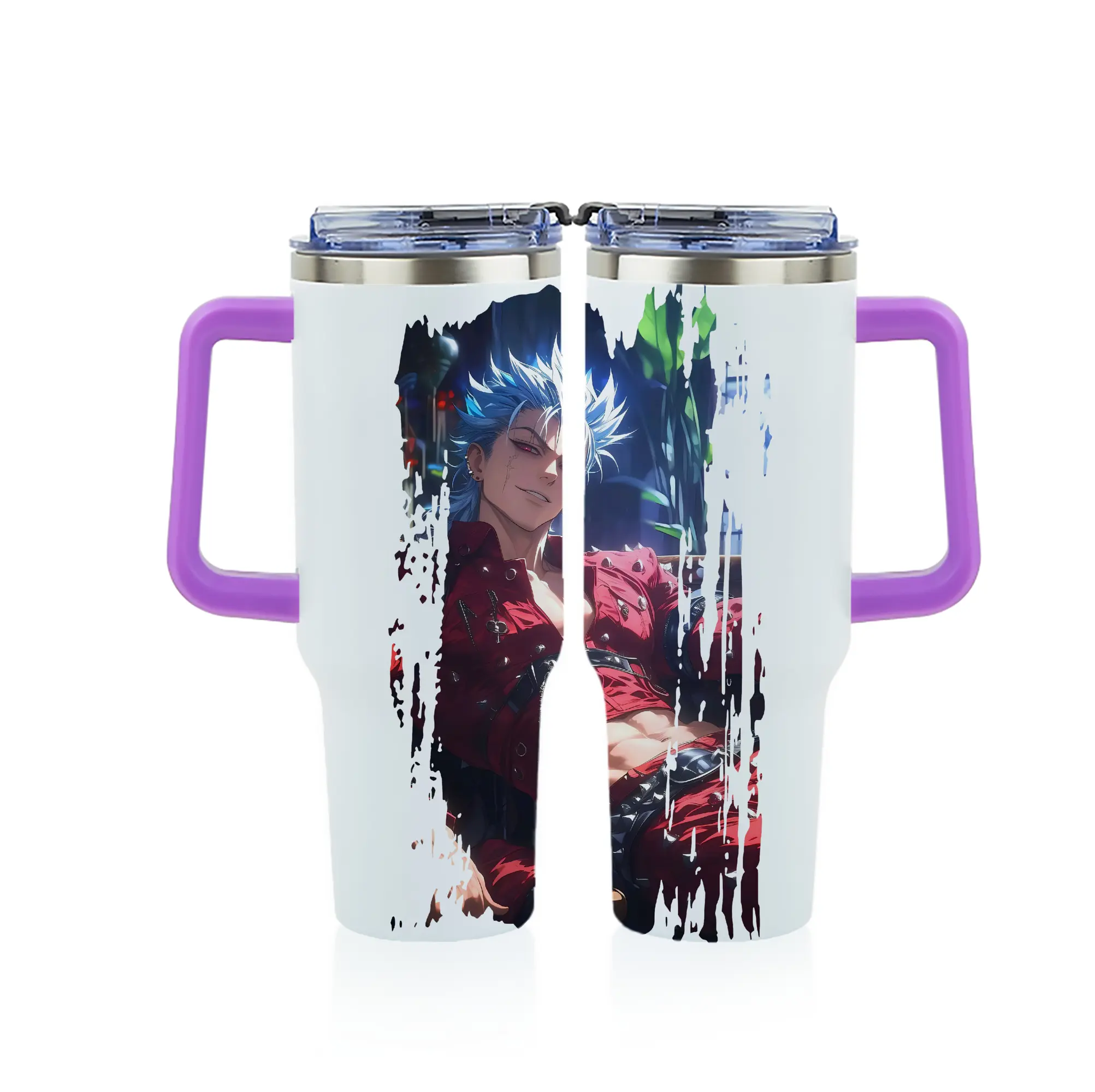 七つの大罪 グッズ バン - 1200mL フルプリント車用タンブラー ・ 304ステンレス 内側 ・ 201ステンレス 外側 ・ 保温 保冷 ・ 通勤 ドライブ アウトドア用