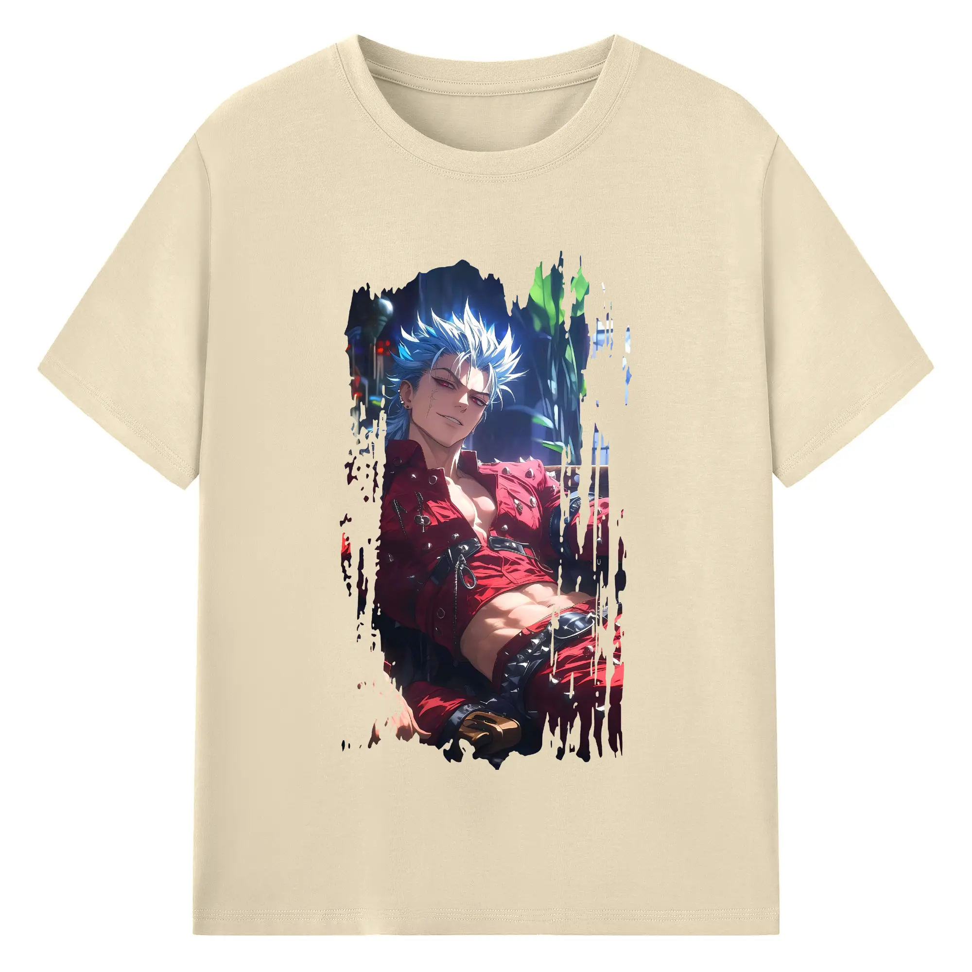 七つの大罪 グッズ バン - 綿100% ヴィンテージ風 半袖Tシャツ ・ フロントプリント ・ 柔らか肌触り ・ 通気性 快適 ・ スポーツ カジュアル 外出用