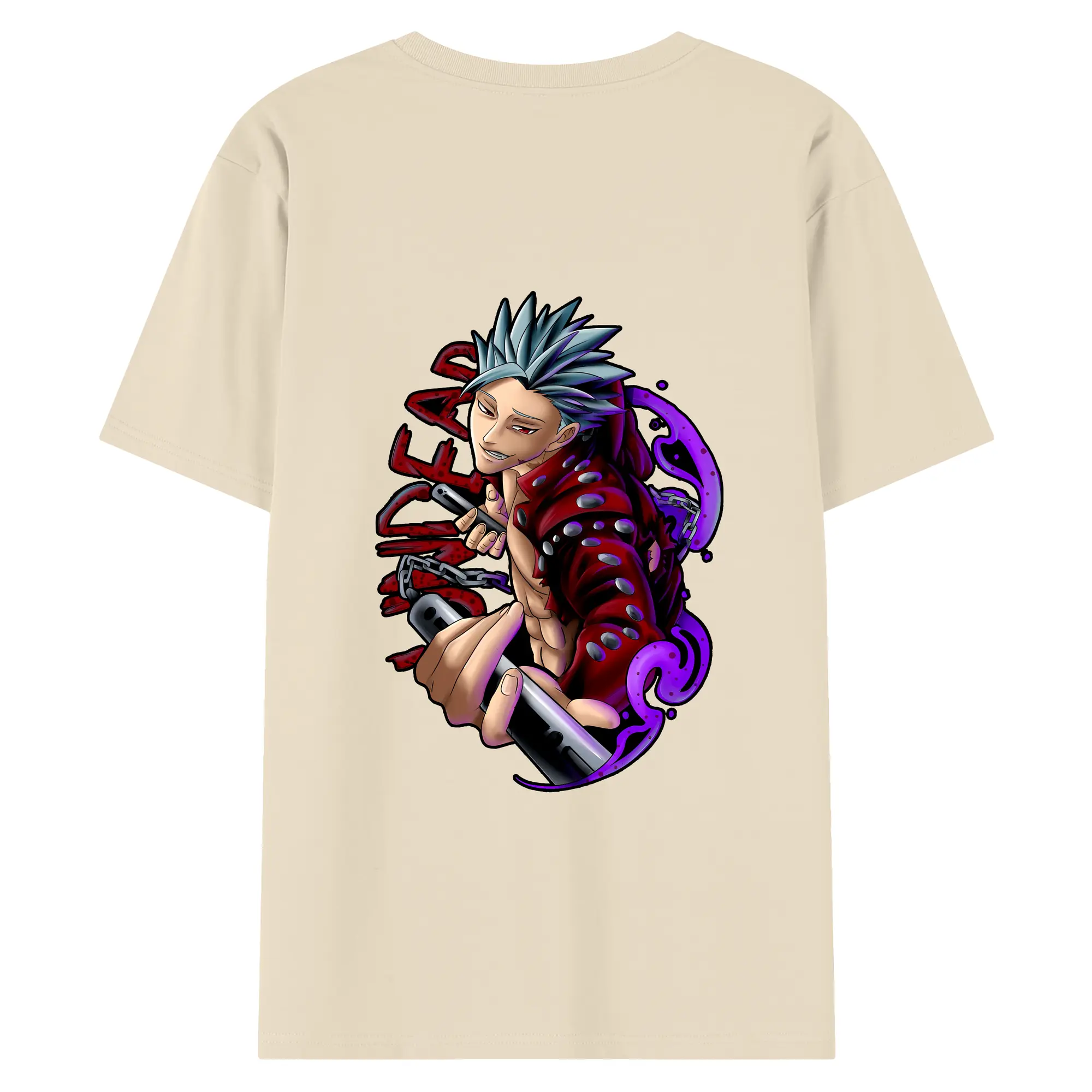 七つの大罪 グッズ バン - 綿100% ヴィンテージ風 半袖Tシャツ ・ 背面プリント ・ 柔らか肌触り ・ 通気性 快適 ・ スポーツ カジュアル 外出用