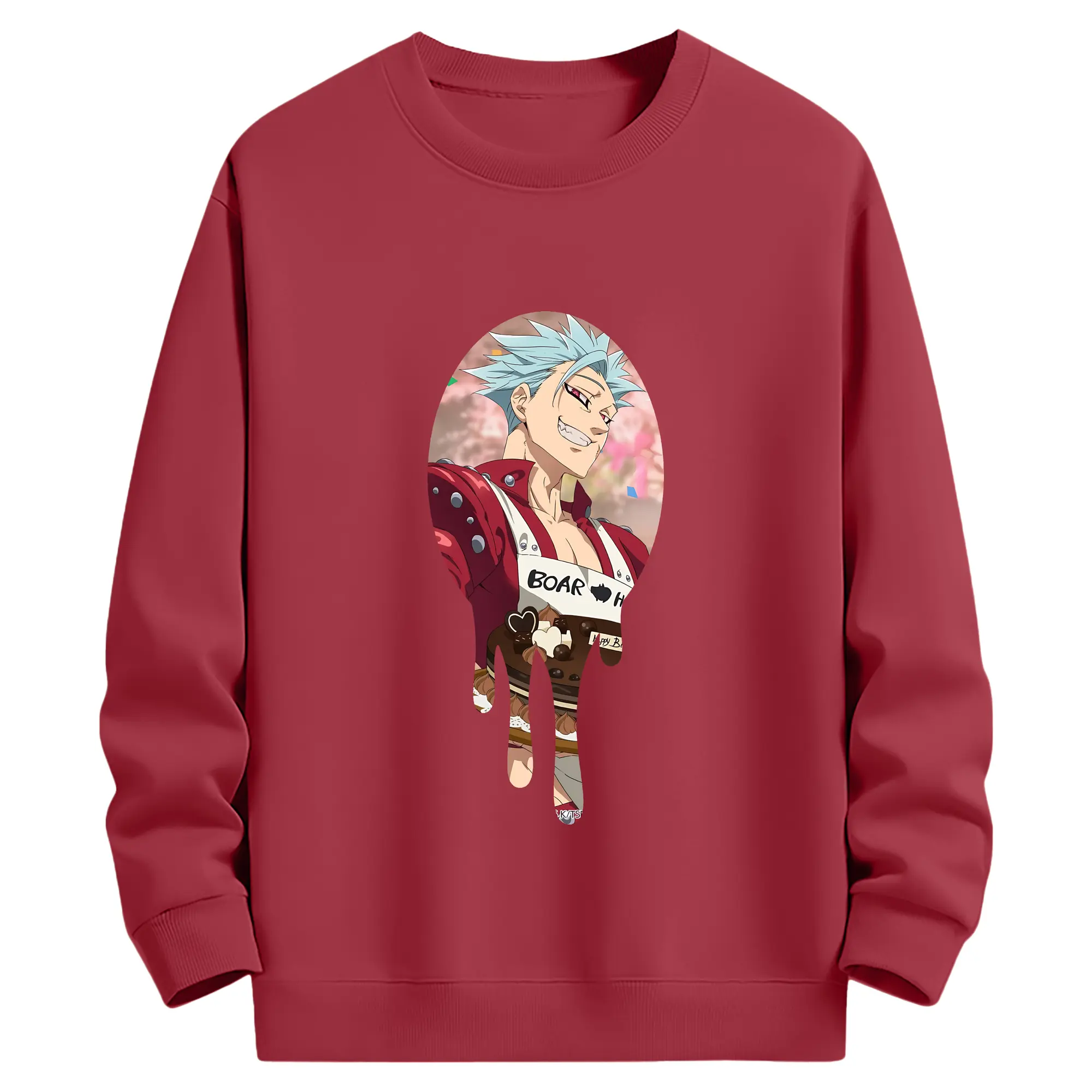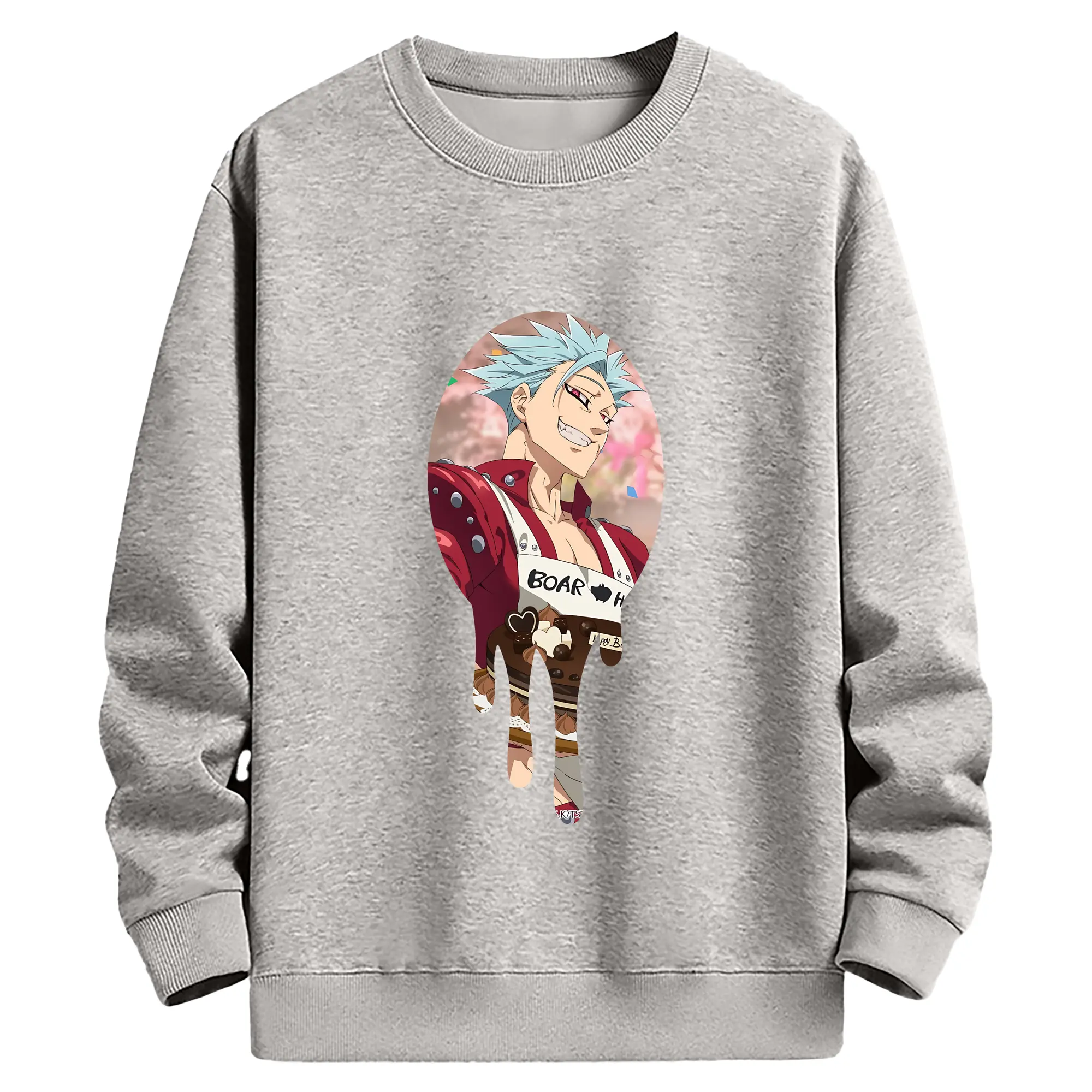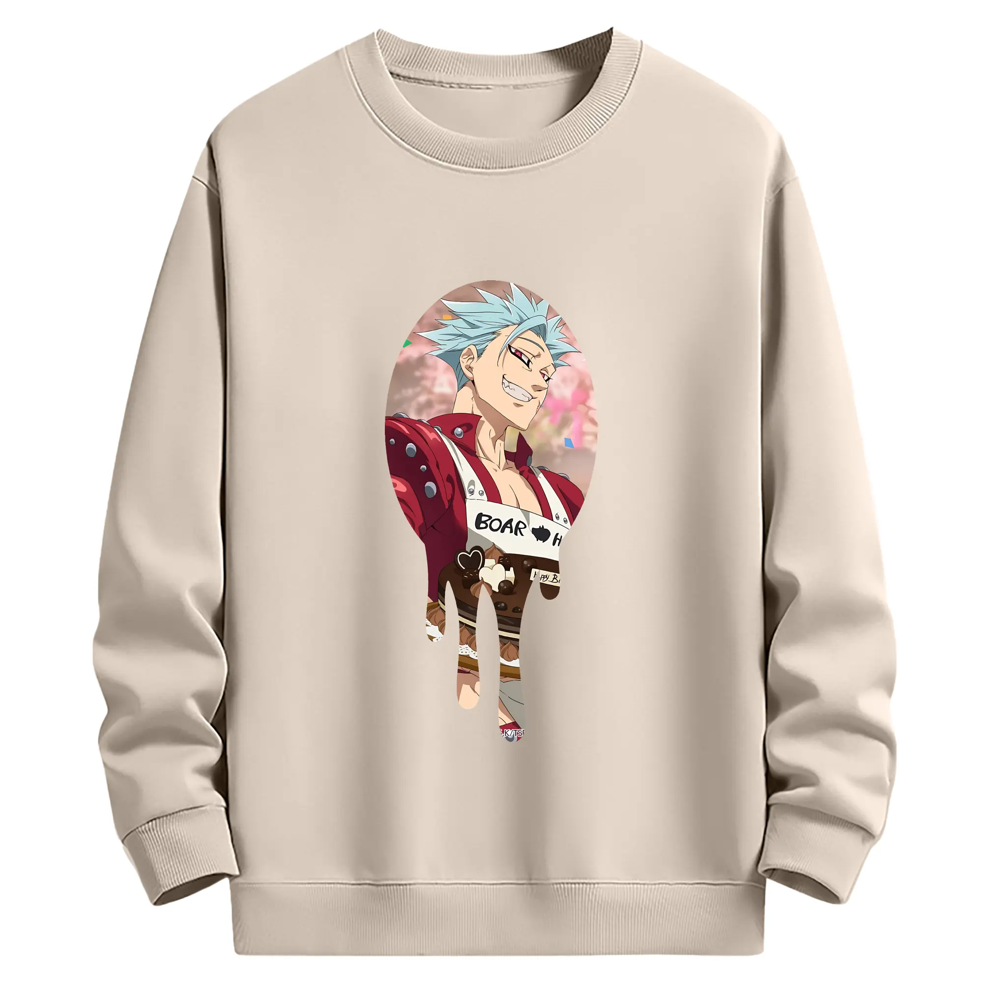 七つの大罪 グッズ バン - 薄手 クルーネック スウェット 裏毛260g · ポリエステル 春秋向け カジュアル 男女兼用 · トレーナー デイリー スポーツ 散歩に最適