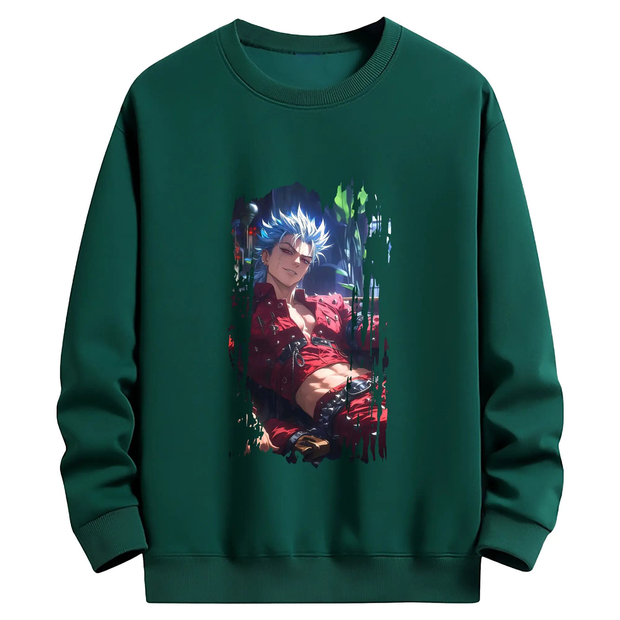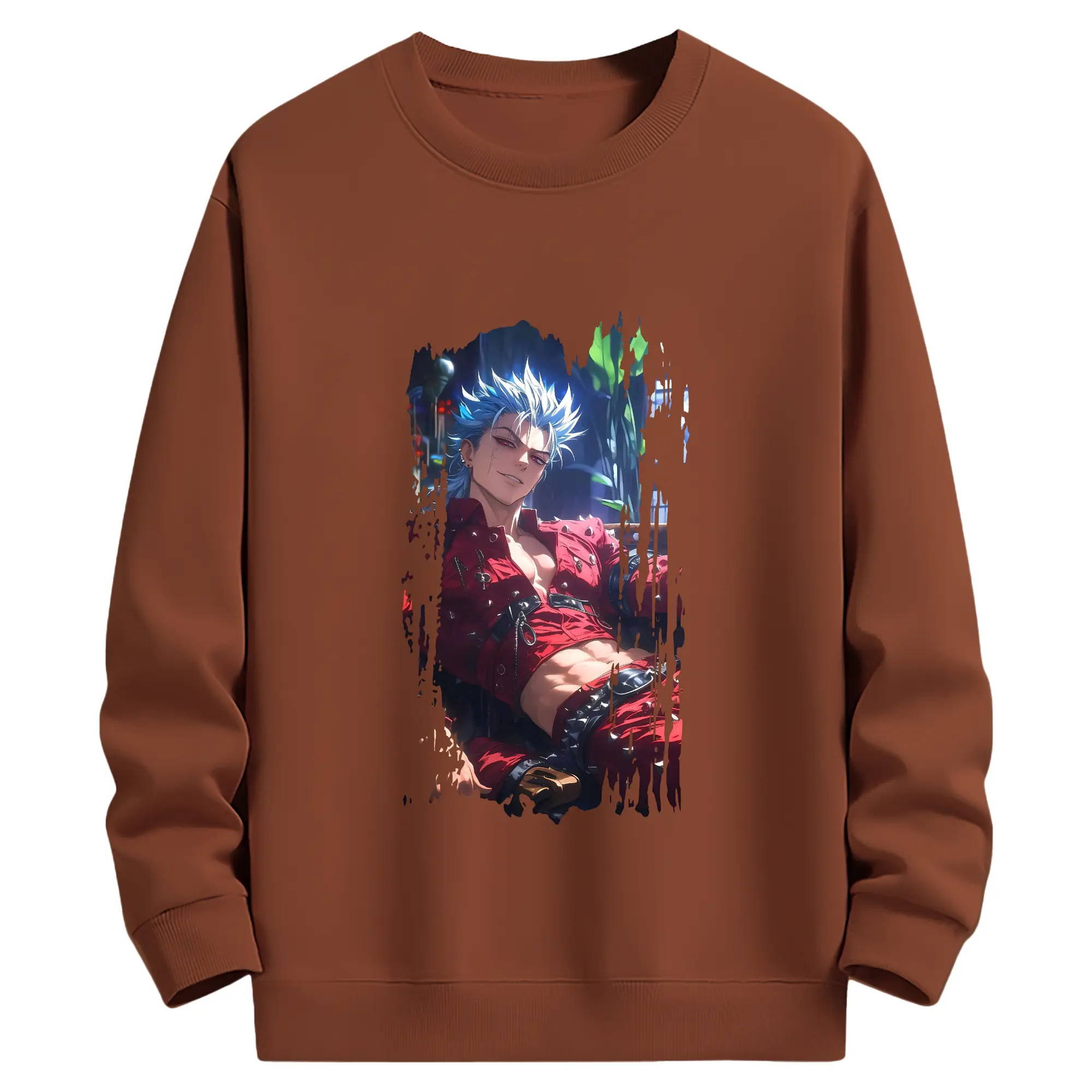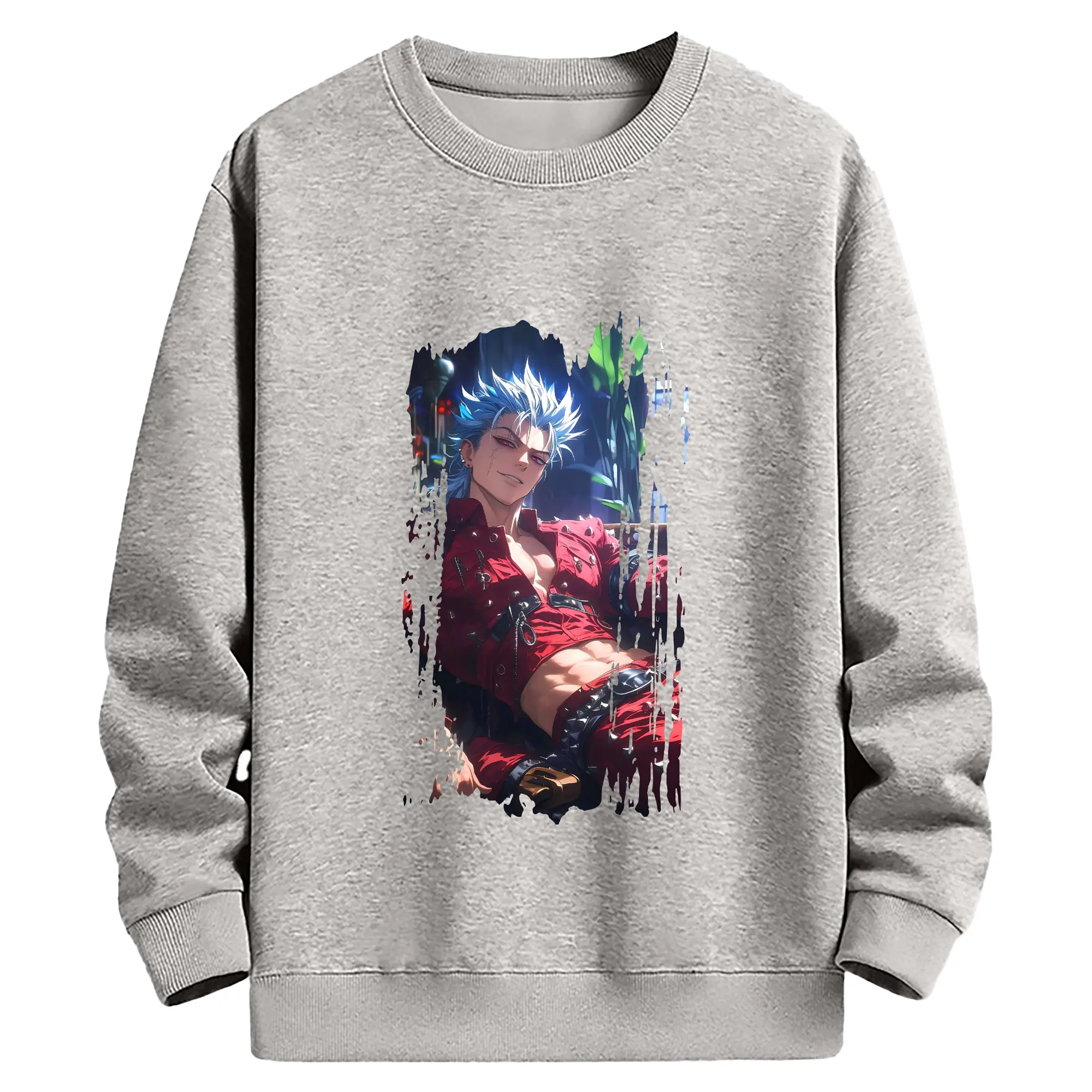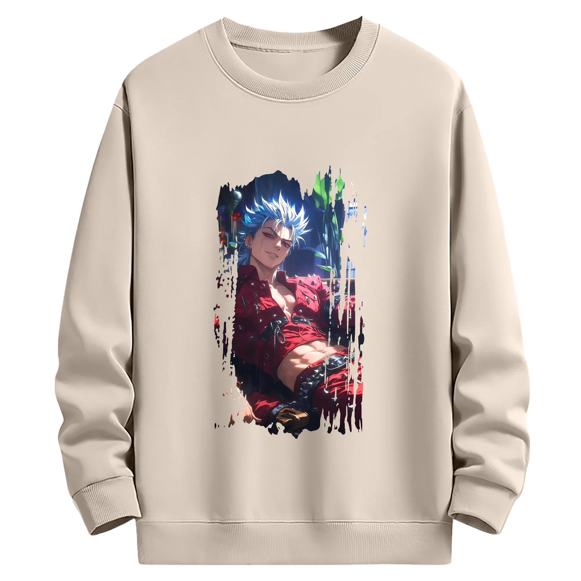 七つの大罪 グッズ バン - 薄手 クルーネック スウェット 裏毛260g · ポリエステル 春秋向け カジュアル 男女兼用 · トレーナー デイリー スポーツ 散歩に最適