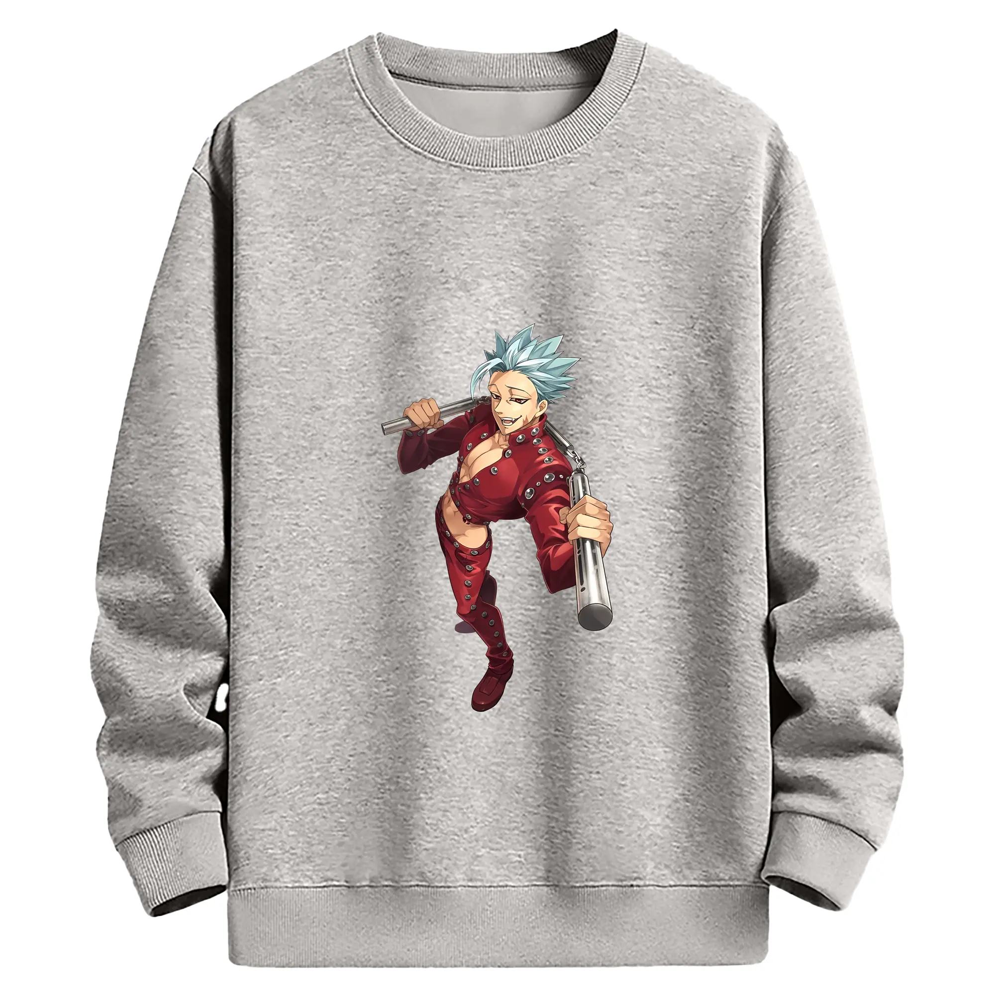 七つの大罪 グッズ バン - 薄手 クルーネック スウェット 裏毛260g · ポリエステル 春秋向け カジュアル 男女兼用 · トレーナー デイリー スポーツ 散歩に最適