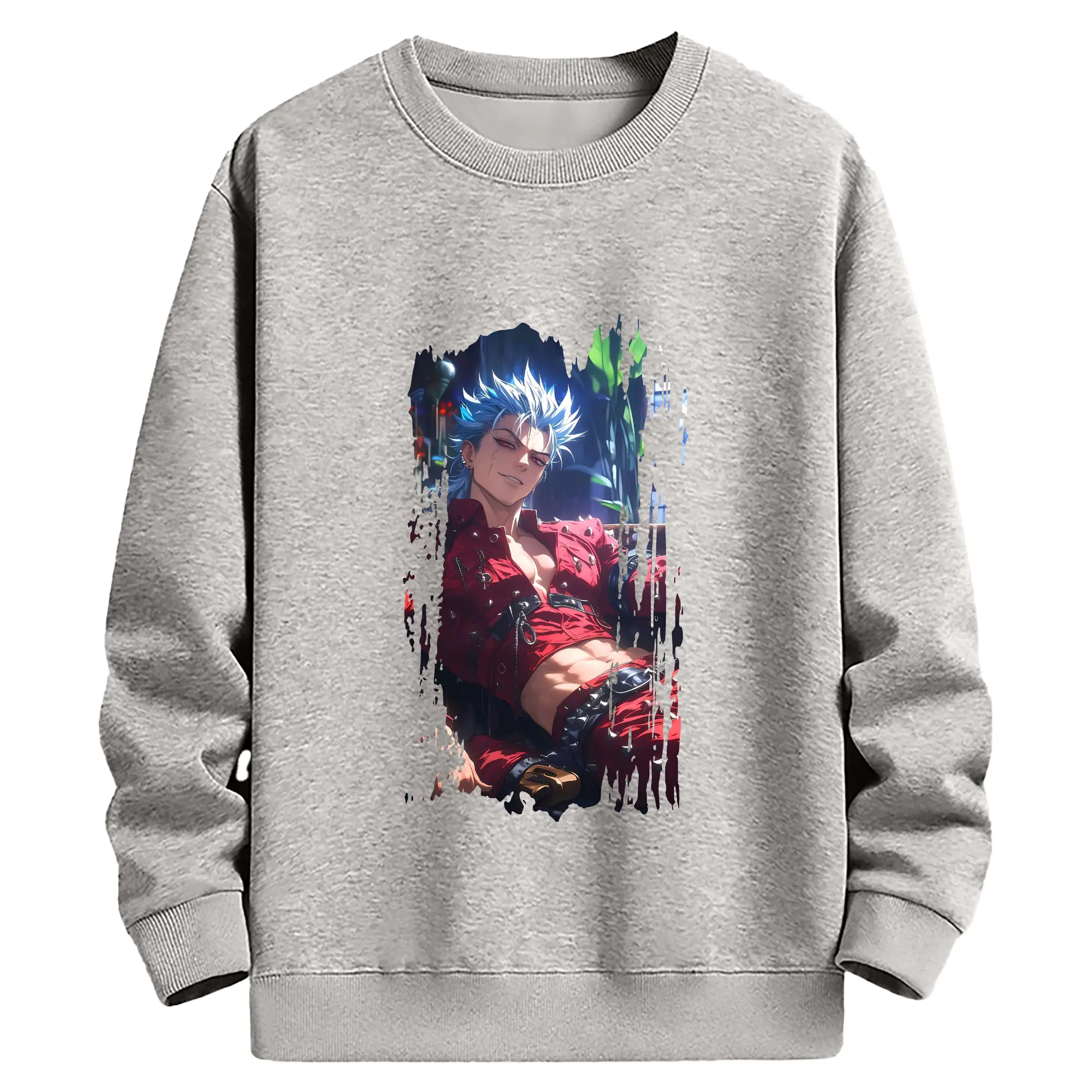 七つの大罪 グッズ バン - 薄手 クルーネック スウェット 裏毛260g · ポリエステル 春秋向け カジュアル 男女兼用 · トレーナー デイリー スポーツ 散歩に最適