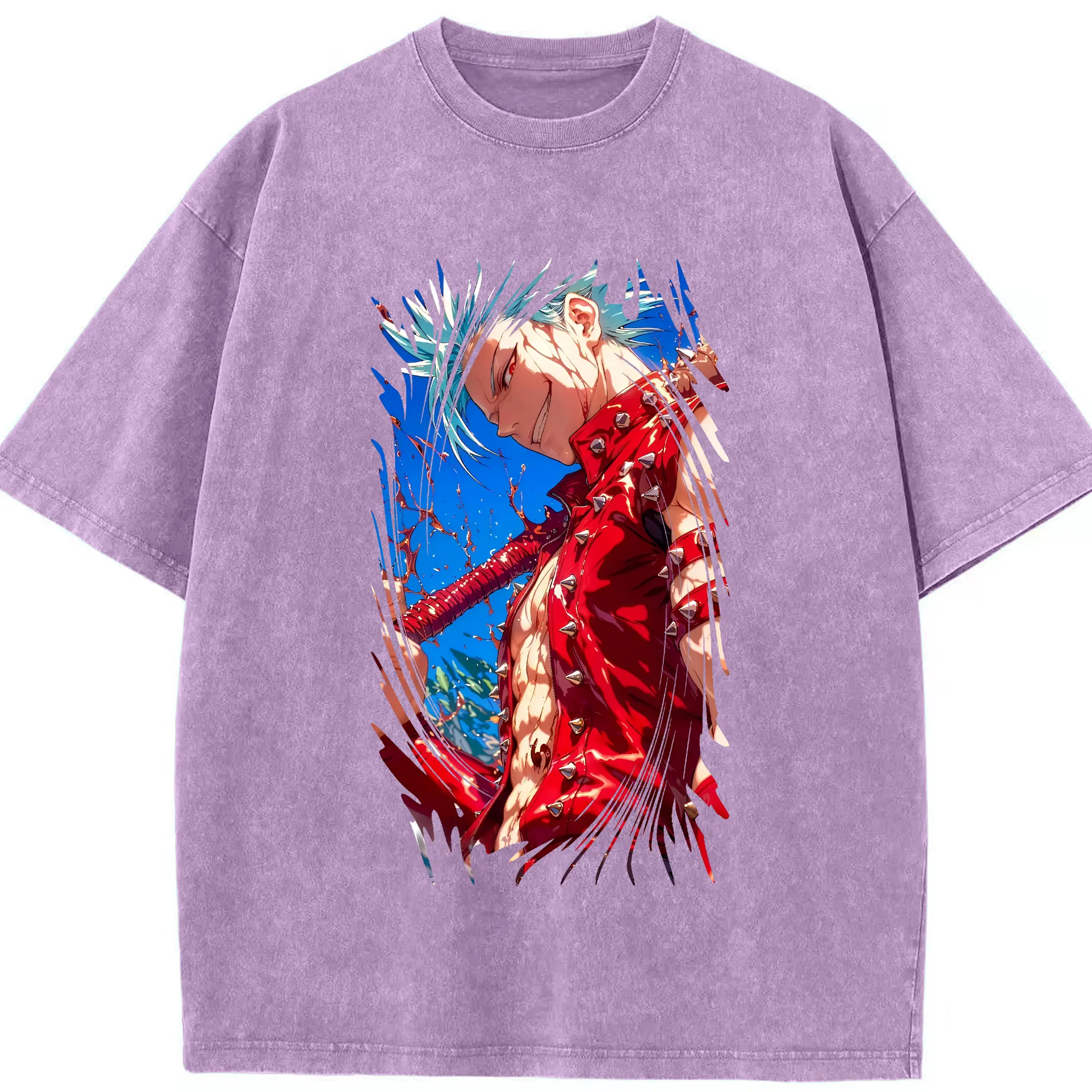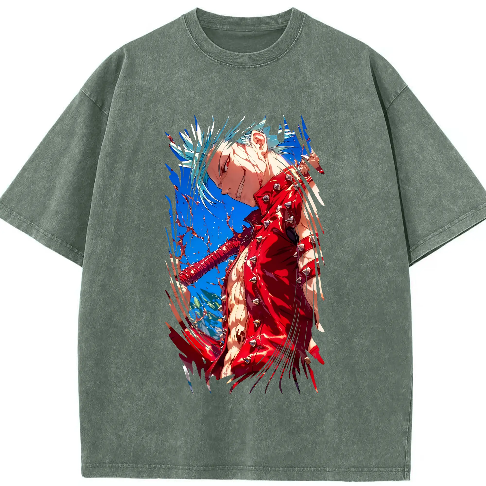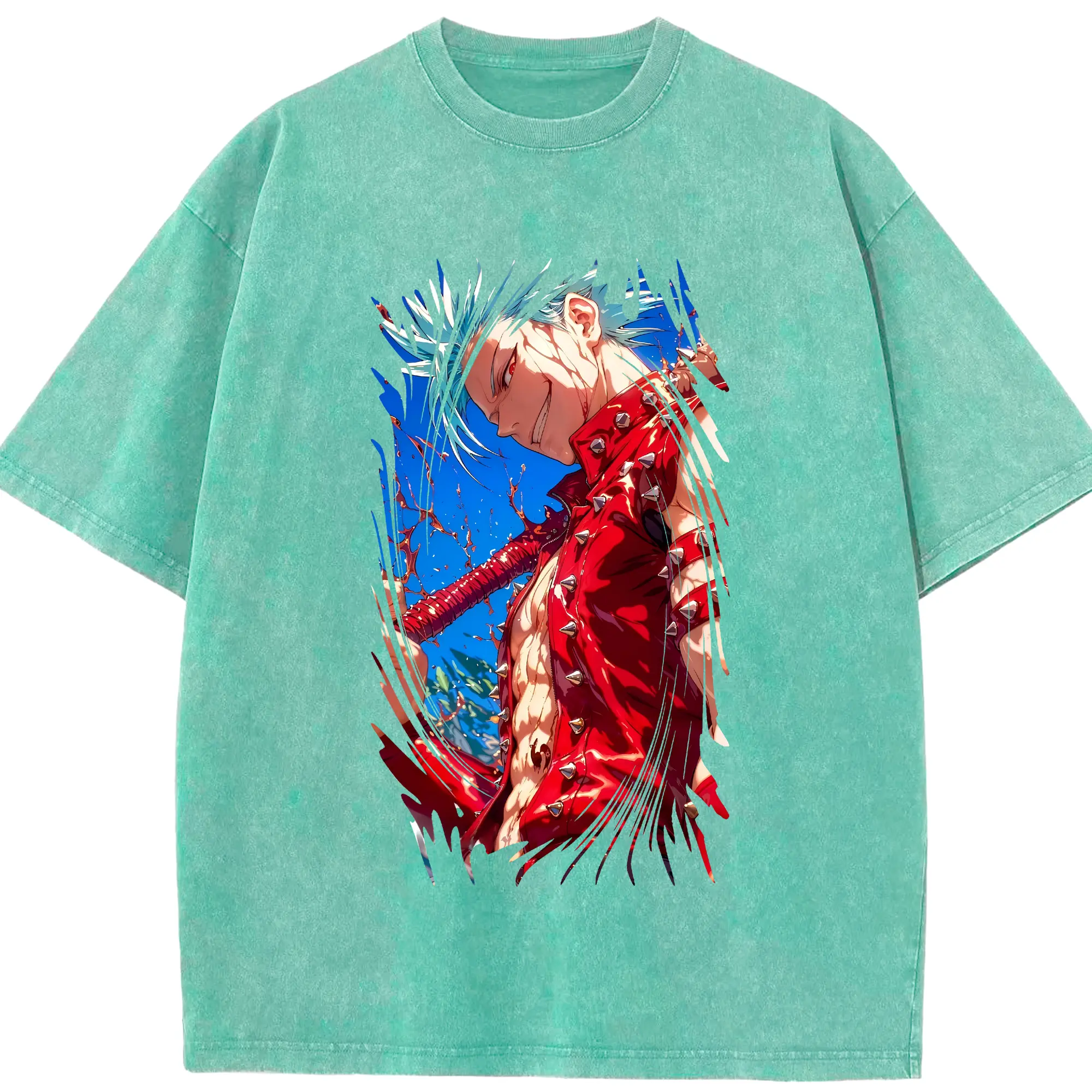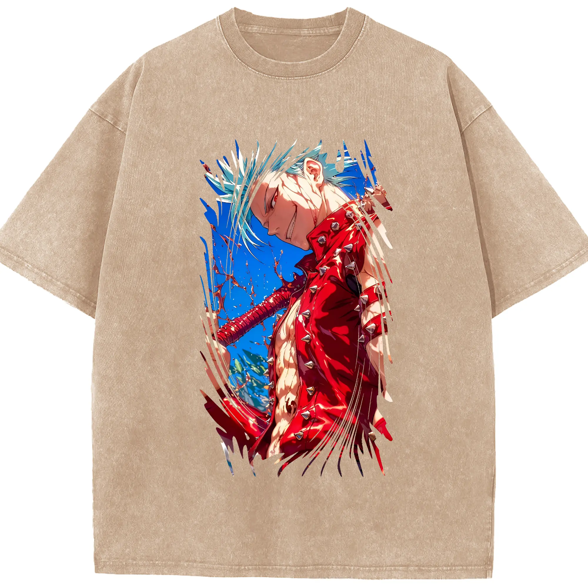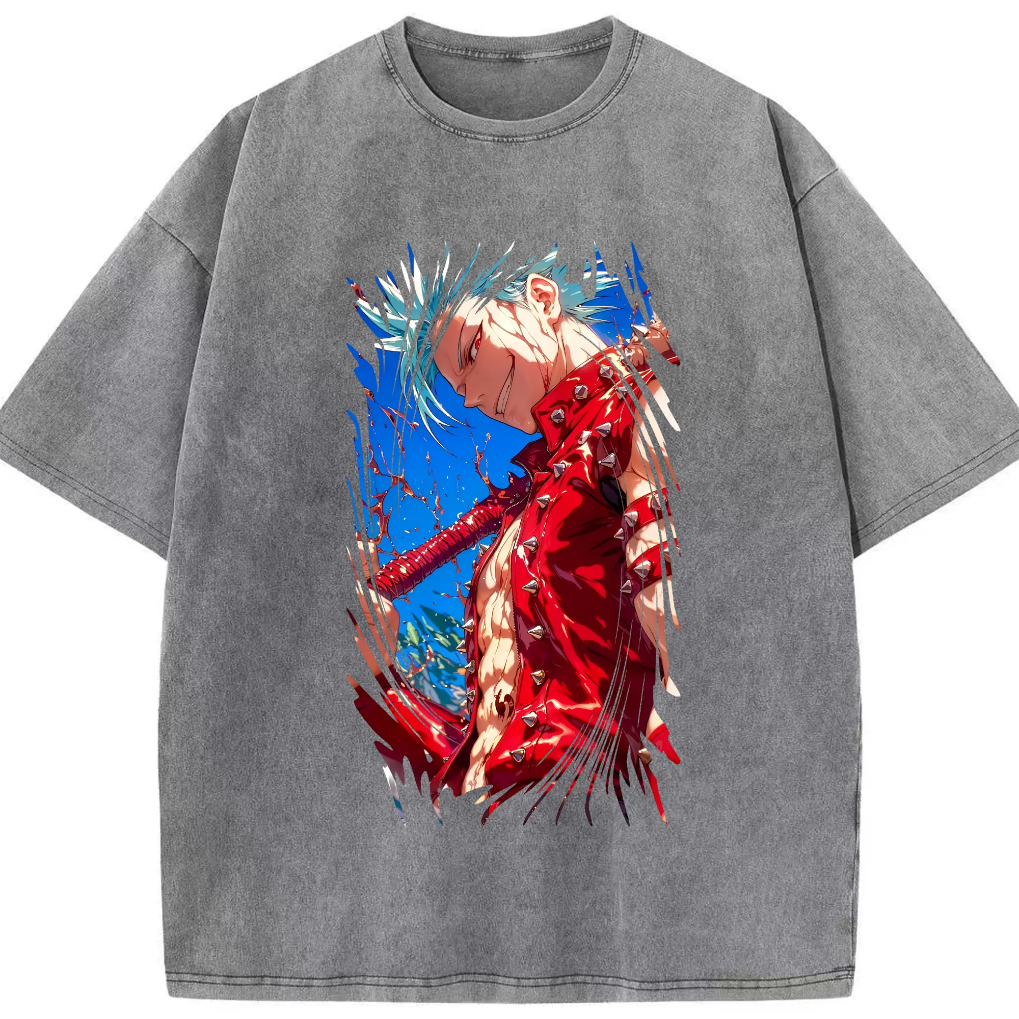 七つの大罪 グッズ バン - 綿100% ヴィンテージ風 半袖Tシャツ ・ 背面プリント ・ 柔らか肌触り ・ 通気性 快適 ・ スポーツ カジュアル 外出用