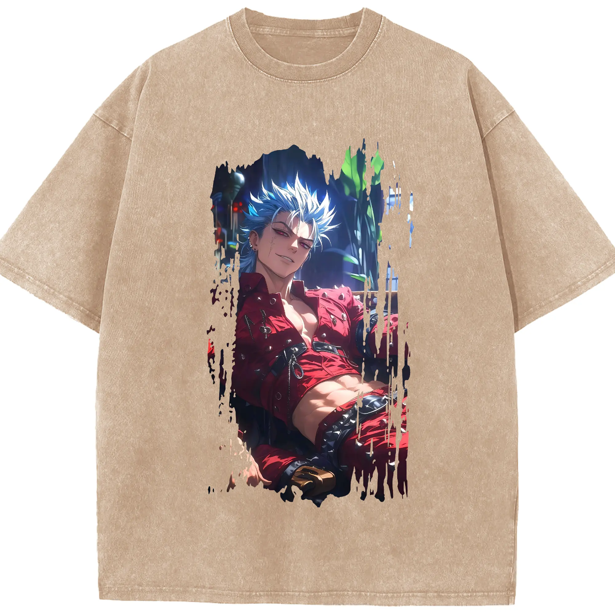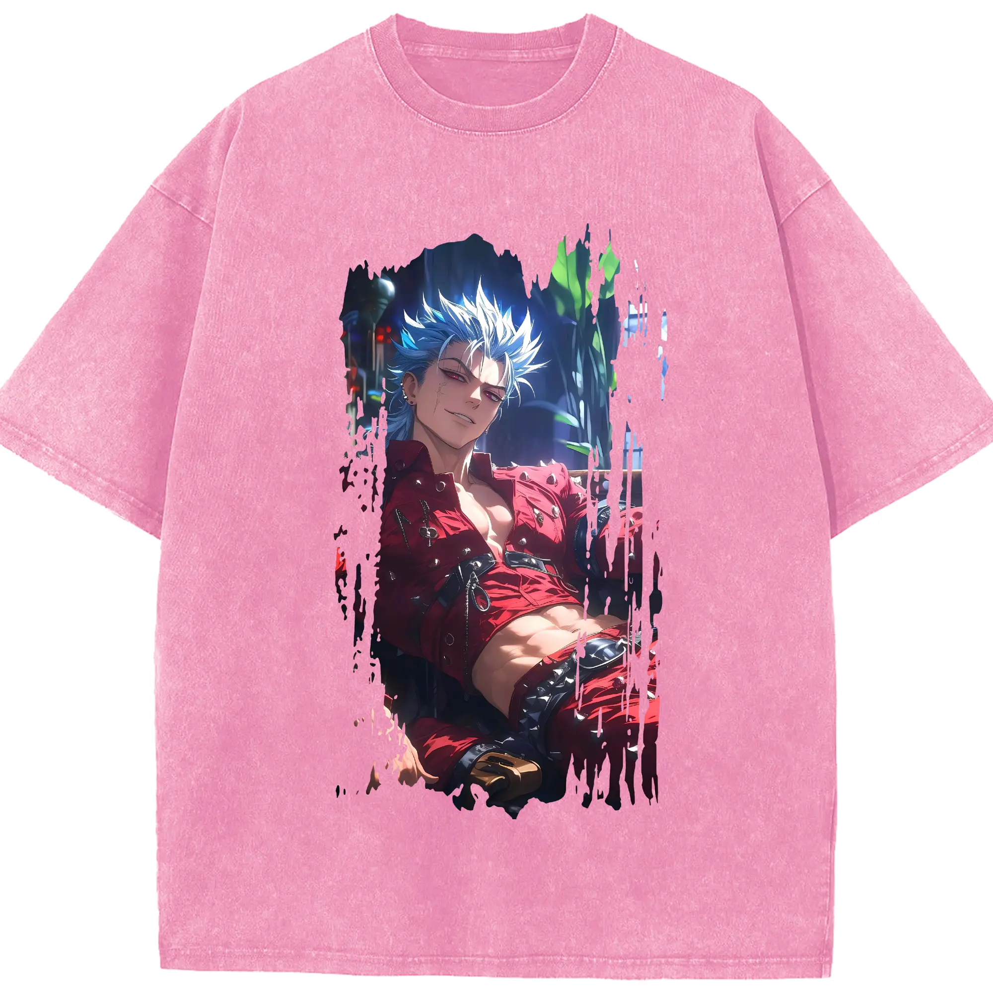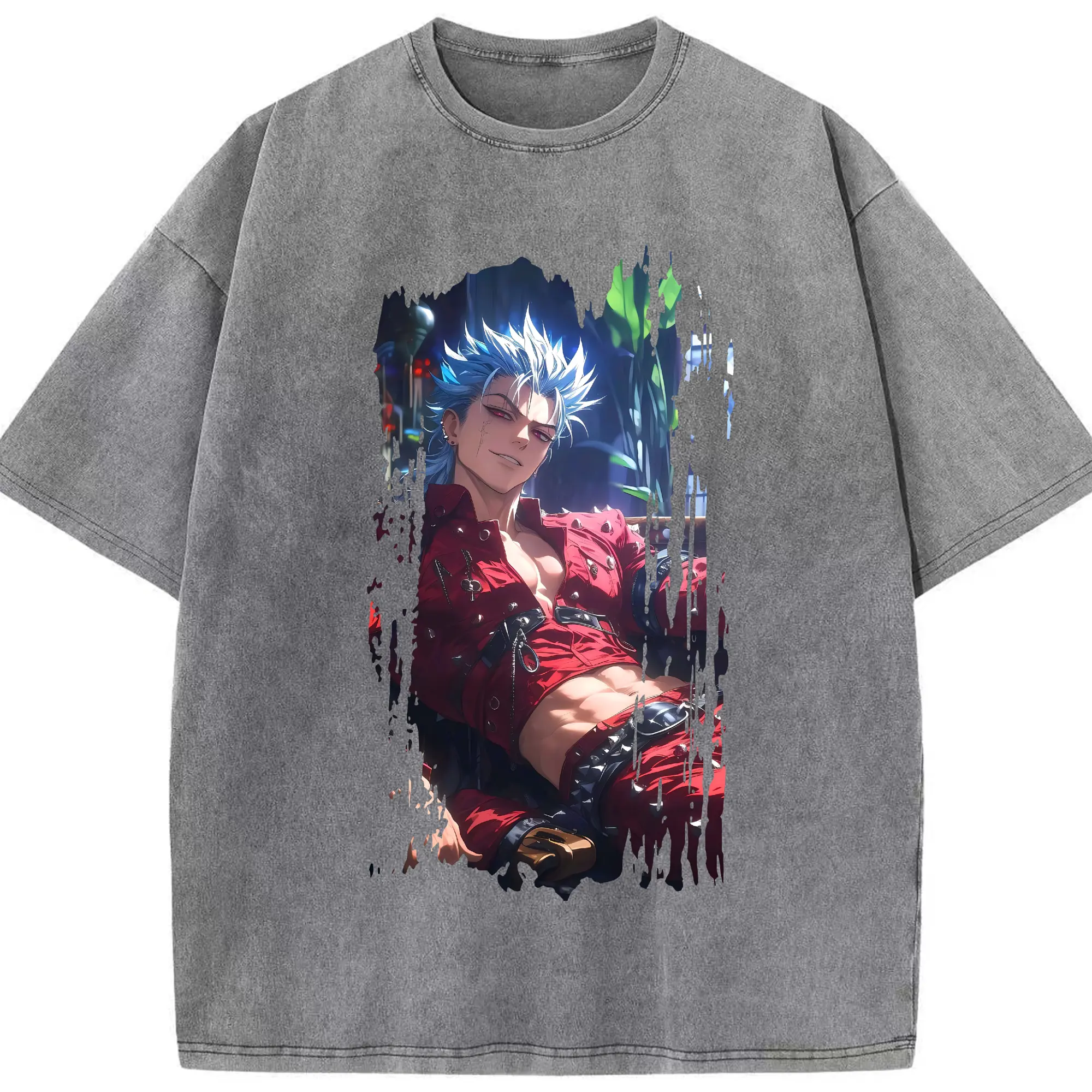 七つの大罪 グッズ バン - 綿100% ヴィンテージ風 半袖Tシャツ ・ 背面プリント ・ 柔らか肌触り ・ 通気性 快適 ・ スポーツ カジュアル 外出用
