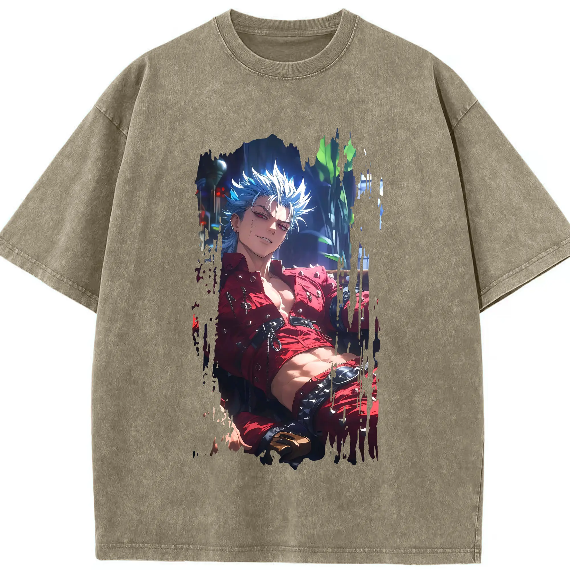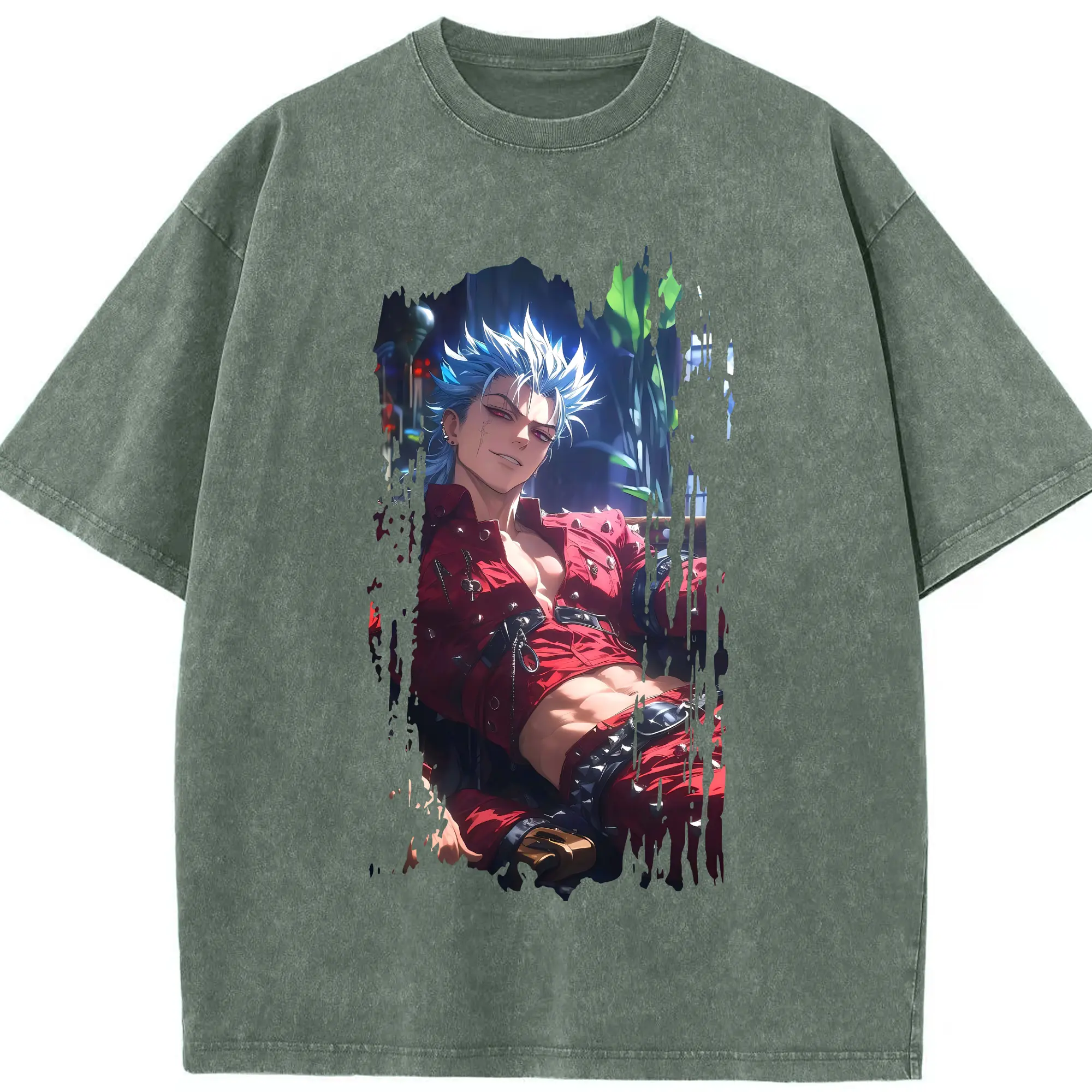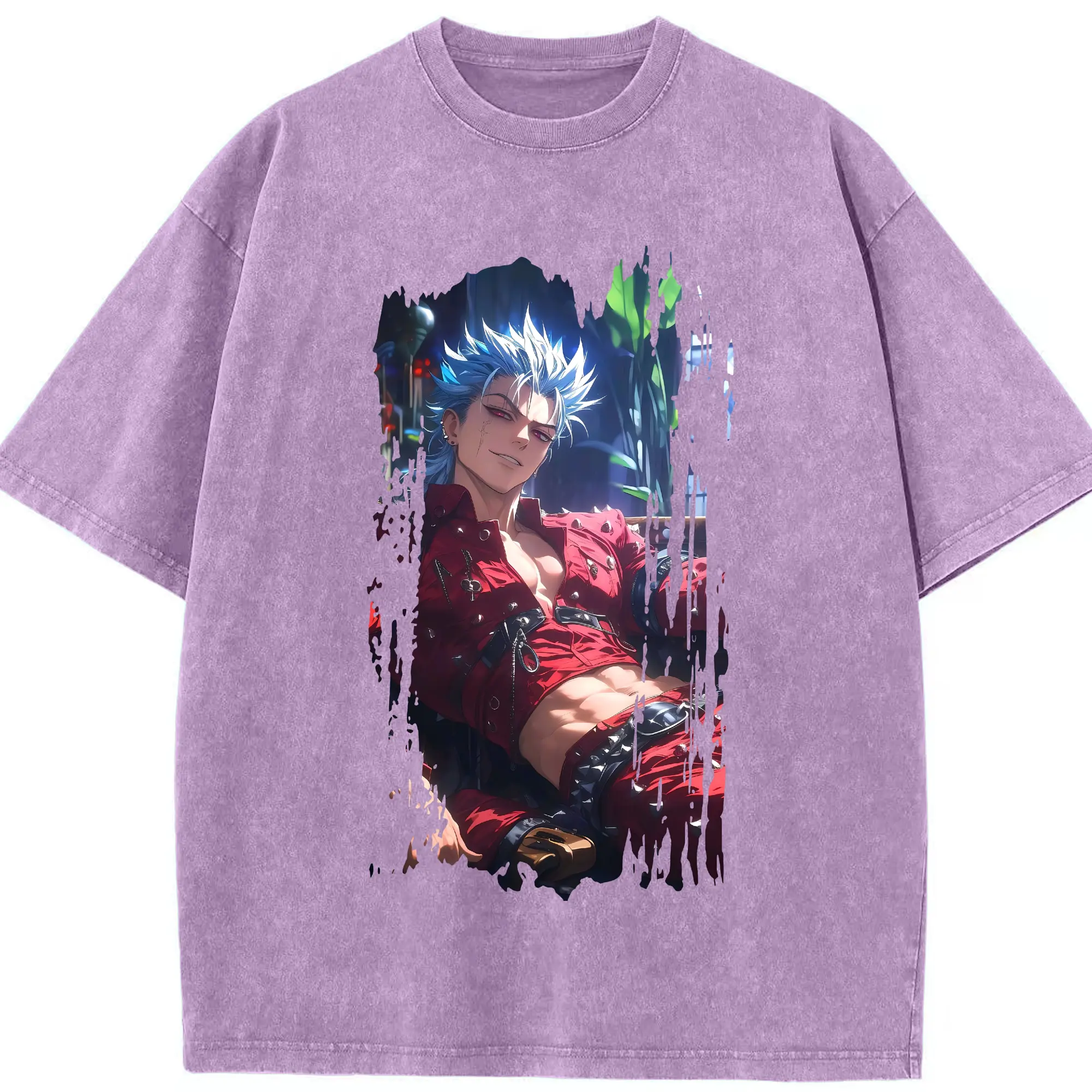 七つの大罪 グッズ バン - 綿100% ヴィンテージ風 半袖Tシャツ ・ 背面プリント ・ 柔らか肌触り ・ 通気性 快適 ・ スポーツ カジュアル 外出用