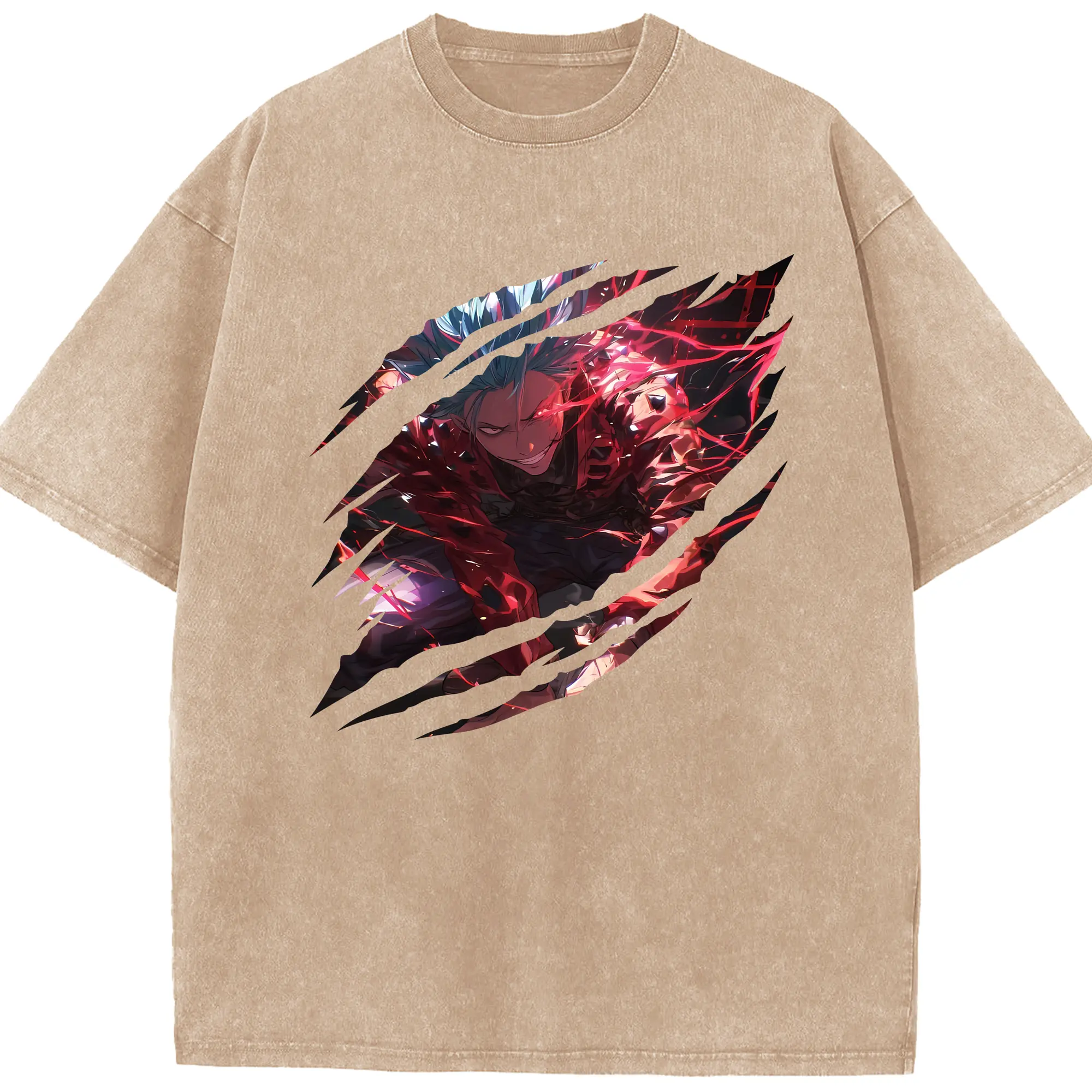 ブラッククローバー グッズ アスタ - 綿100% ヴィンテージ風 半袖Tシャツ ・ フロントプリント ・ 柔らか肌触り ・ 通気性 快適 ・ スポーツ カジュアル 外出用