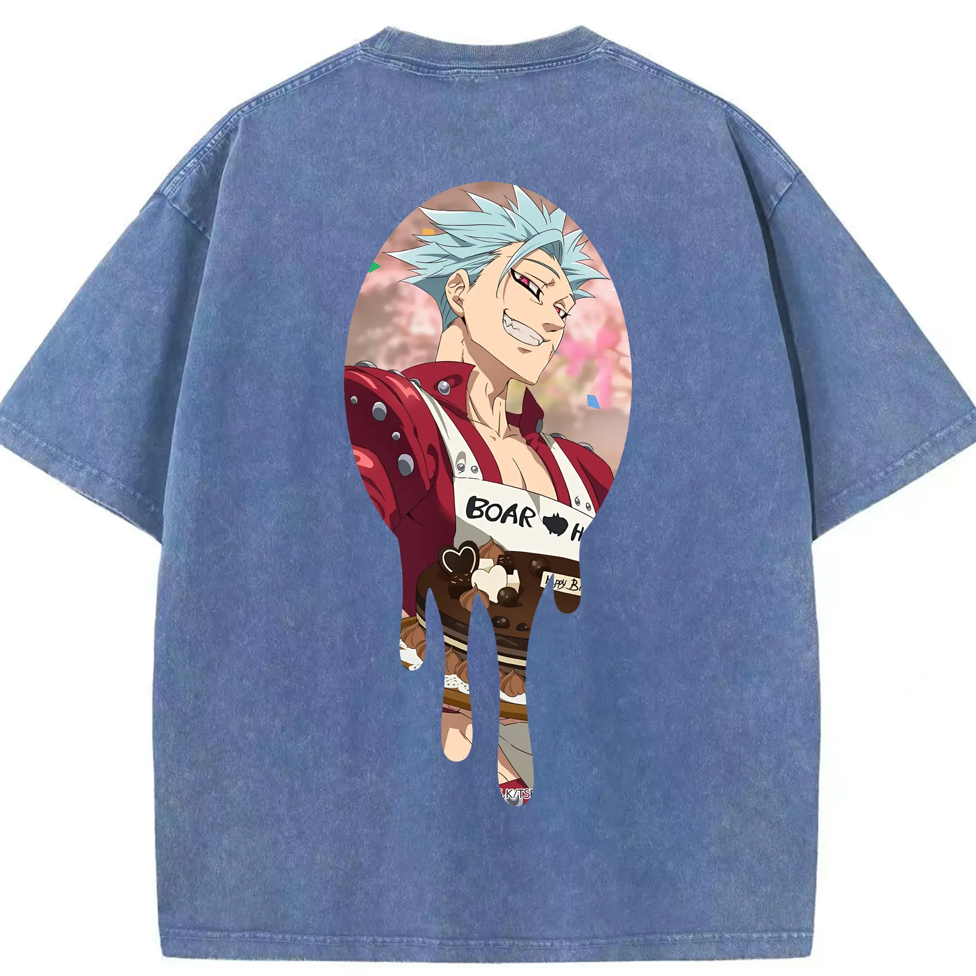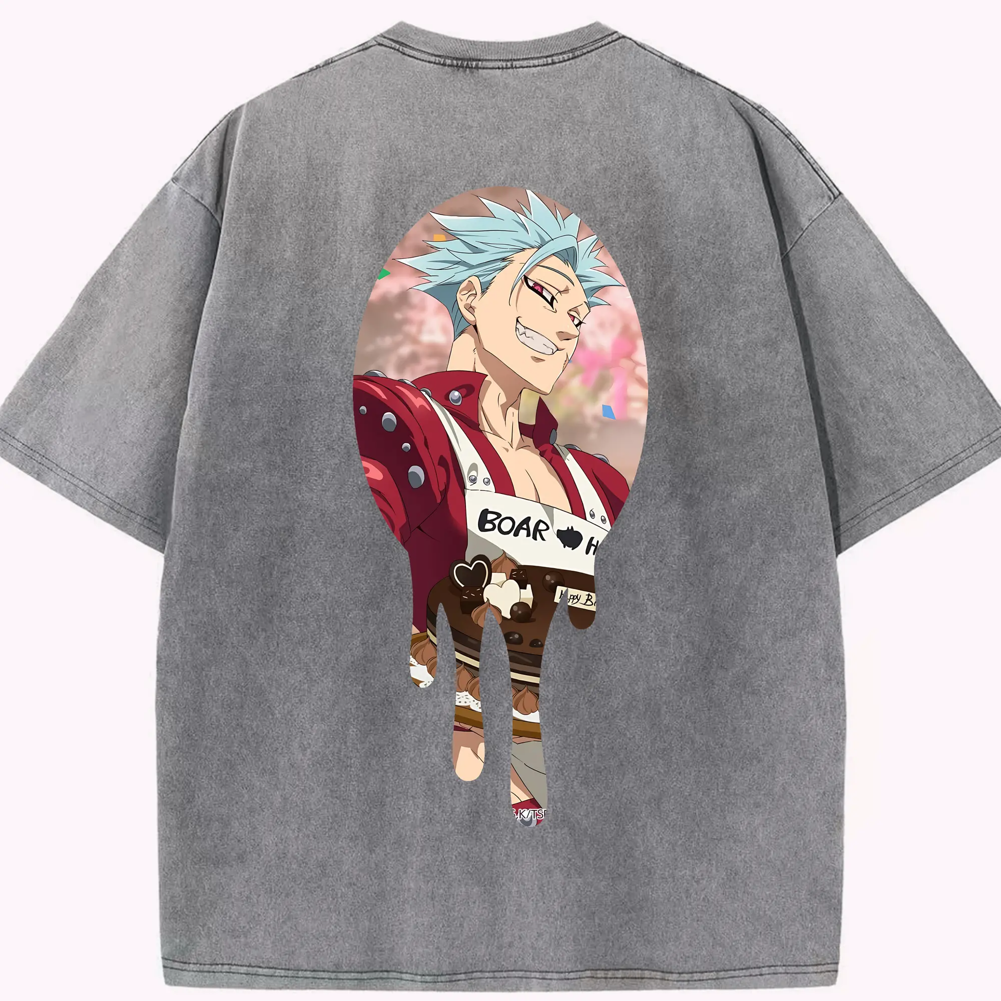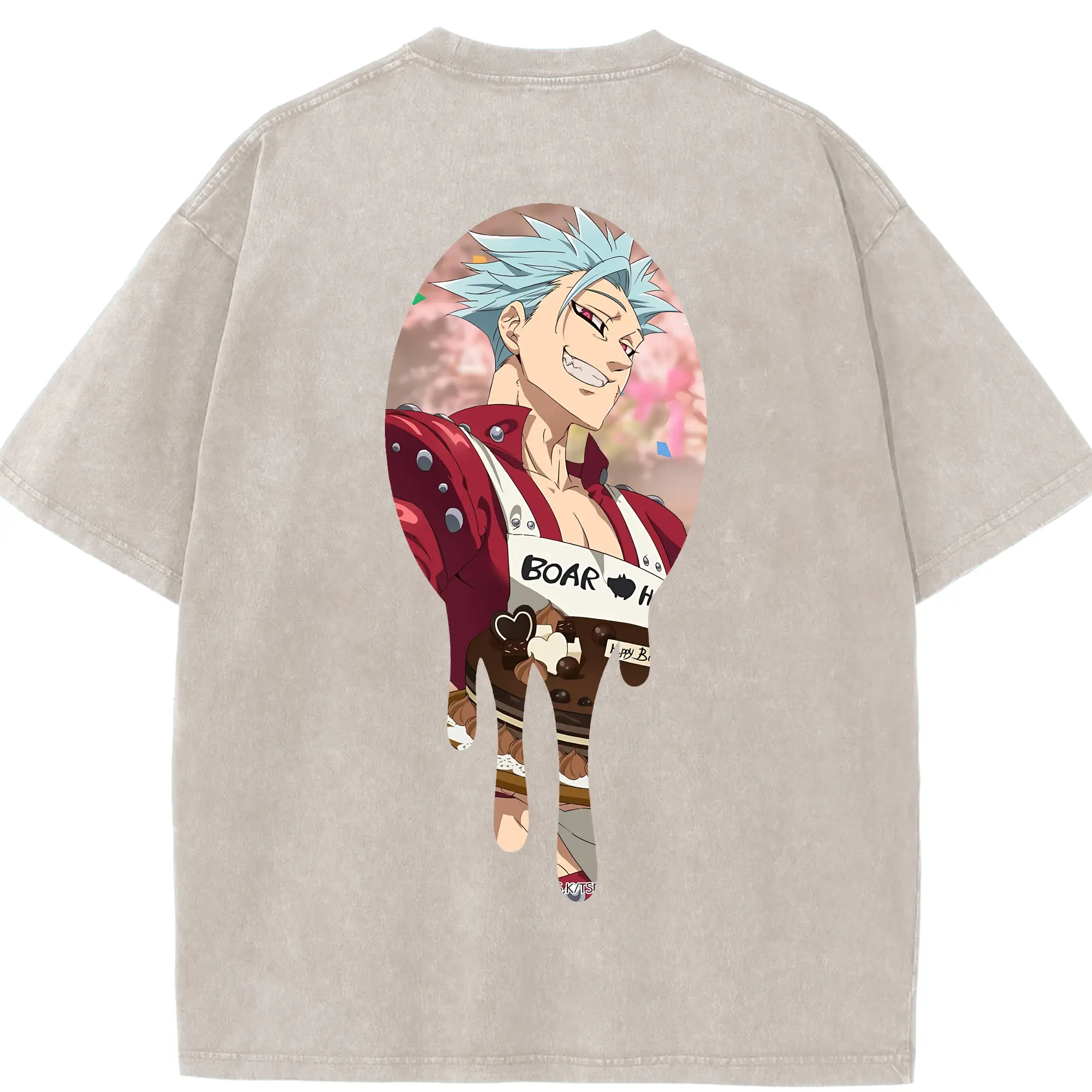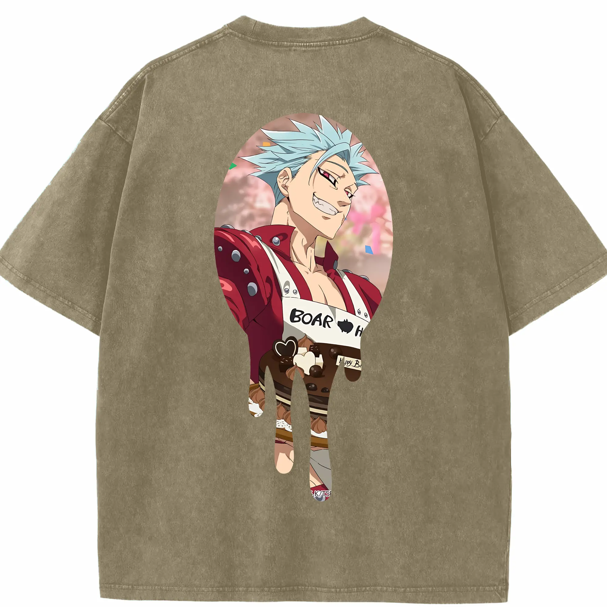 七つの大罪 グッズ バン - 綿100% ヴィンテージ風 半袖Tシャツ ・ フロントプリント ・ 柔らか肌触り ・ 通気性 快適 ・ スポーツ カジュアル 外出用
