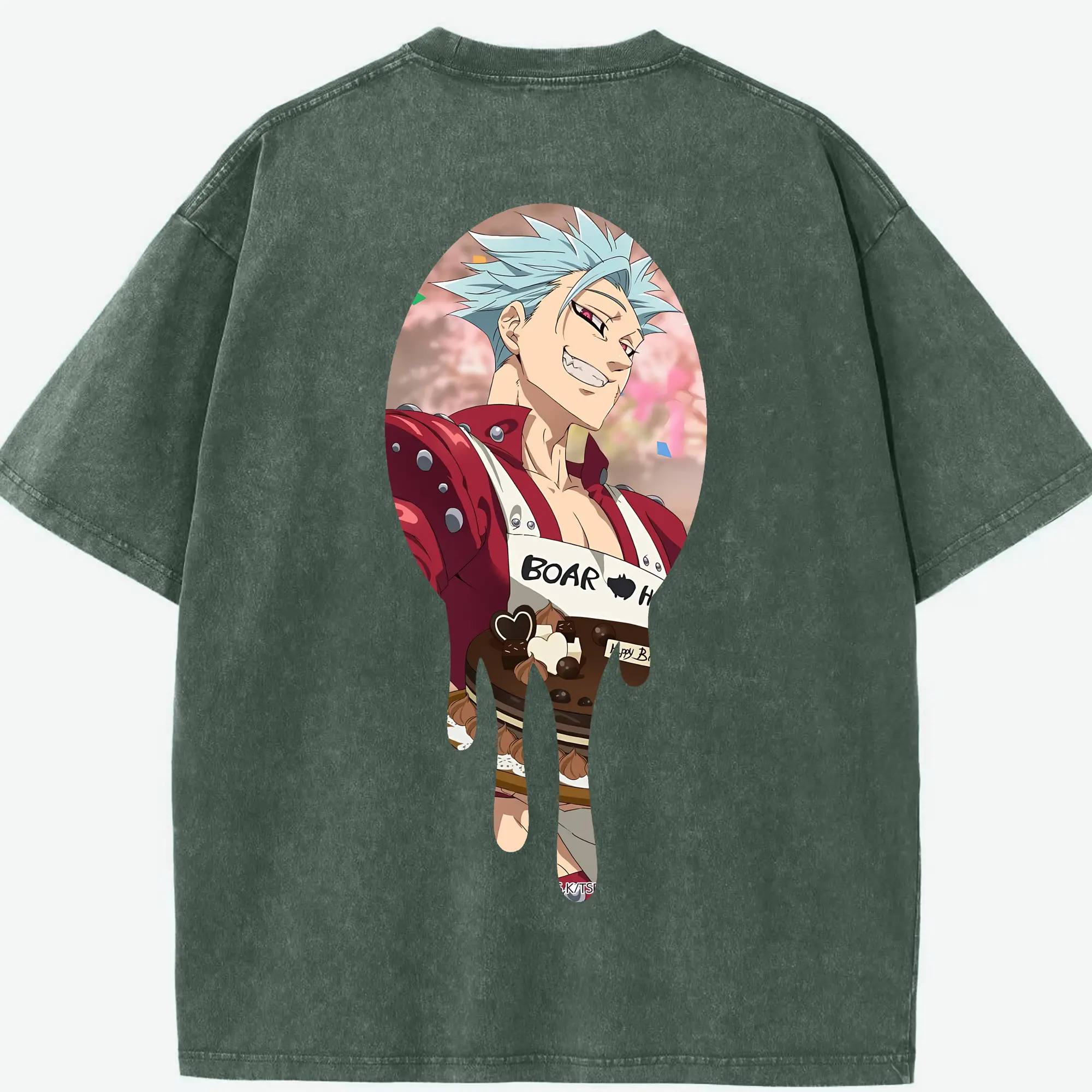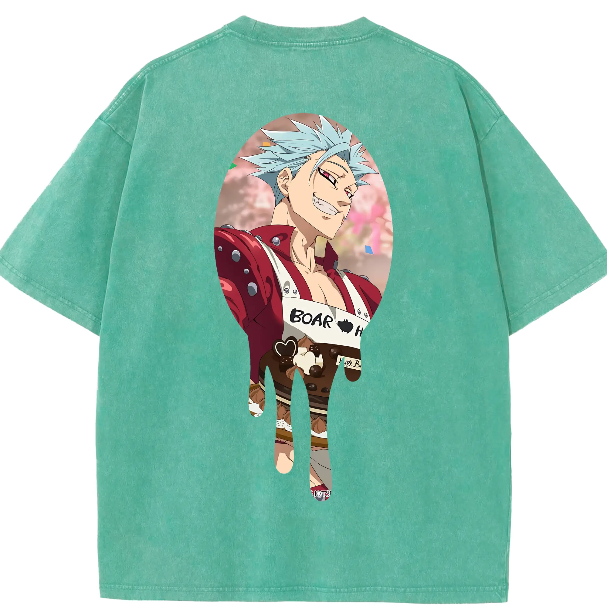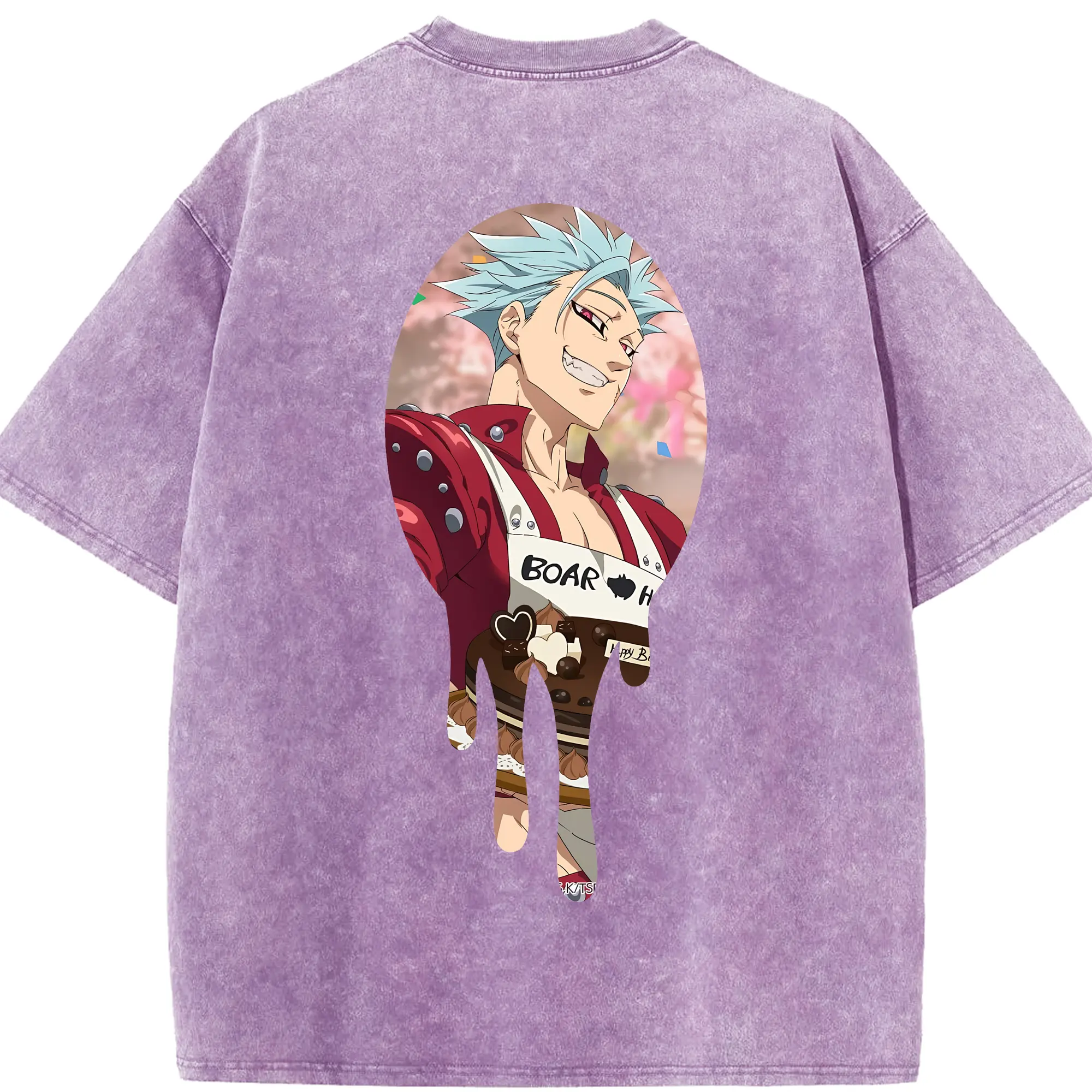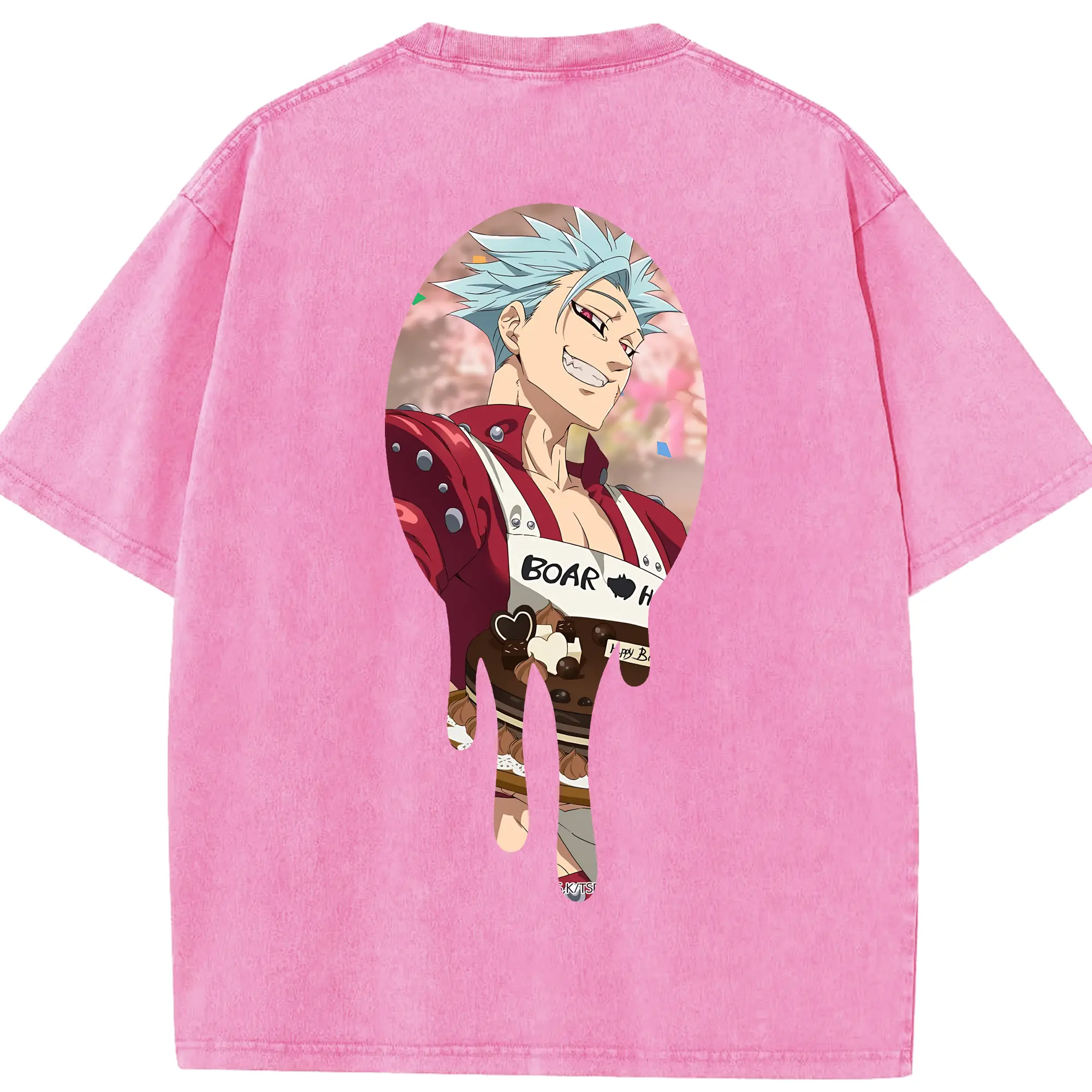 七つの大罪 グッズ バン - 綿100% ヴィンテージ風 半袖Tシャツ ・ フロントプリント ・ 柔らか肌触り ・ 通気性 快適 ・ スポーツ カジュアル 外出用