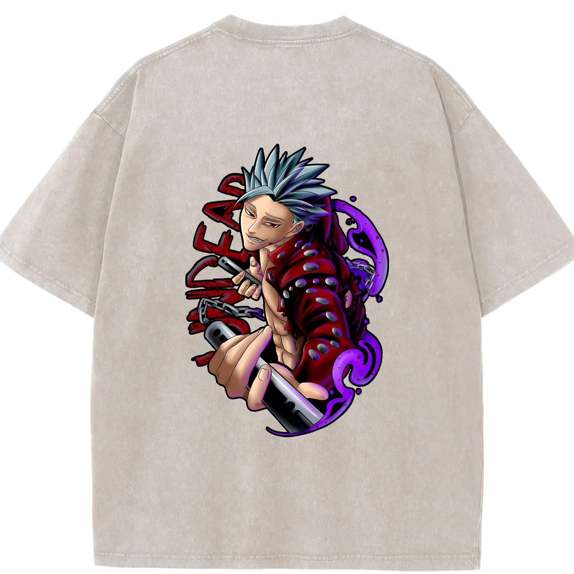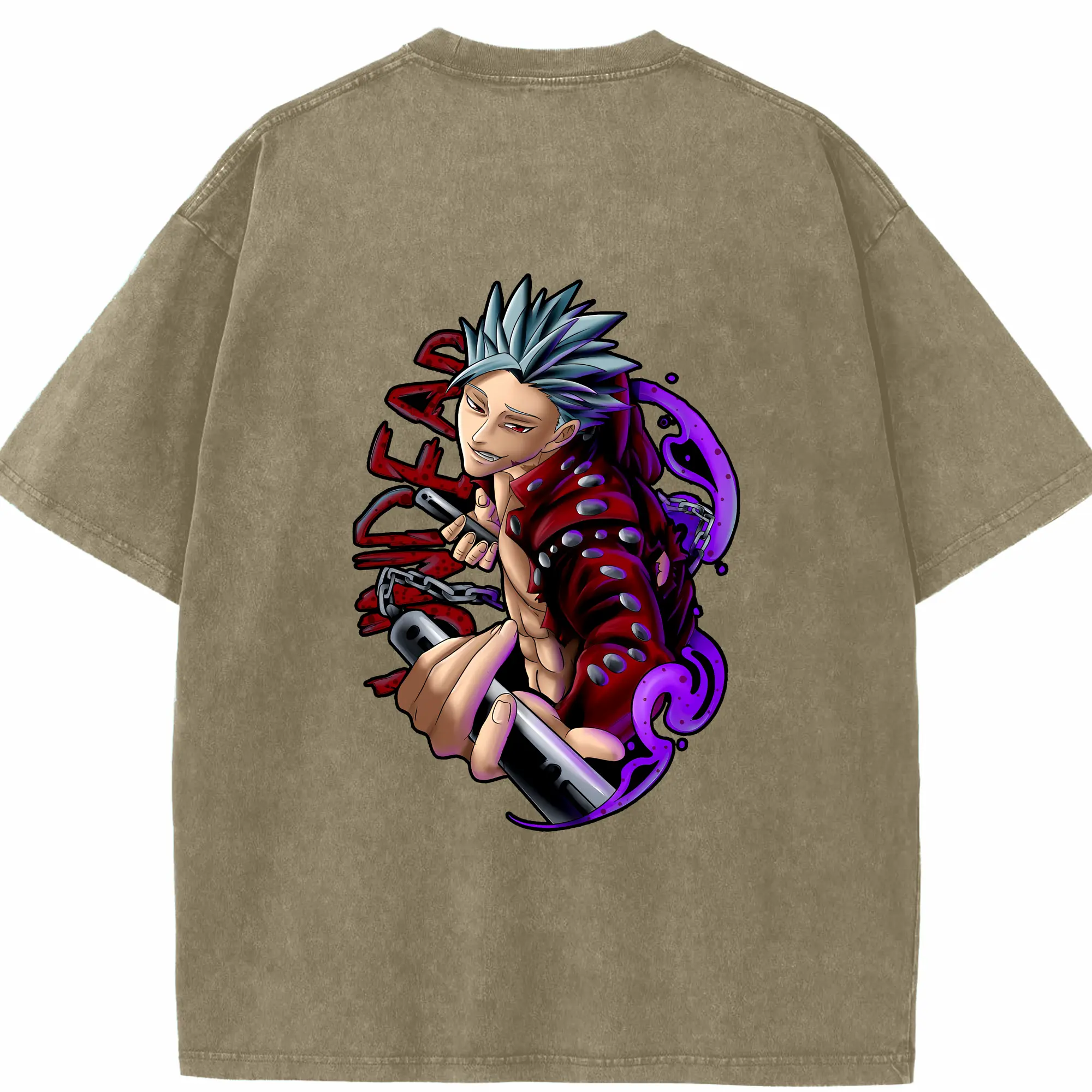 七つの大罪 グッズ バン - 綿100% ヴィンテージ風 半袖Tシャツ ・ フロントプリント ・ 柔らか肌触り ・ 通気性 快適 ・ スポーツ カジュアル 外出用