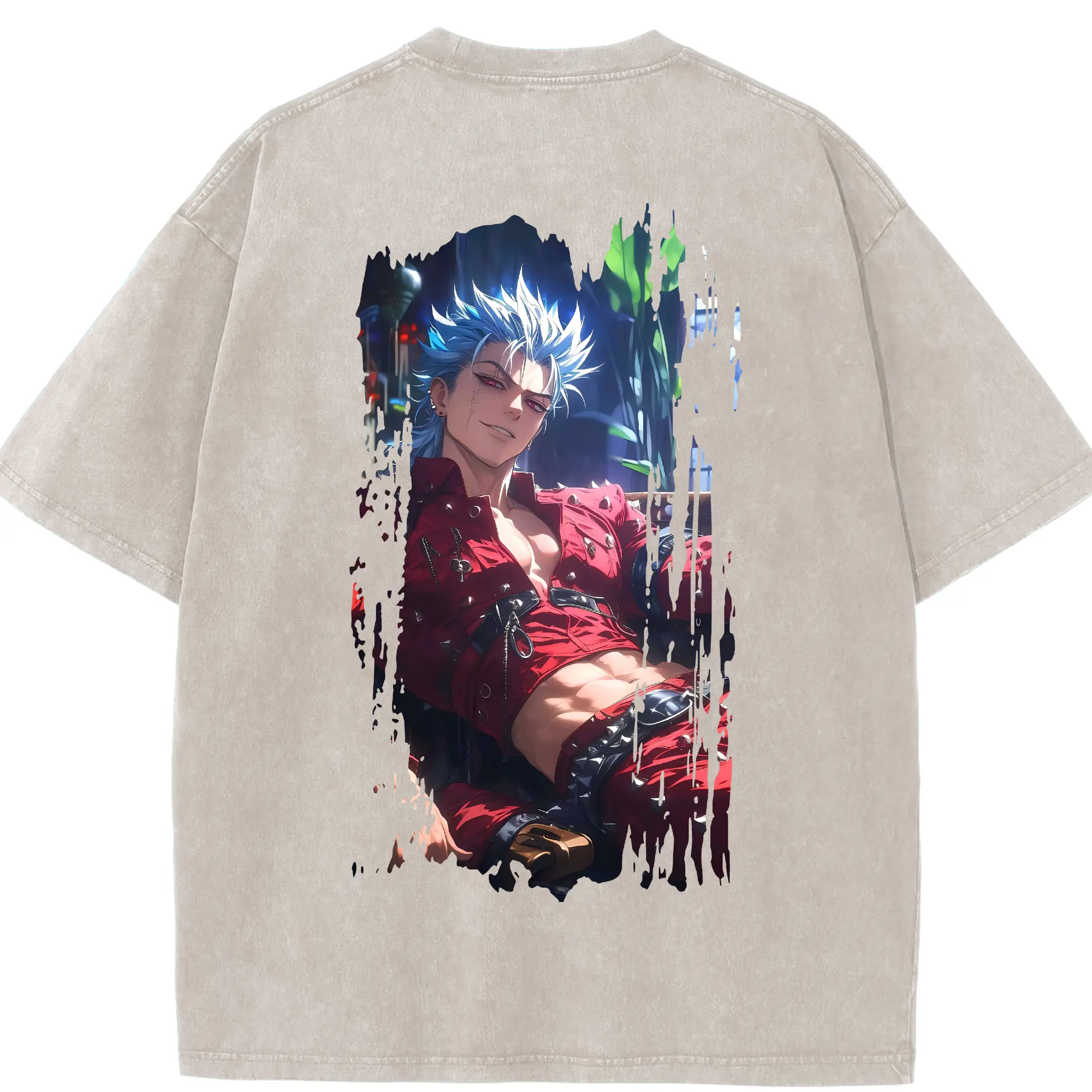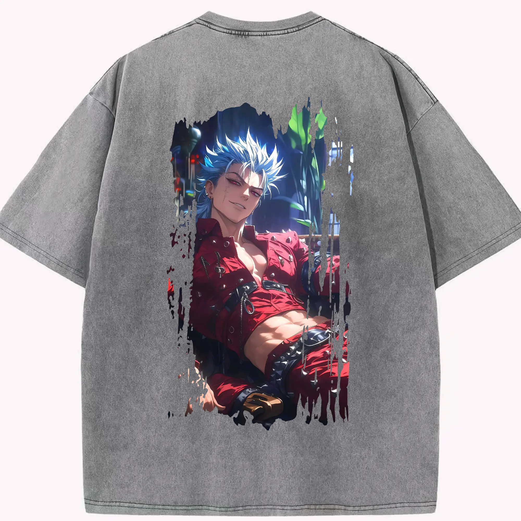 七つの大罪 グッズ バン - 綿100% ヴィンテージ風 半袖Tシャツ ・ フロントプリント ・ 柔らか肌触り ・ 通気性 快適 ・ スポーツ カジュアル 外出用