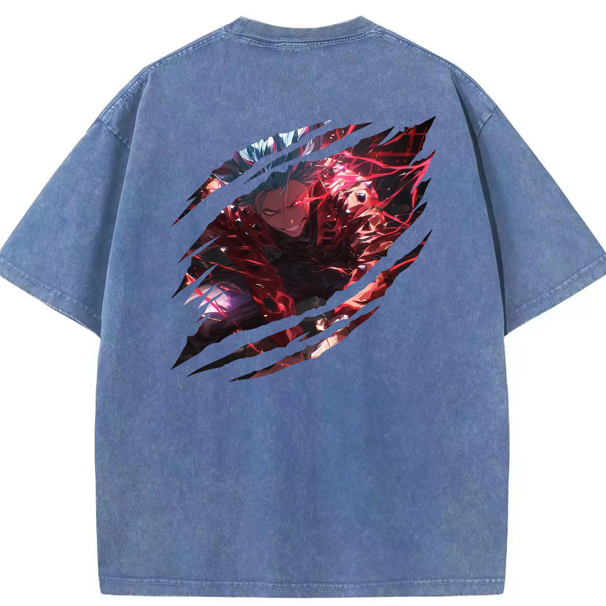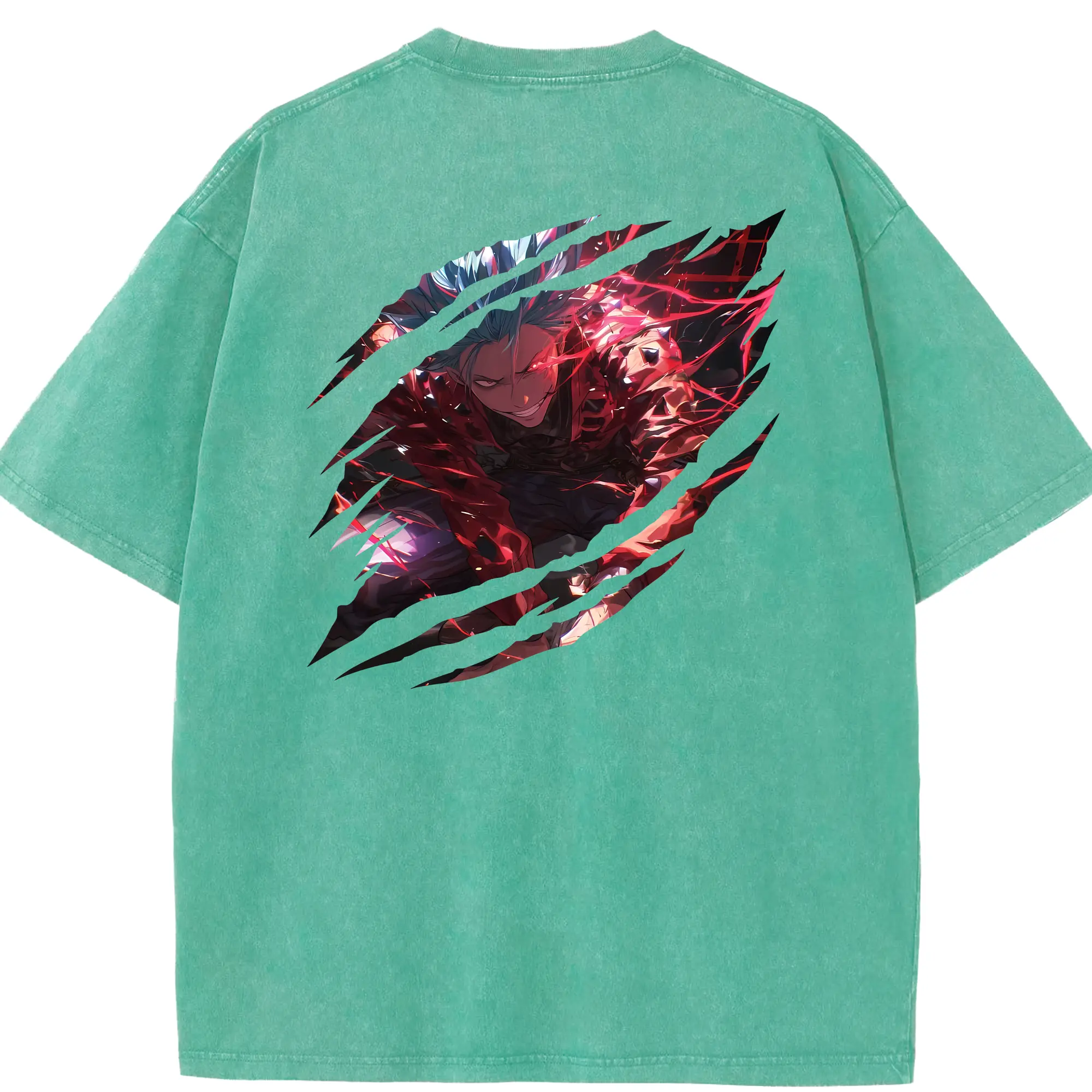 鬼滅の刃 グッズ,冨岡 義勇 - 綿100% ヴィンテージ風 半袖Tシャツ ・ 背面プリント ・ 柔らか肌触り ・ 通気性 快適 ・ スポーツ カジュアル 外出用