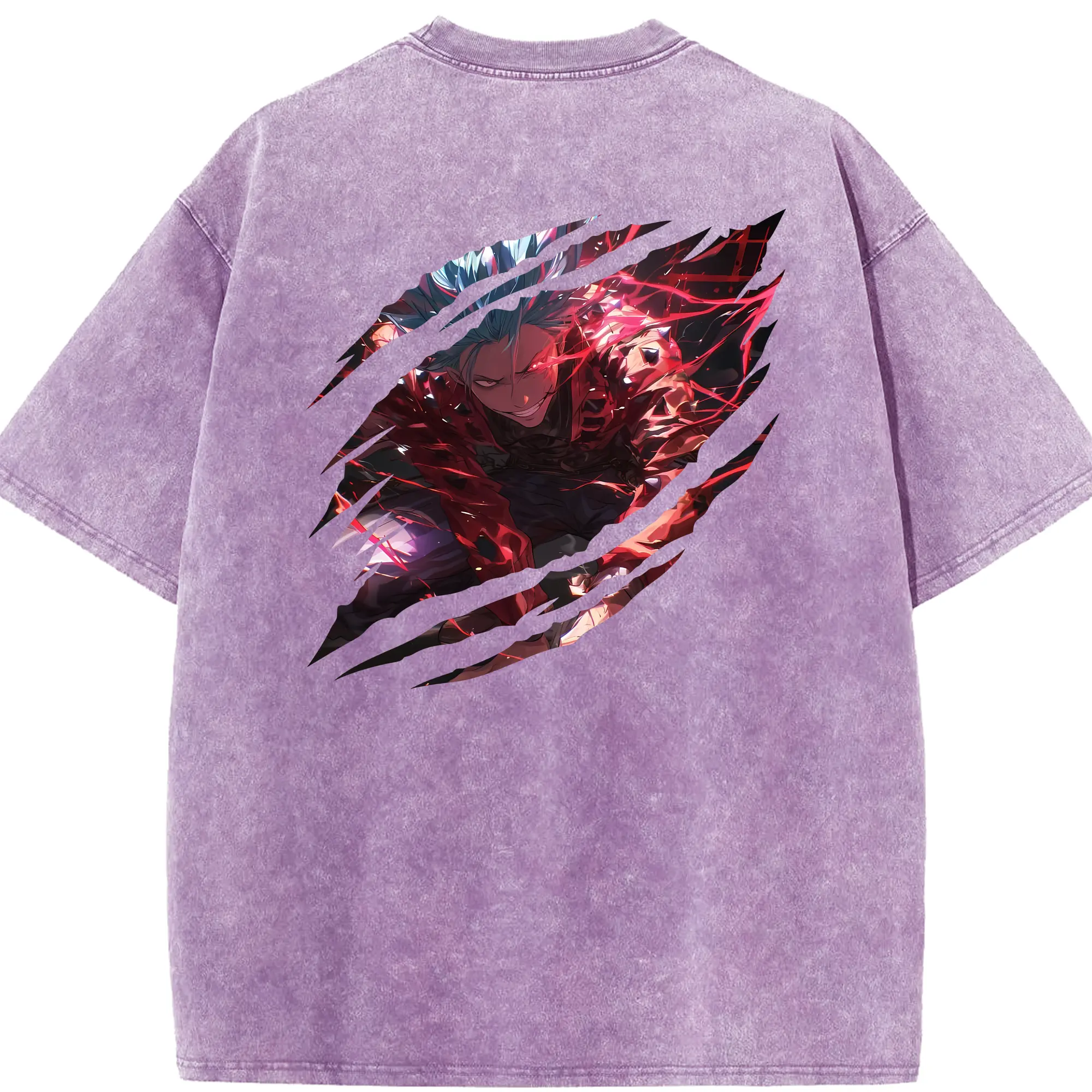 七つの大罪 グッズ バン - 綿100% ヴィンテージ風 半袖Tシャツ ・ フロントプリント ・ 柔らか肌触り ・ 通気性 快適 ・ スポーツ カジュアル 外出用