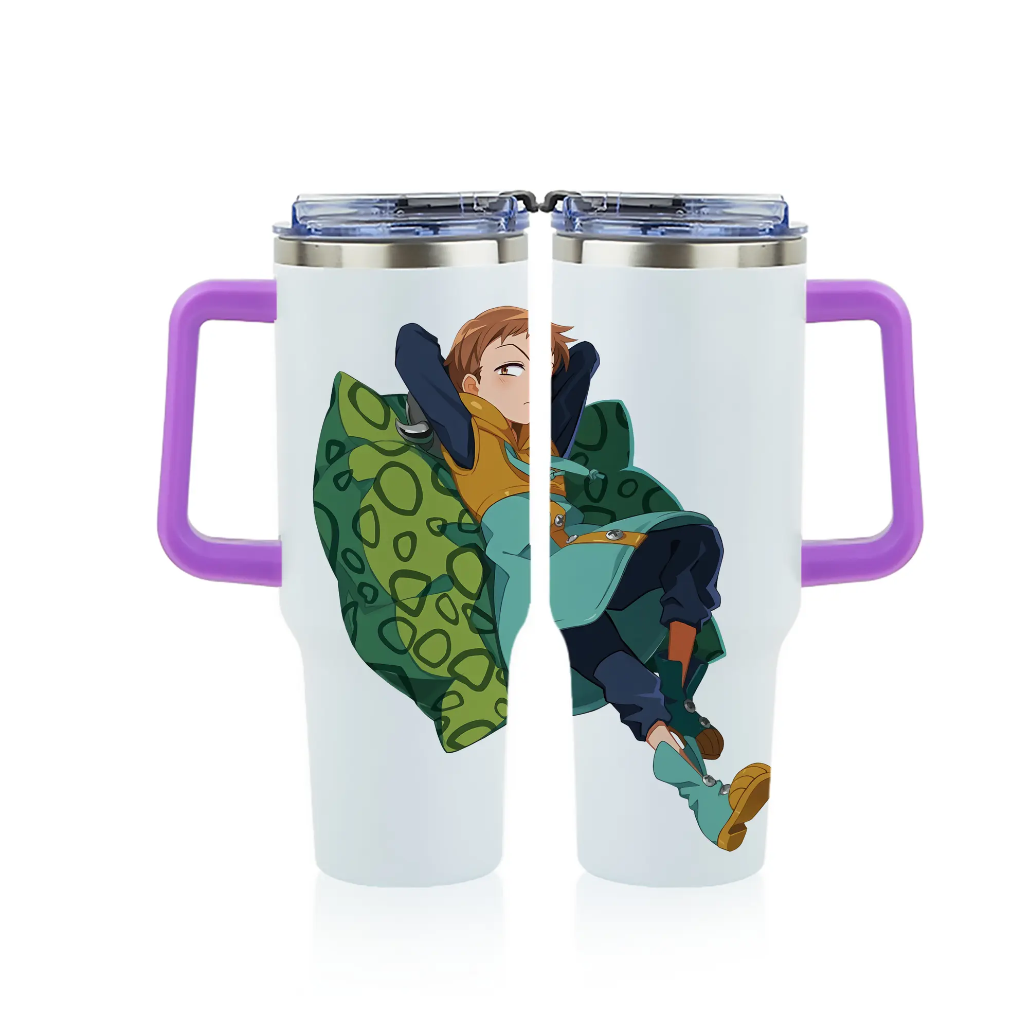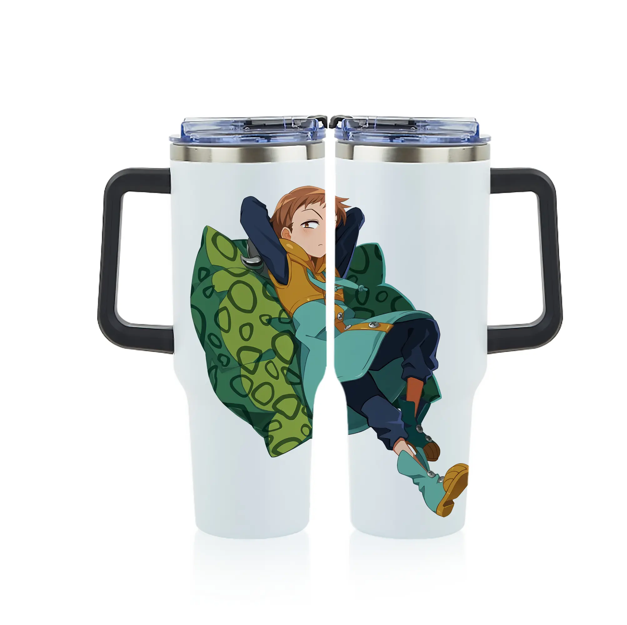 七つの大罪 グッズ キング - 1200mL フルプリント車用タンブラー ・ 304ステンレス 内側 ・ 201ステンレス 外側 ・ 保温 保冷 ・ 通勤 ドライブ アウトドア用