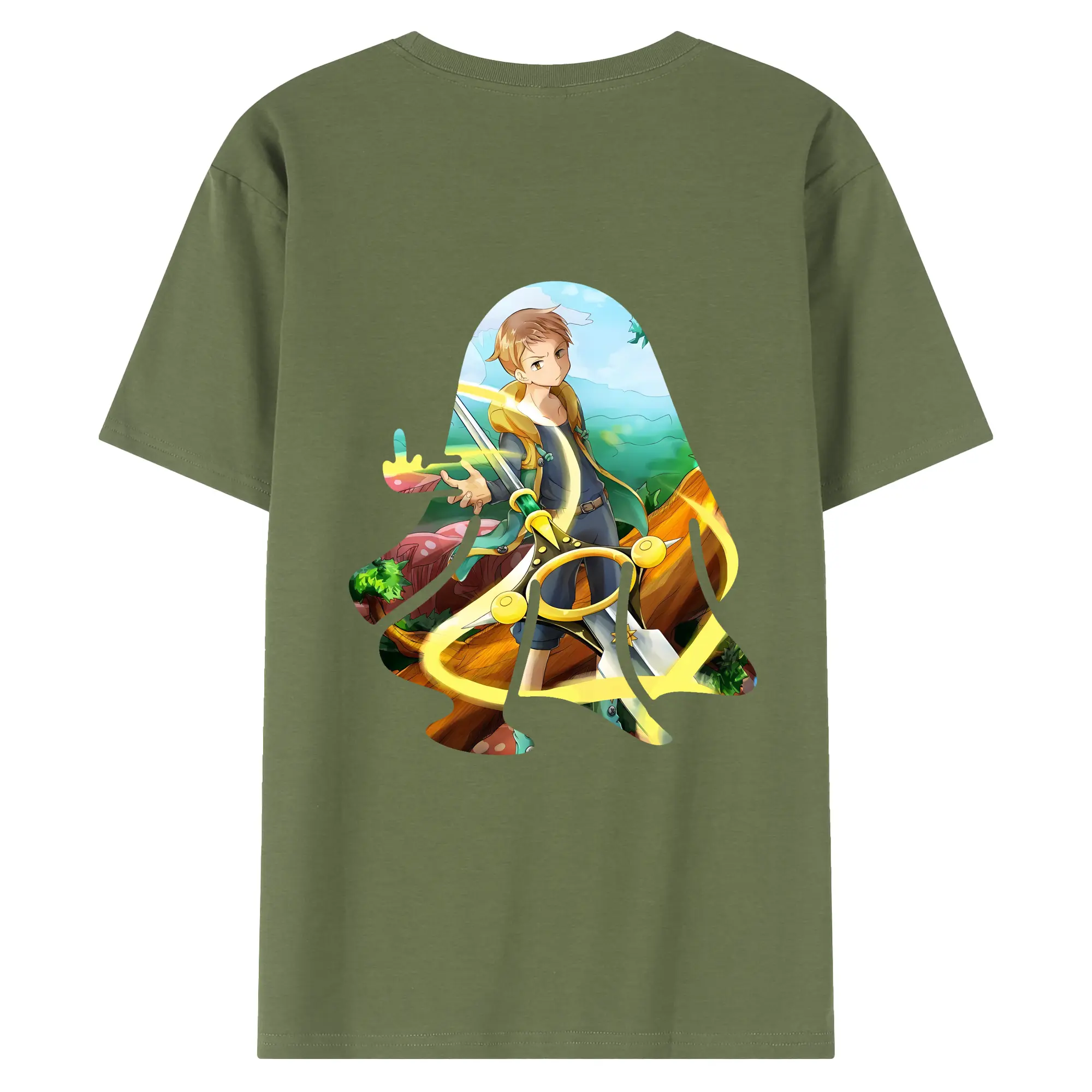 七つの大罪 グッズ キング - 綿100% ヴィンテージ風 半袖Tシャツ ・ 背面プリント ・ 柔らか肌触り ・ 通気性 快適 ・ スポーツ カジュアル 外出用