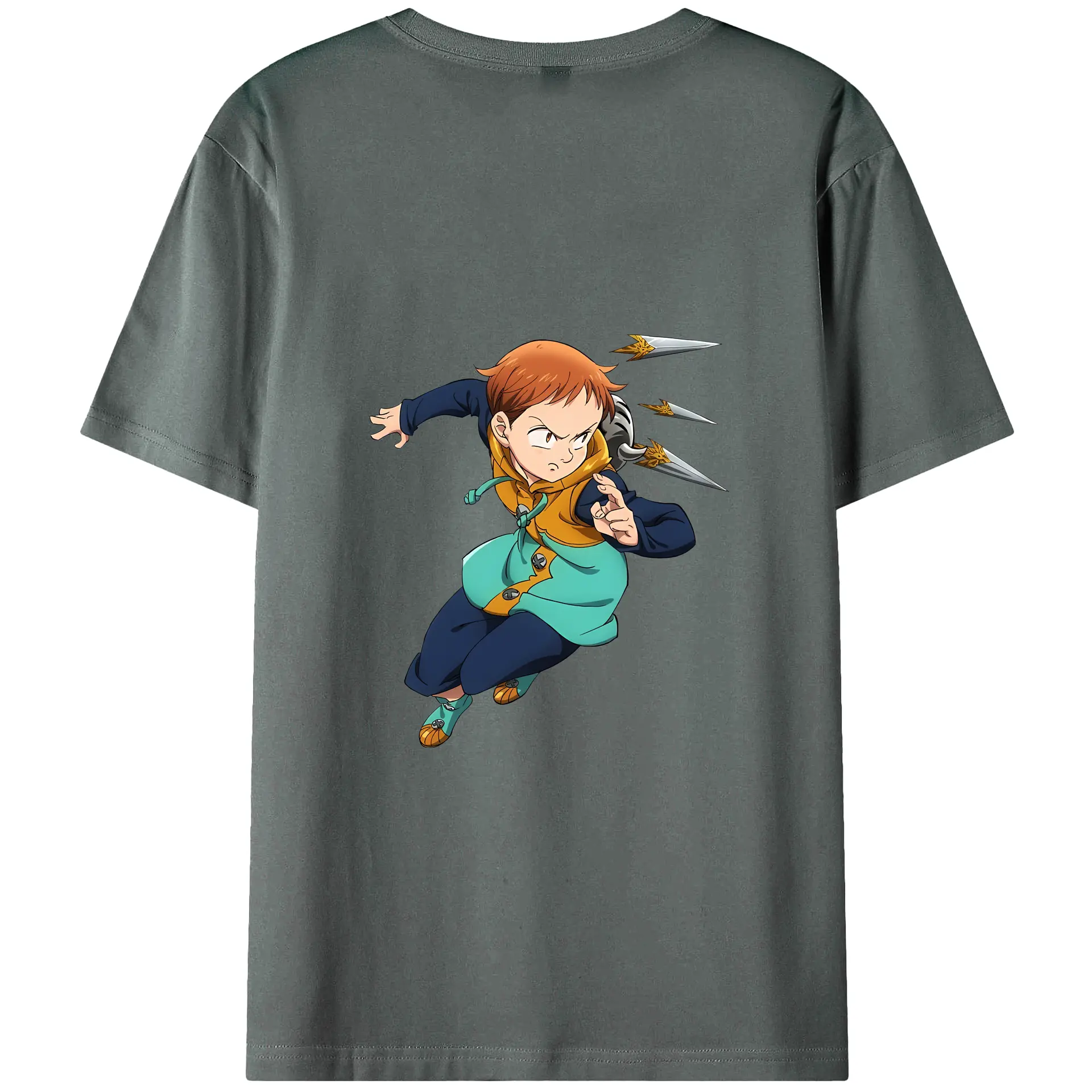 七つの大罪 グッズ キング - 綿100% ヴィンテージ風 半袖Tシャツ ・ 背面プリント ・ 柔らか肌触り ・ 通気性 快適 ・ スポーツ カジュアル 外出用