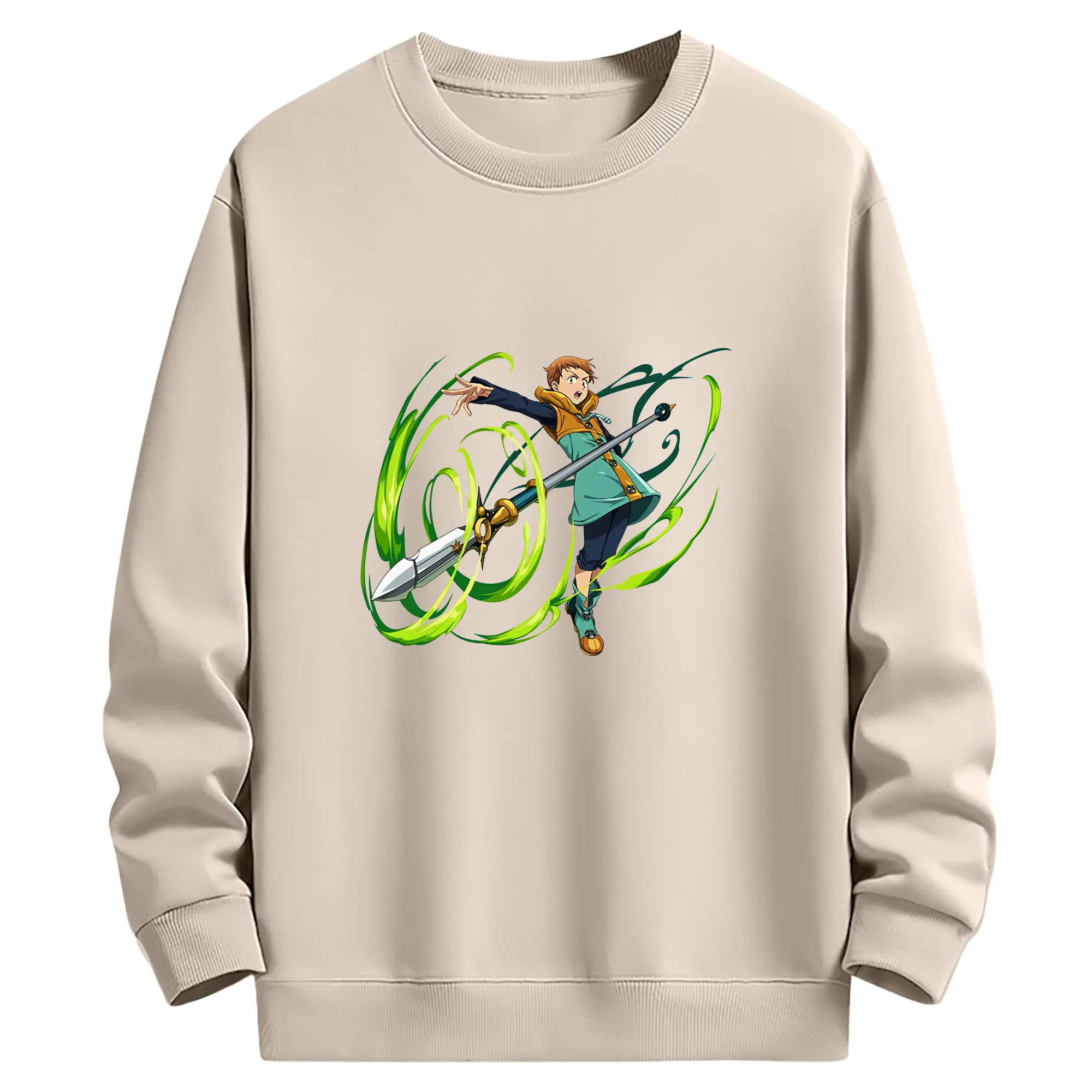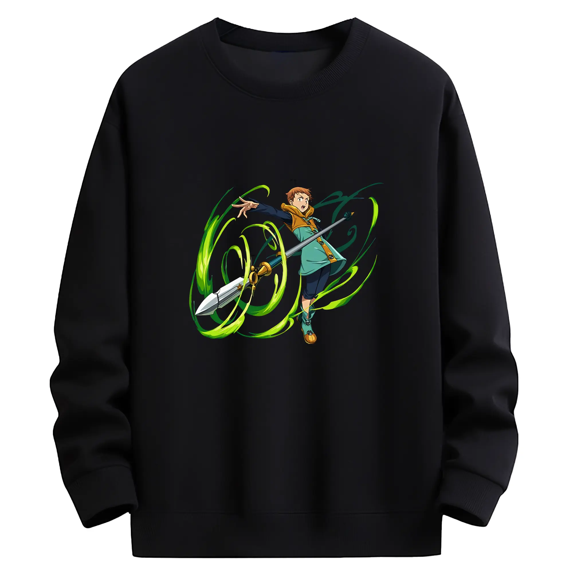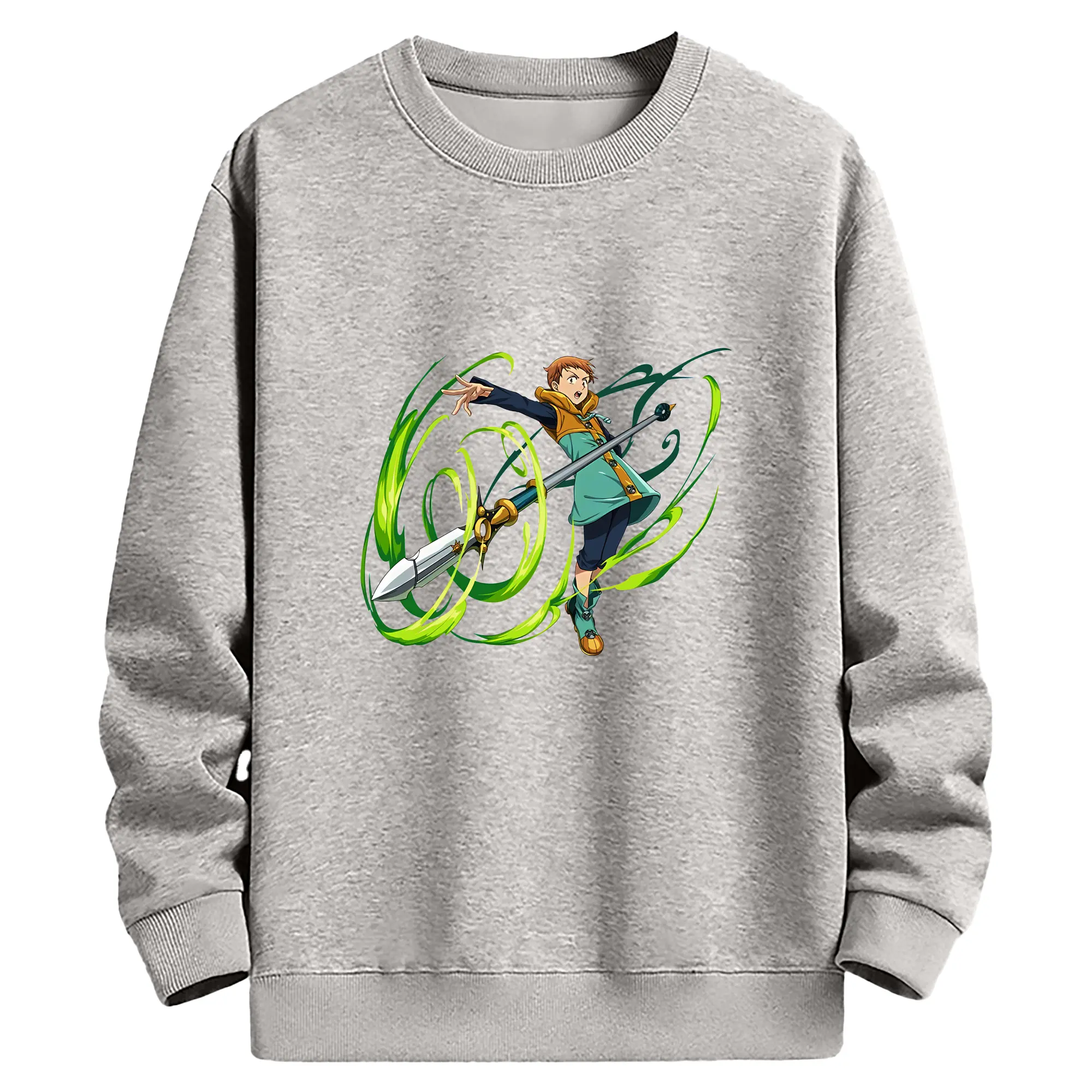 七つの大罪 グッズ キング - 薄手 クルーネック スウェット 裏毛260g · ポリエステル 春秋向け カジュアル 男女兼用 · トレーナー デイリー スポーツ 散歩に最適