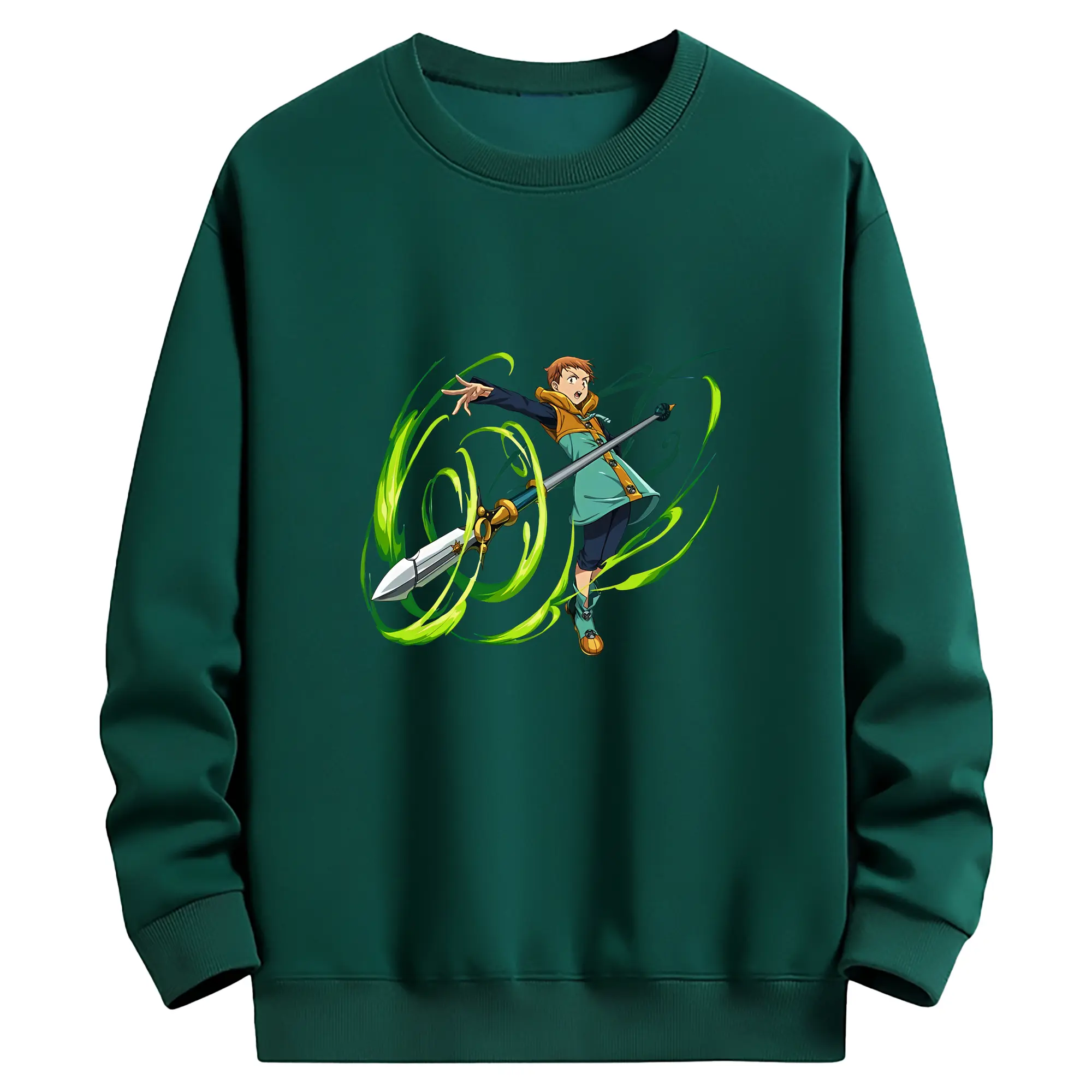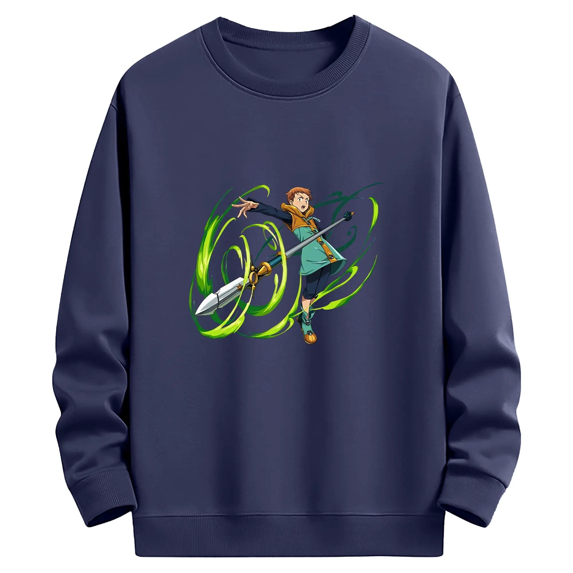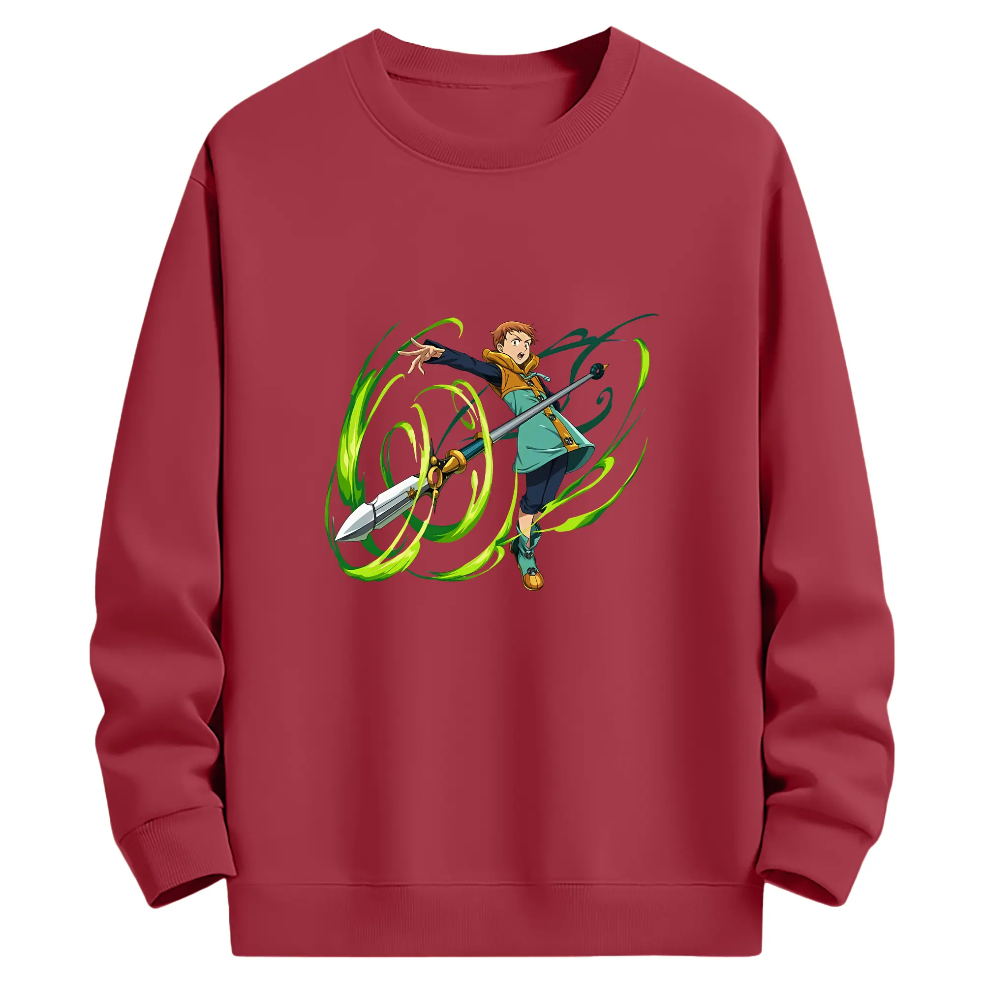 七つの大罪 グッズ キング - 薄手 クルーネック スウェット 裏毛260g · ポリエステル 春秋向け カジュアル 男女兼用 · トレーナー デイリー スポーツ 散歩に最適