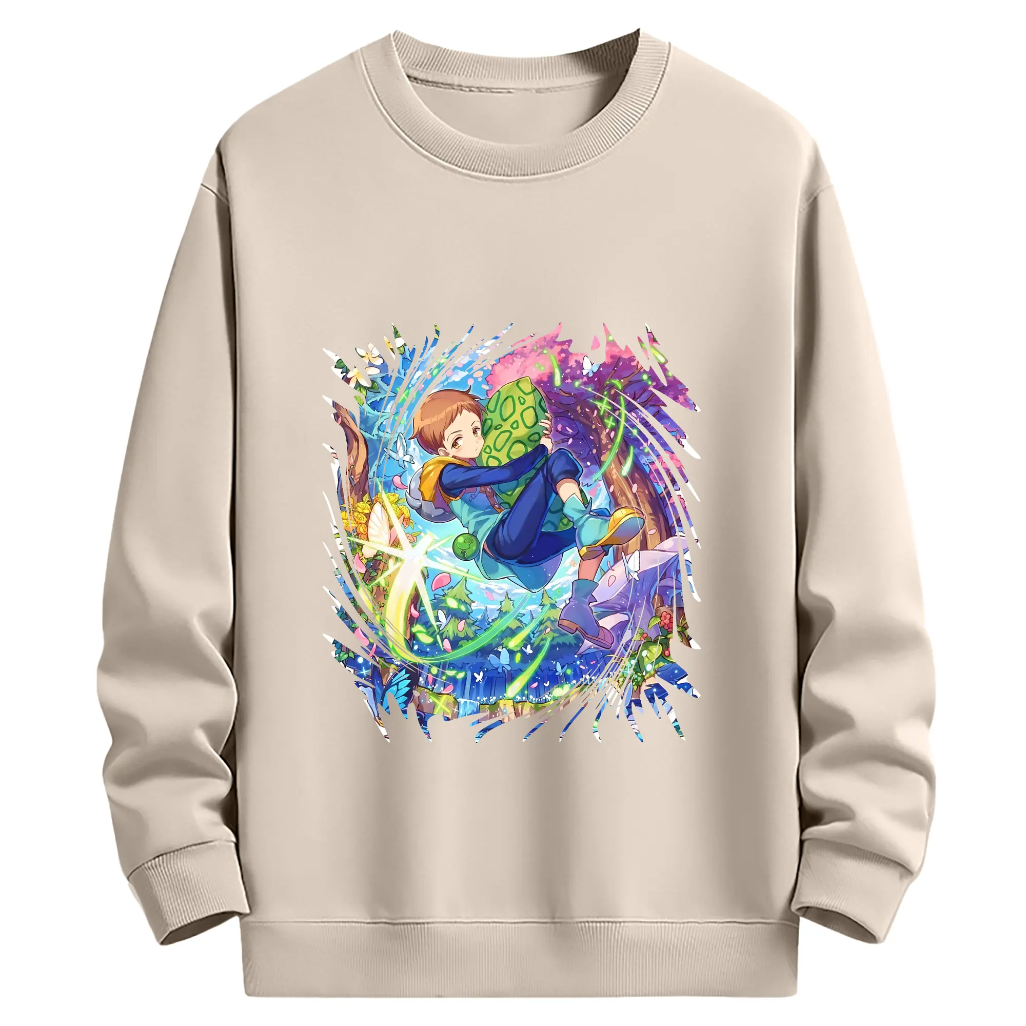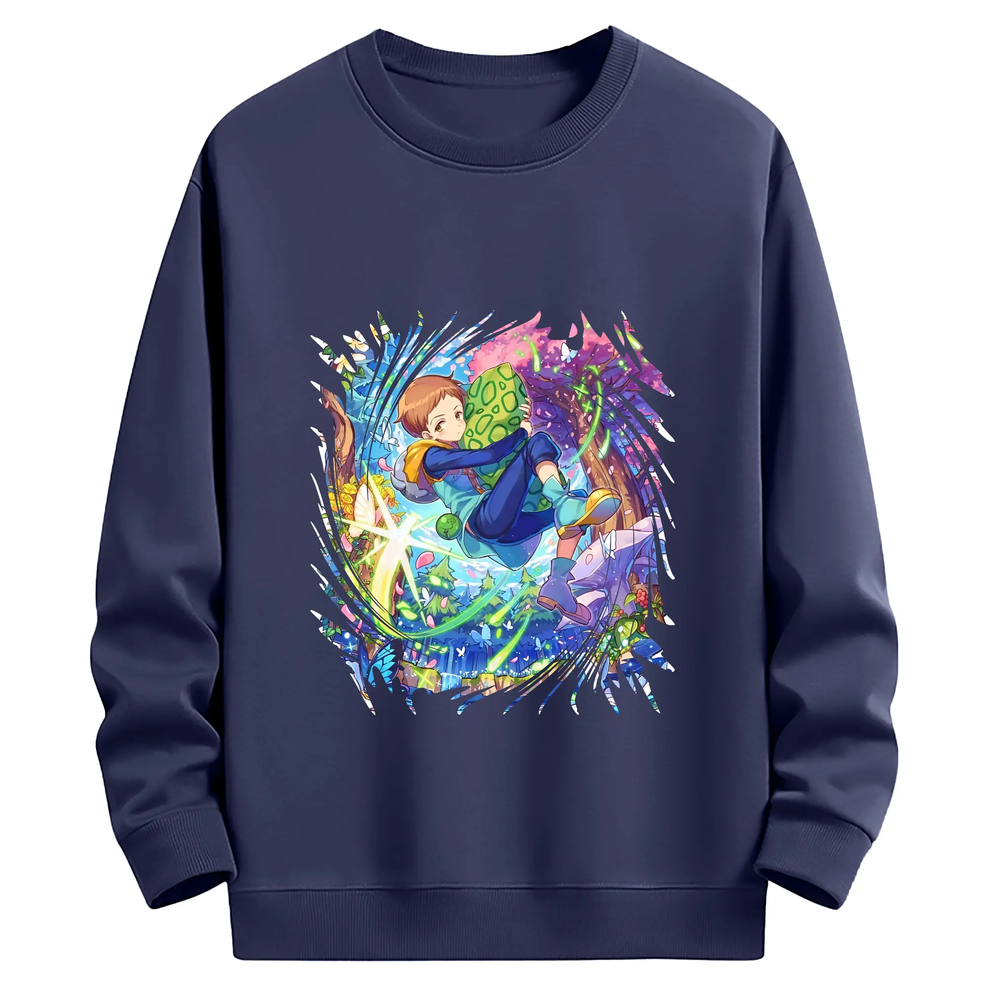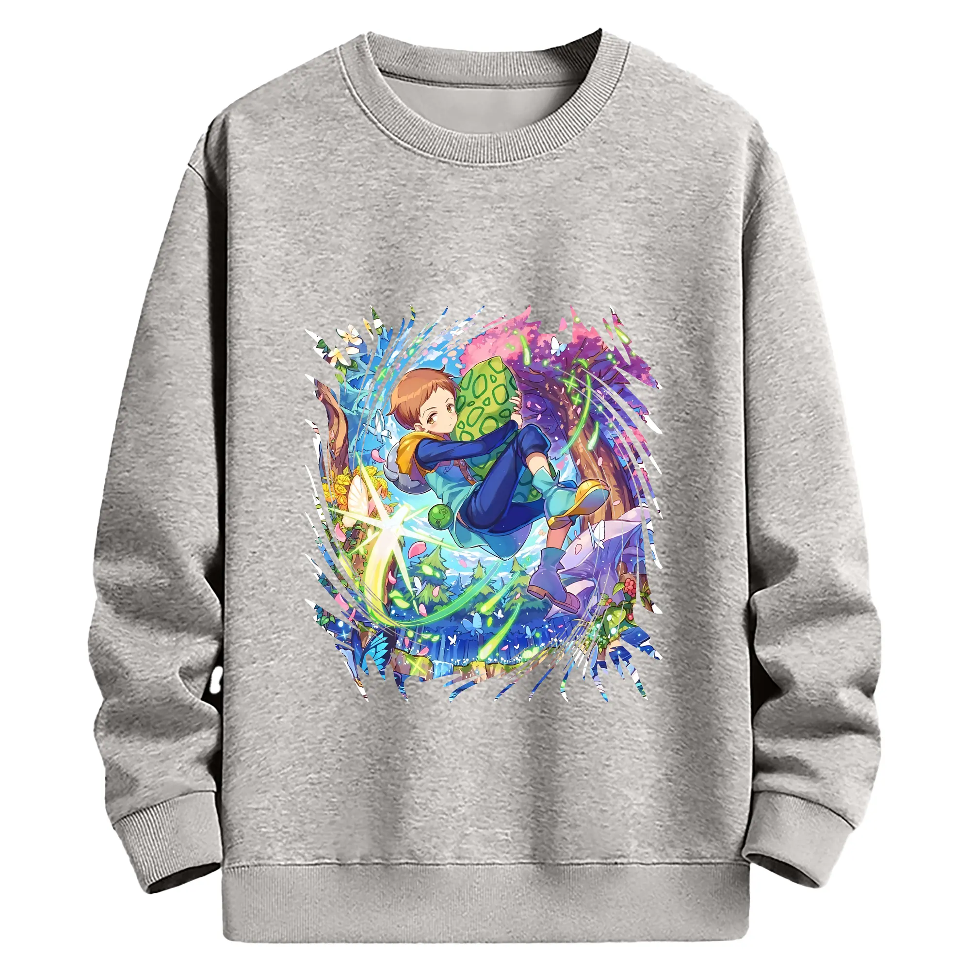七つの大罪 グッズ キング - 薄手 クルーネック スウェット 裏毛260g · ポリエステル 春秋向け カジュアル 男女兼用 · トレーナー デイリー スポーツ 散歩に最適