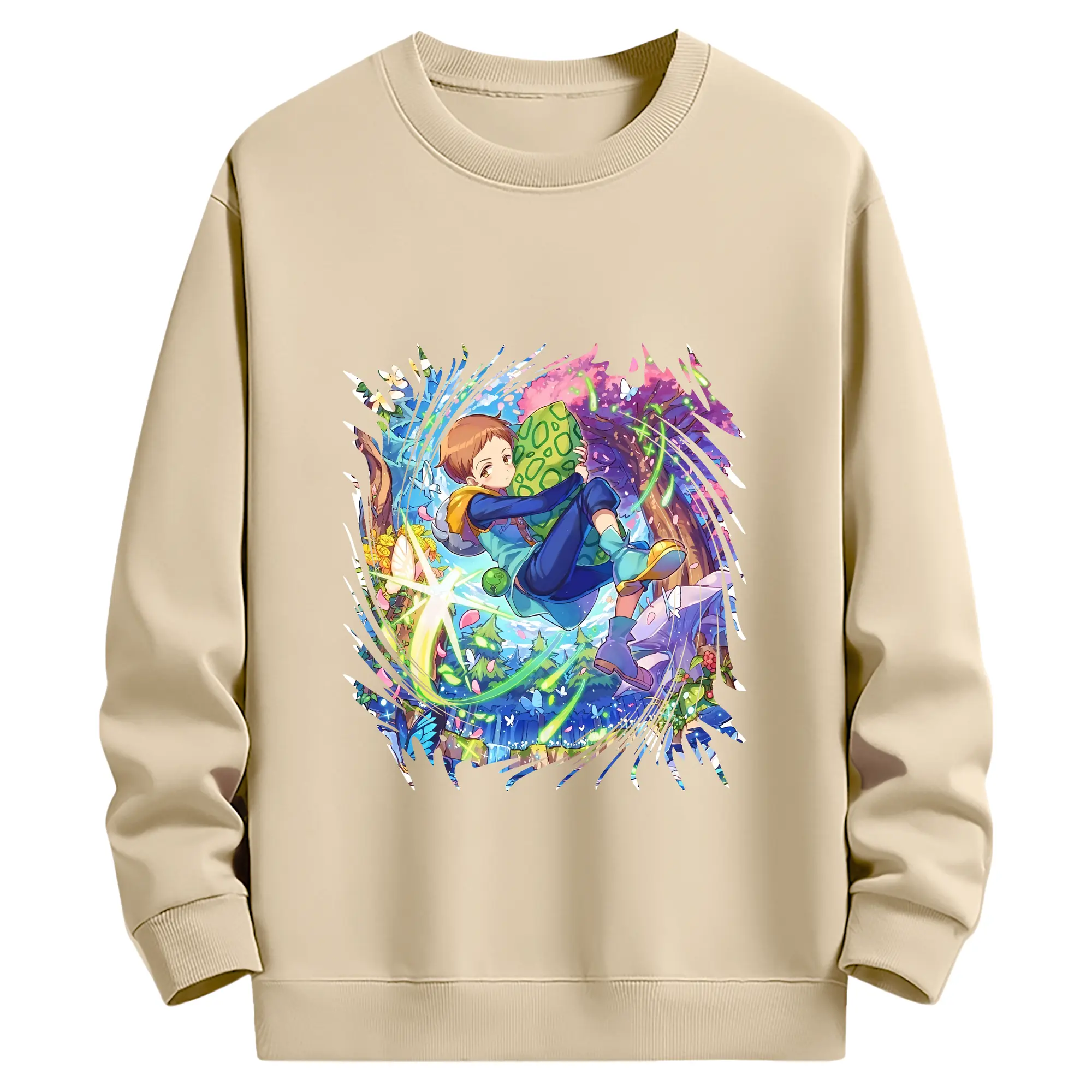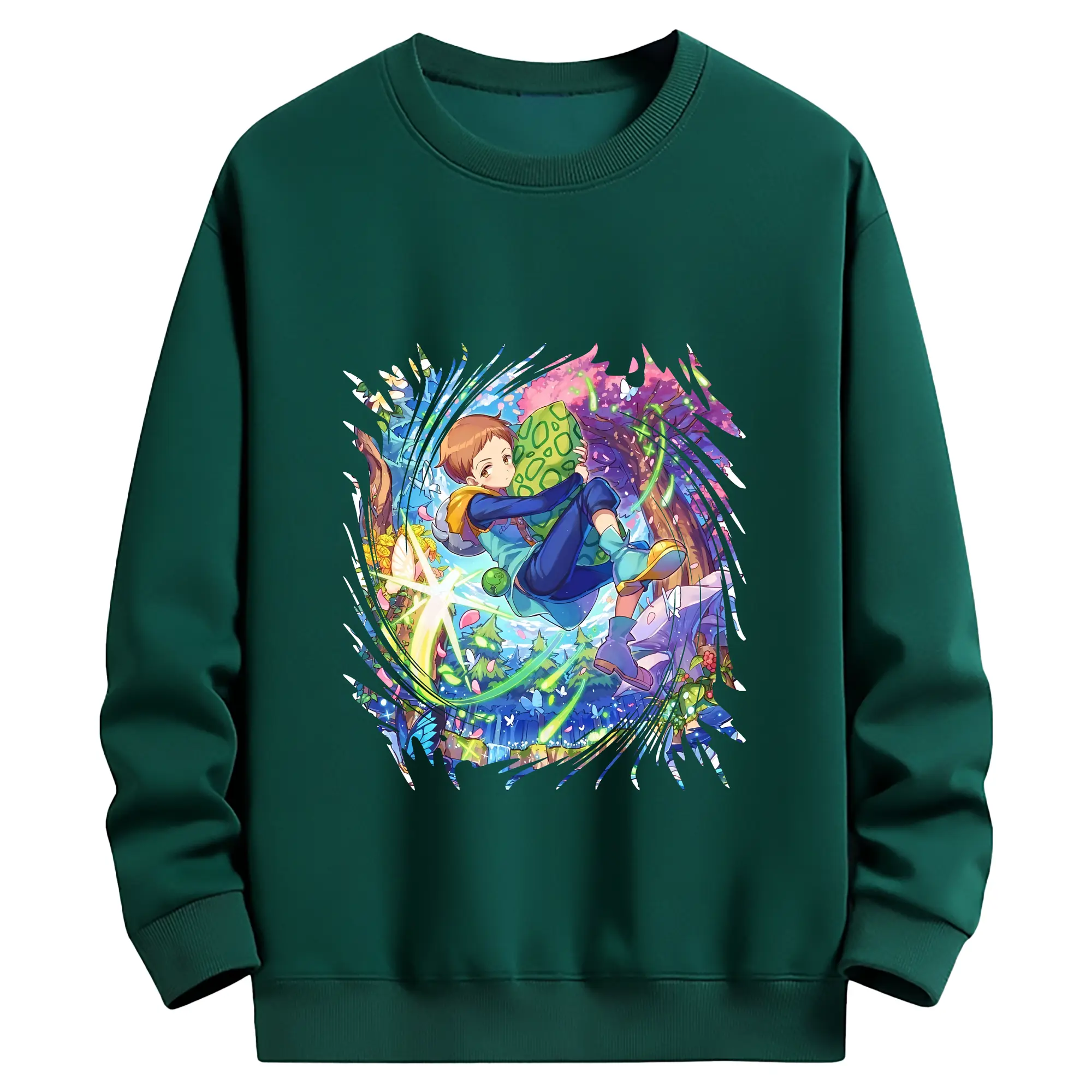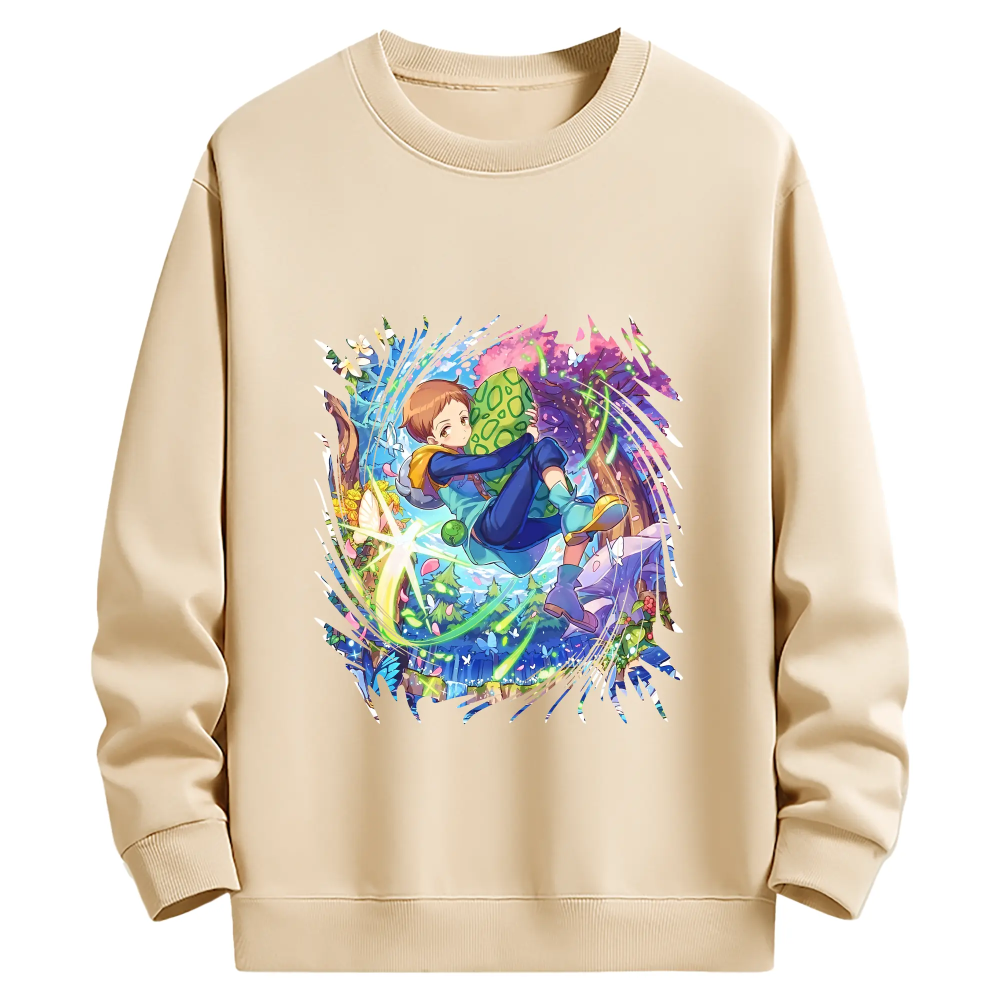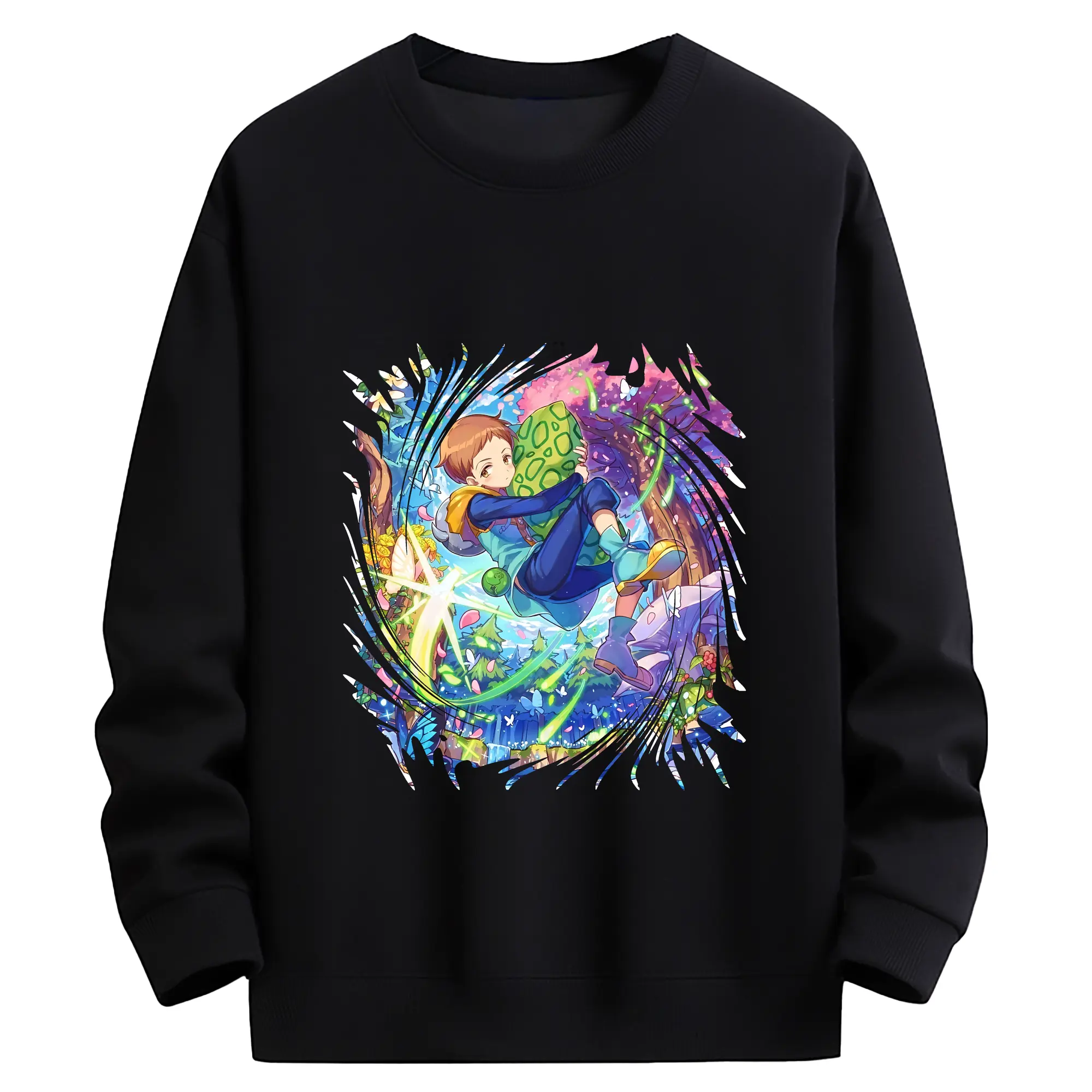 七つの大罪 グッズ キング - 薄手 クルーネック スウェット 裏毛260g · ポリエステル 春秋向け カジュアル 男女兼用 · トレーナー デイリー スポーツ 散歩に最適