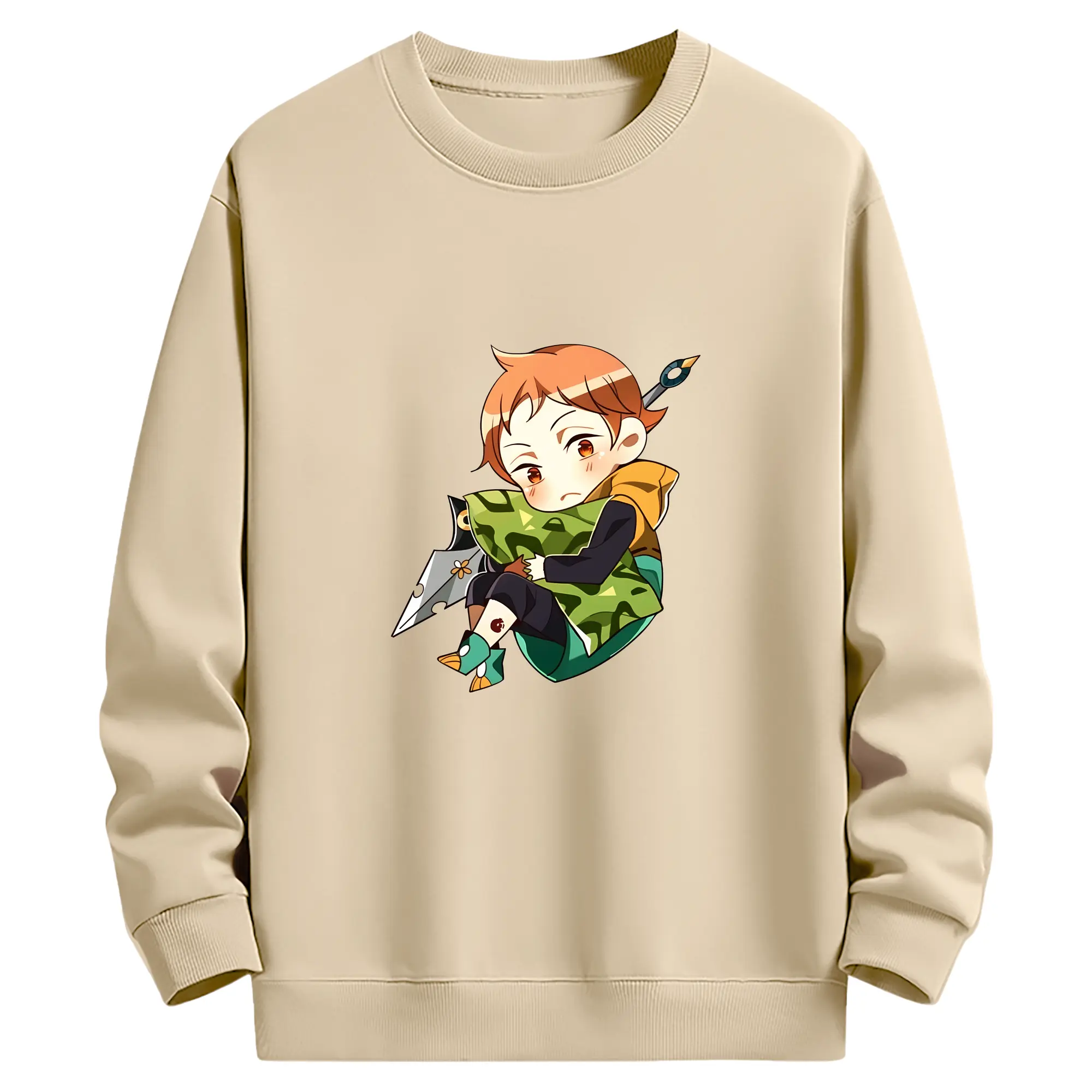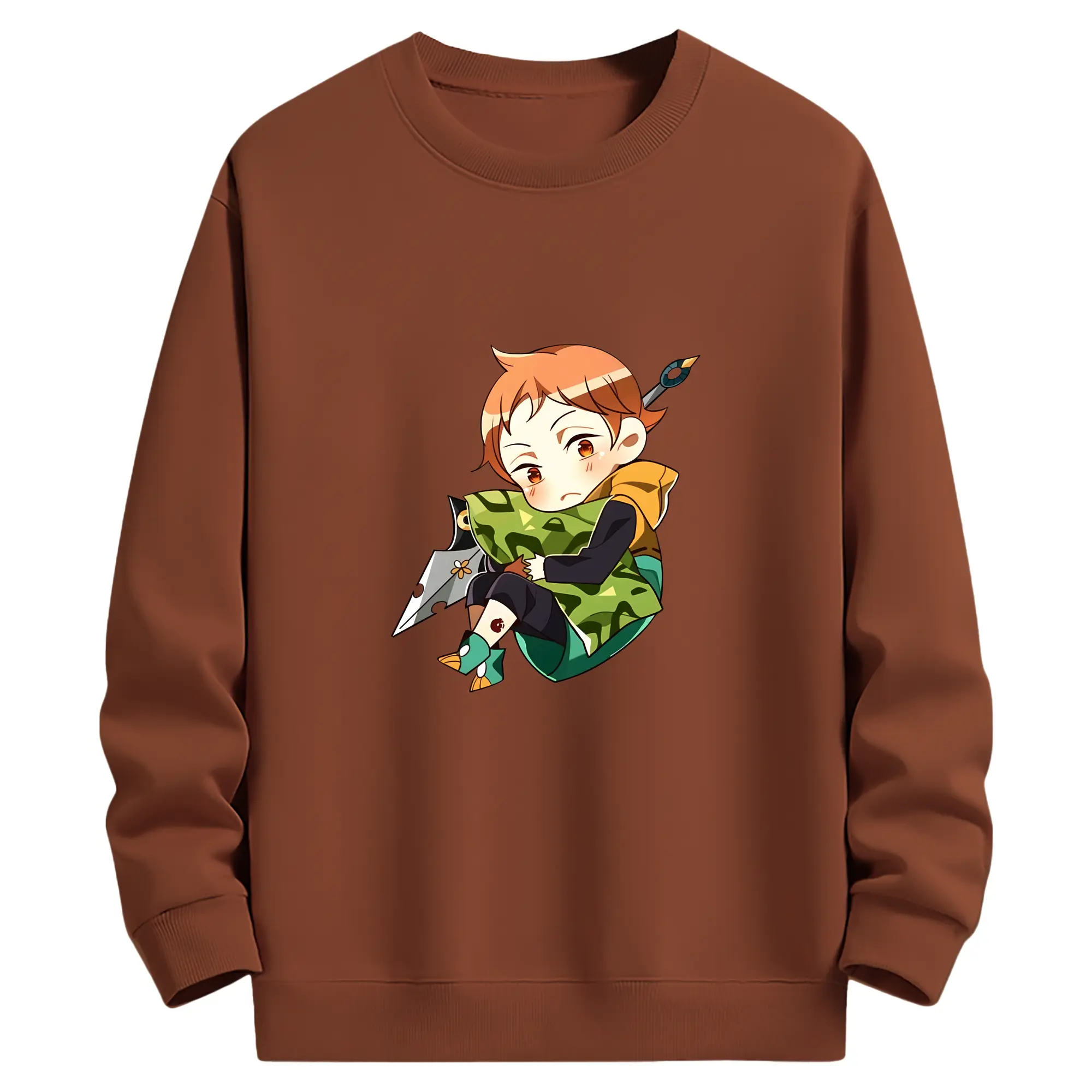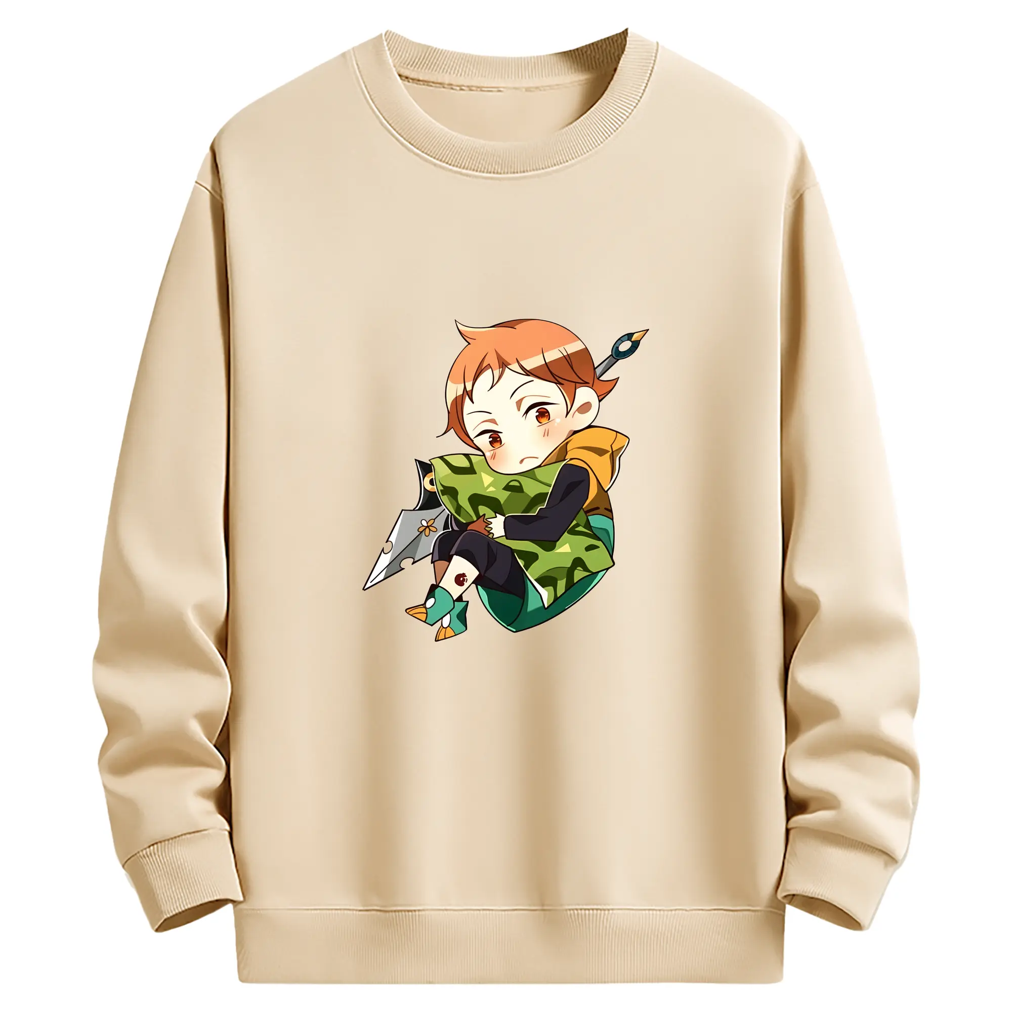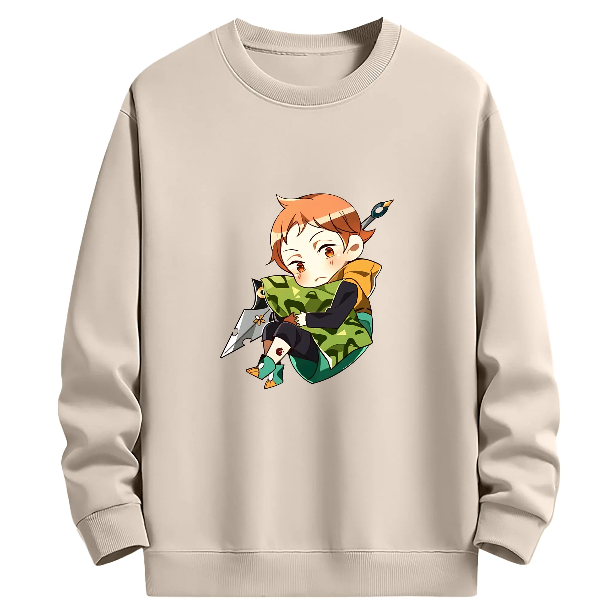 七つの大罪 グッズ キング - 薄手 クルーネック スウェット 裏毛260g · ポリエステル 春秋向け カジュアル 男女兼用 · トレーナー デイリー スポーツ 散歩に最適