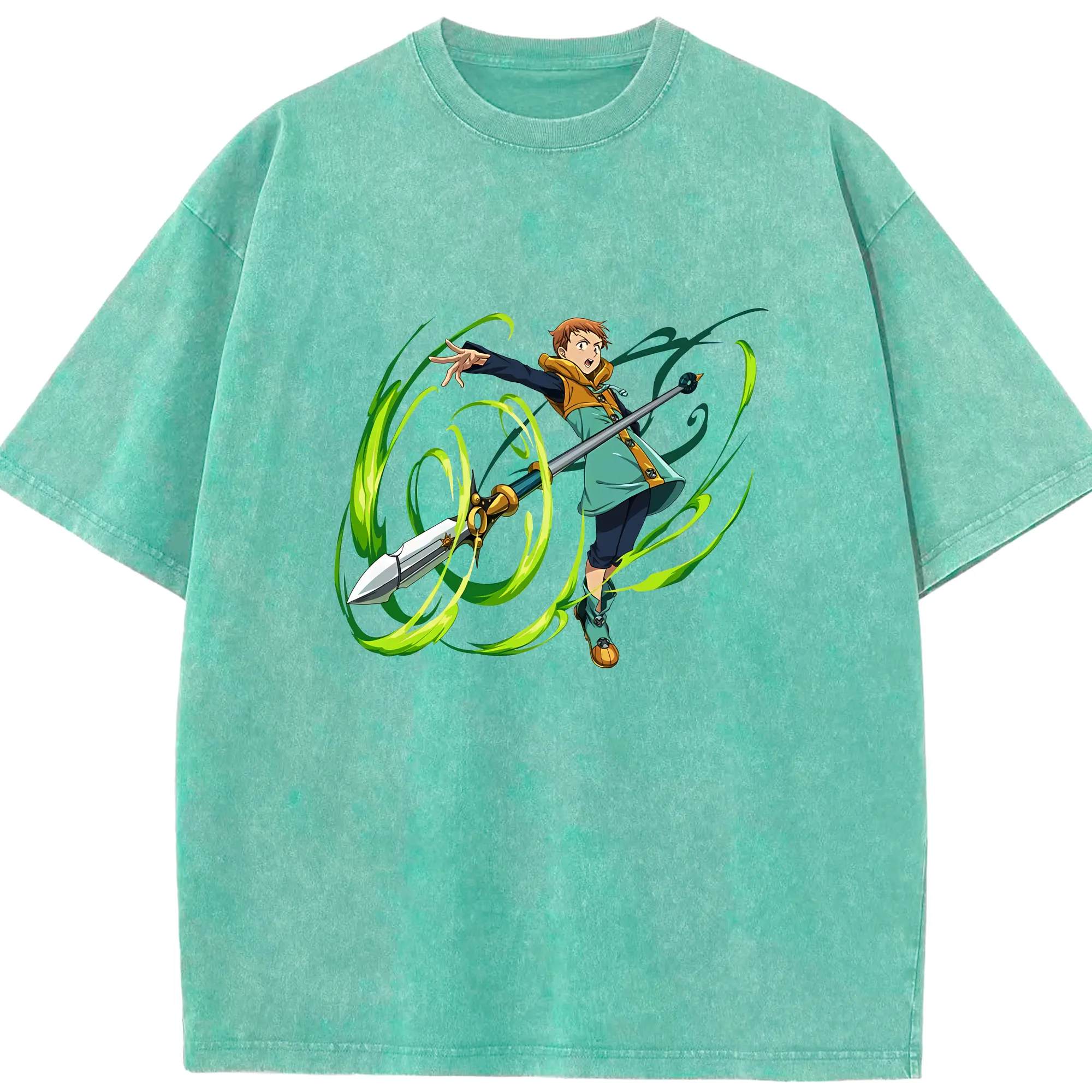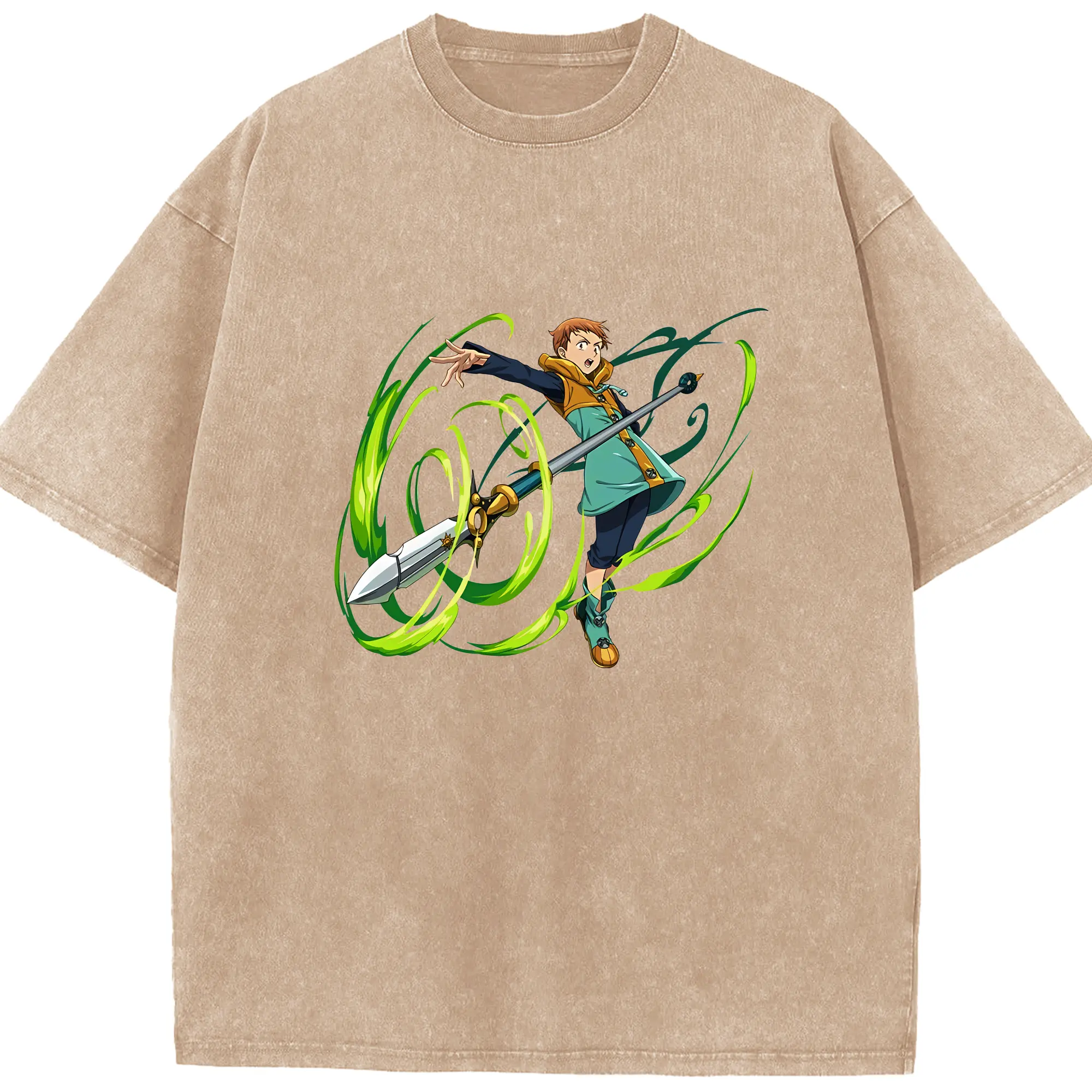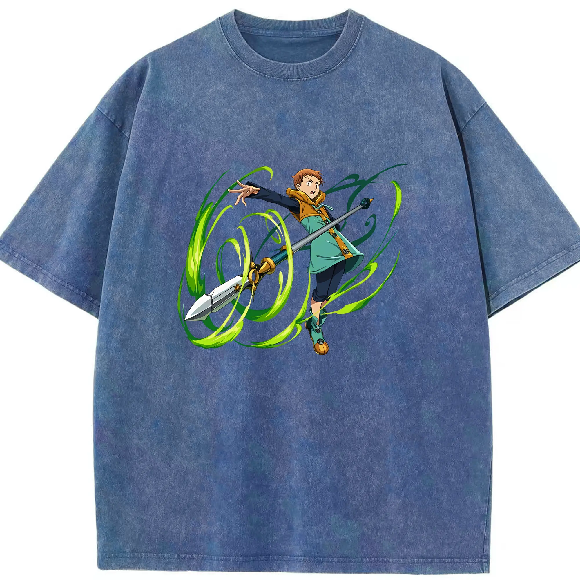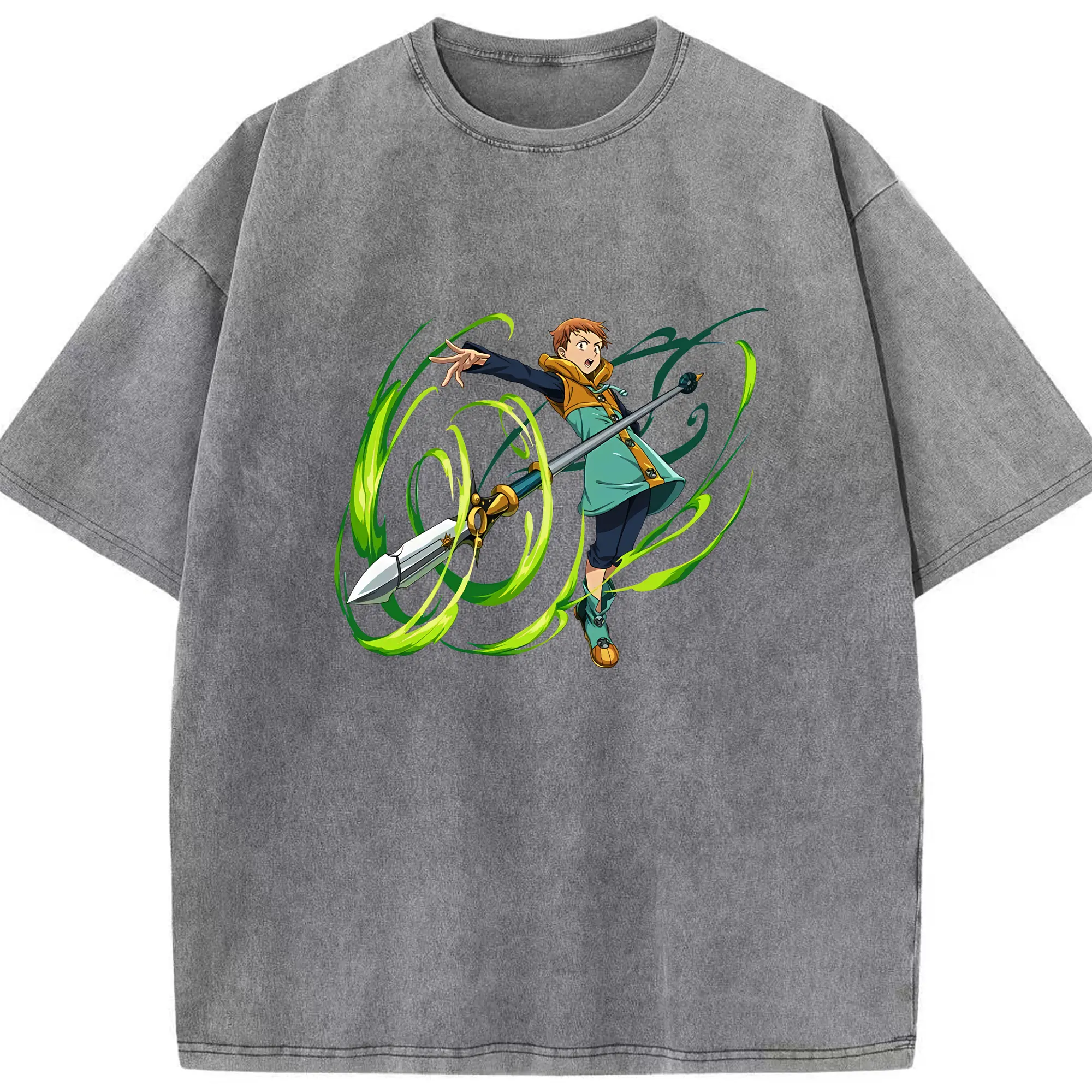 七つの大罪 グッズ キング - 綿100% ヴィンテージ風 半袖Tシャツ ・ 背面プリント ・ 柔らか肌触り ・ 通気性 快適 ・ スポーツ カジュアル 外出用