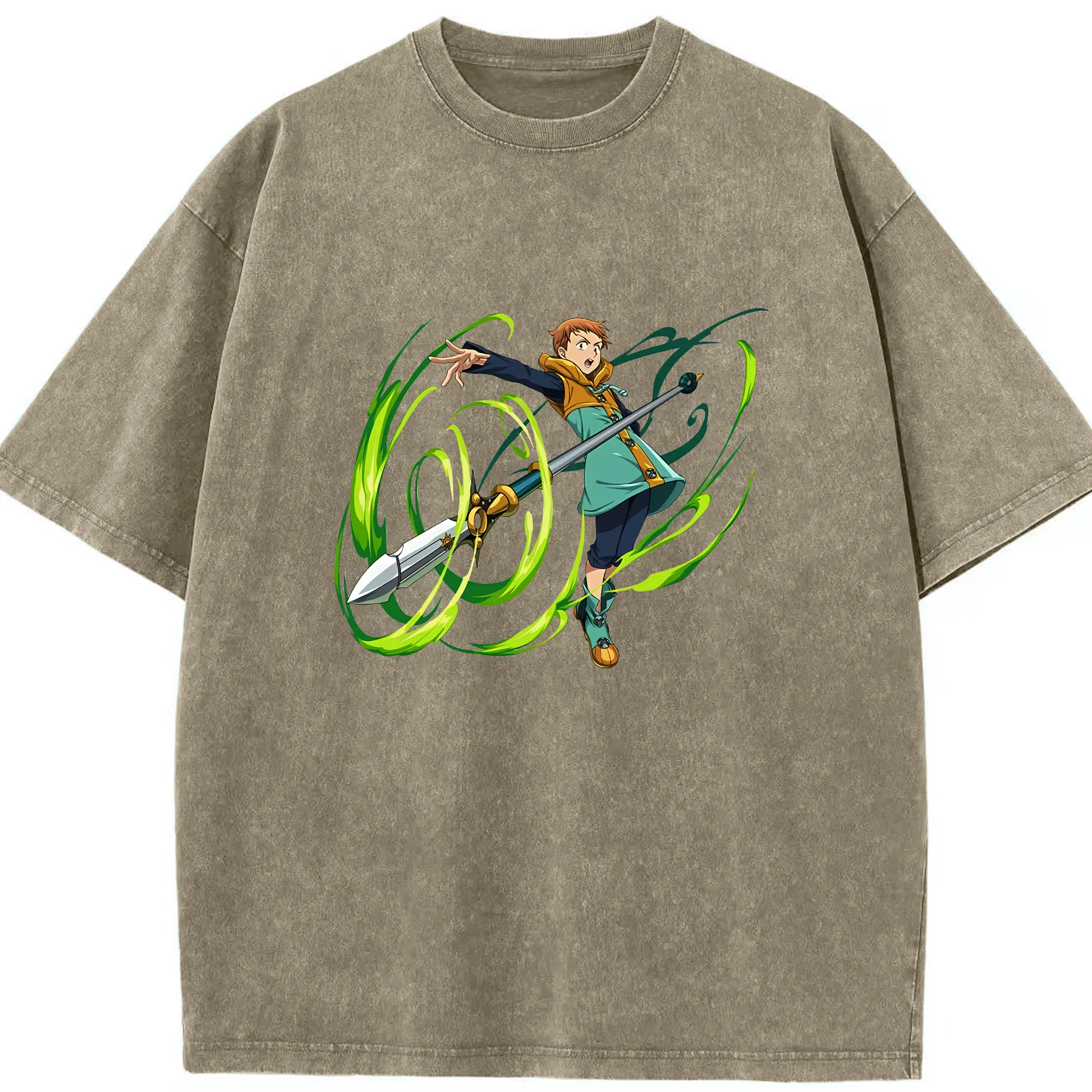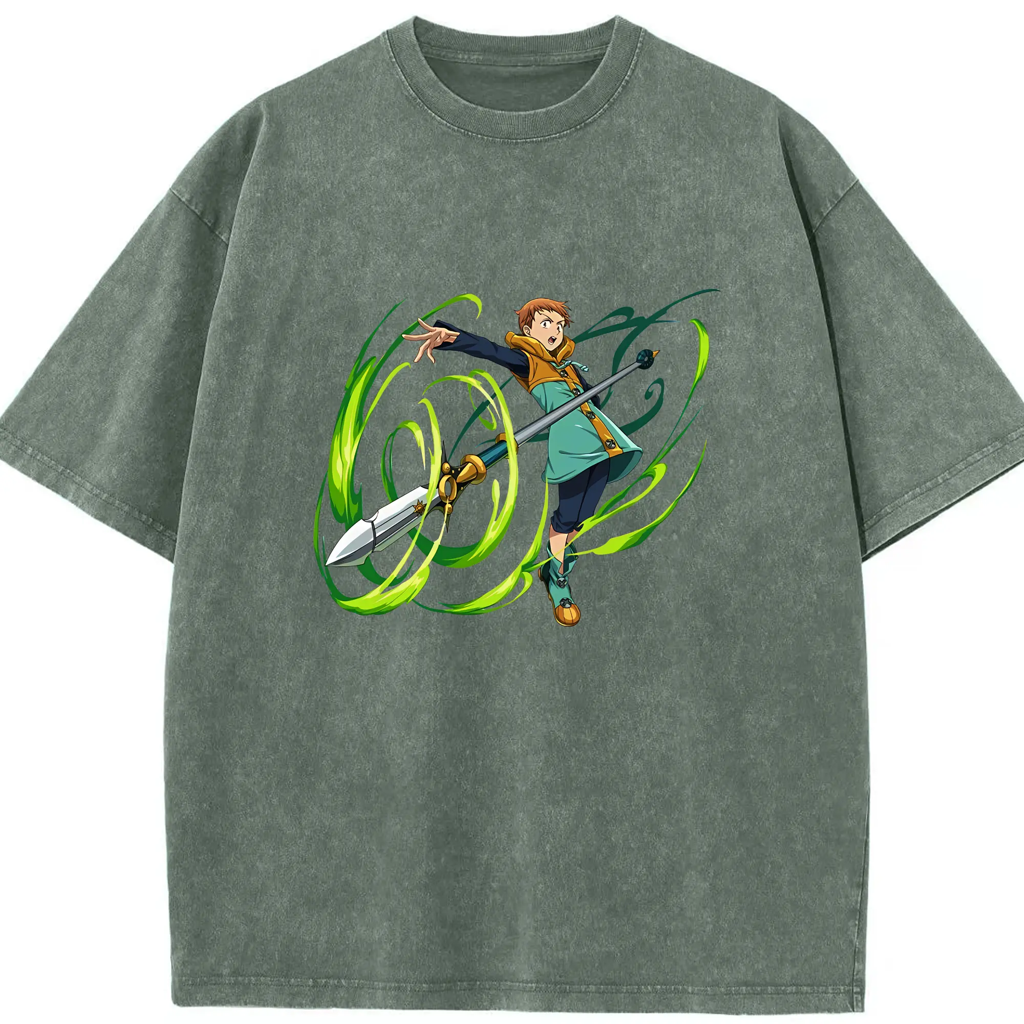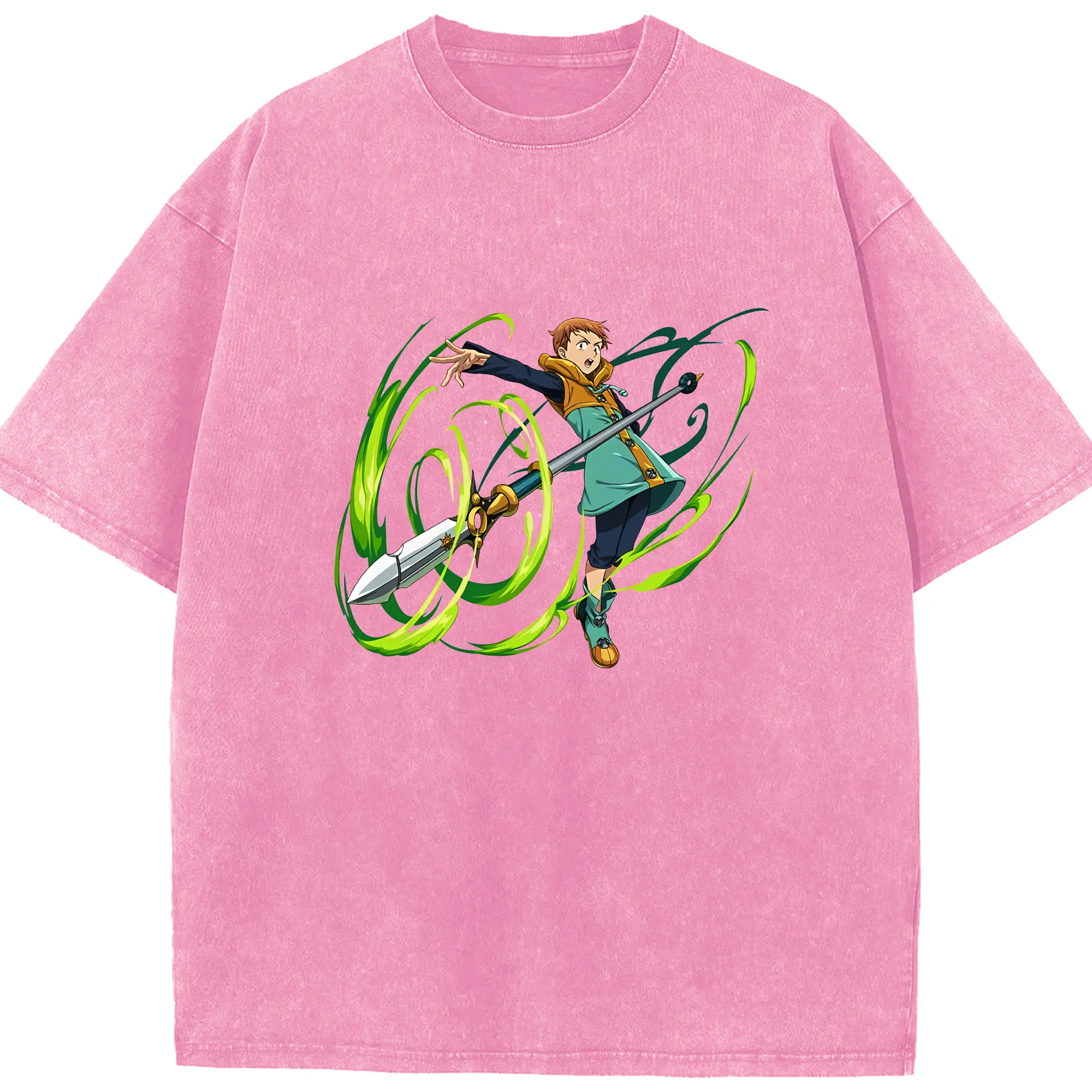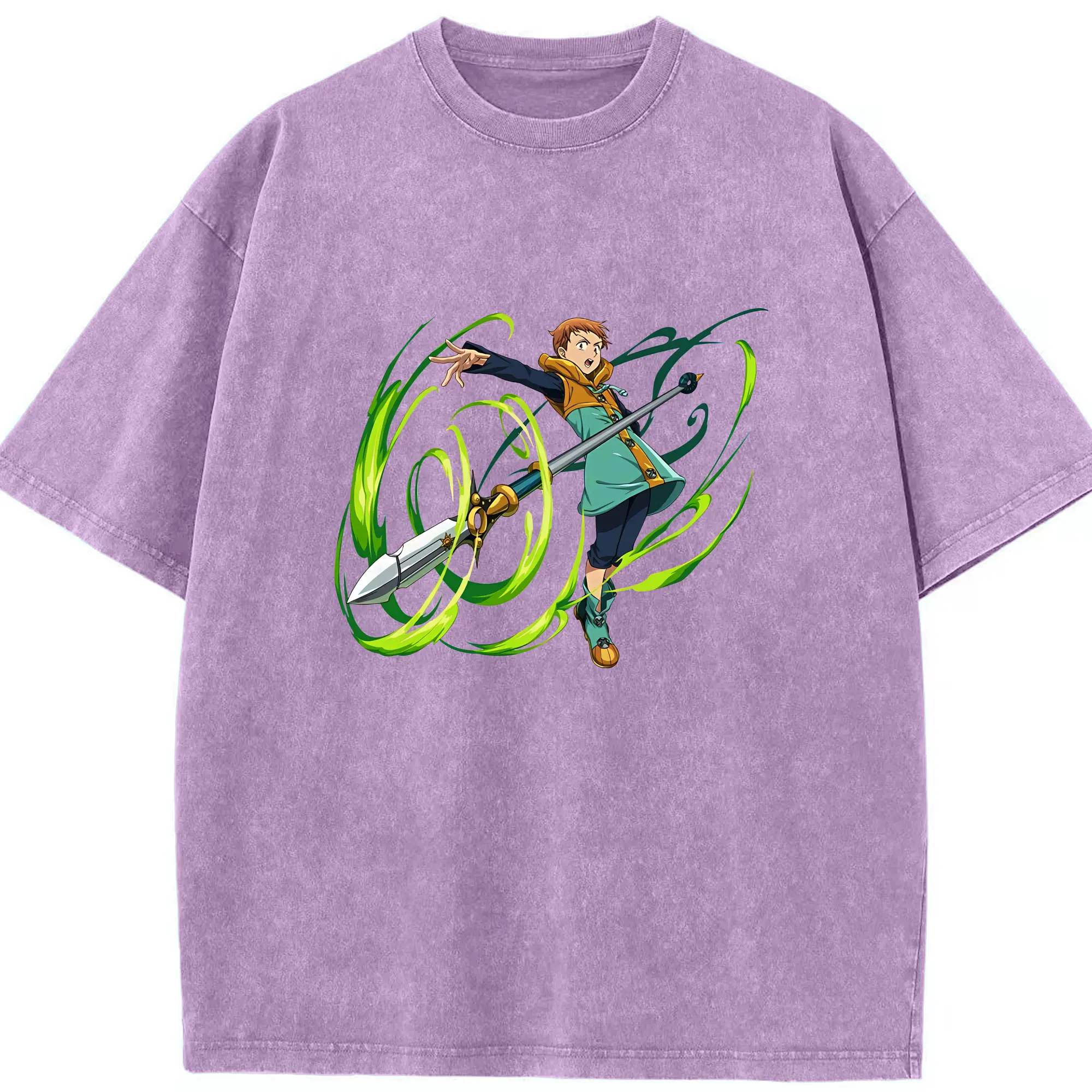 七つの大罪 グッズ キング - 綿100% ヴィンテージ風 半袖Tシャツ ・ 背面プリント ・ 柔らか肌触り ・ 通気性 快適 ・ スポーツ カジュアル 外出用