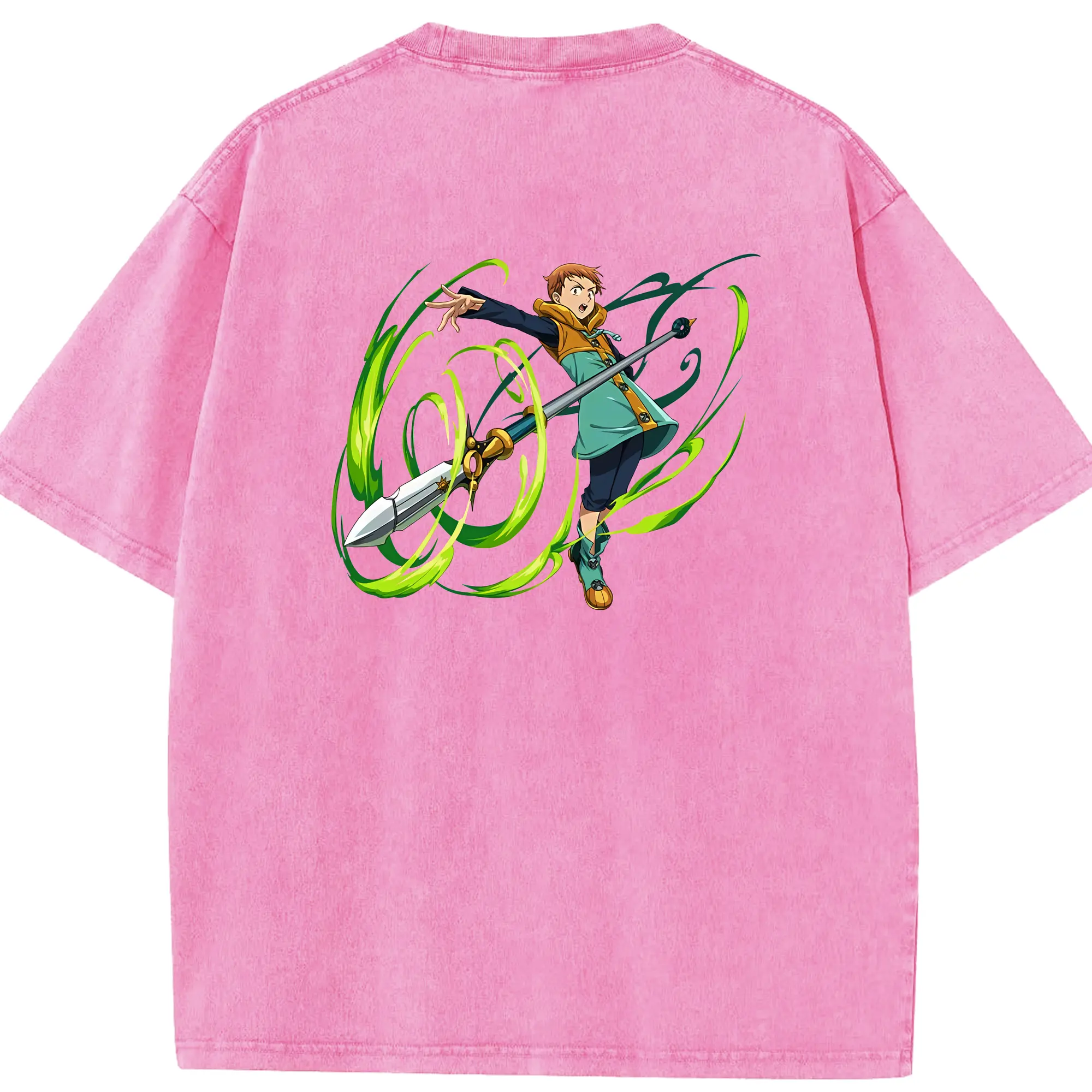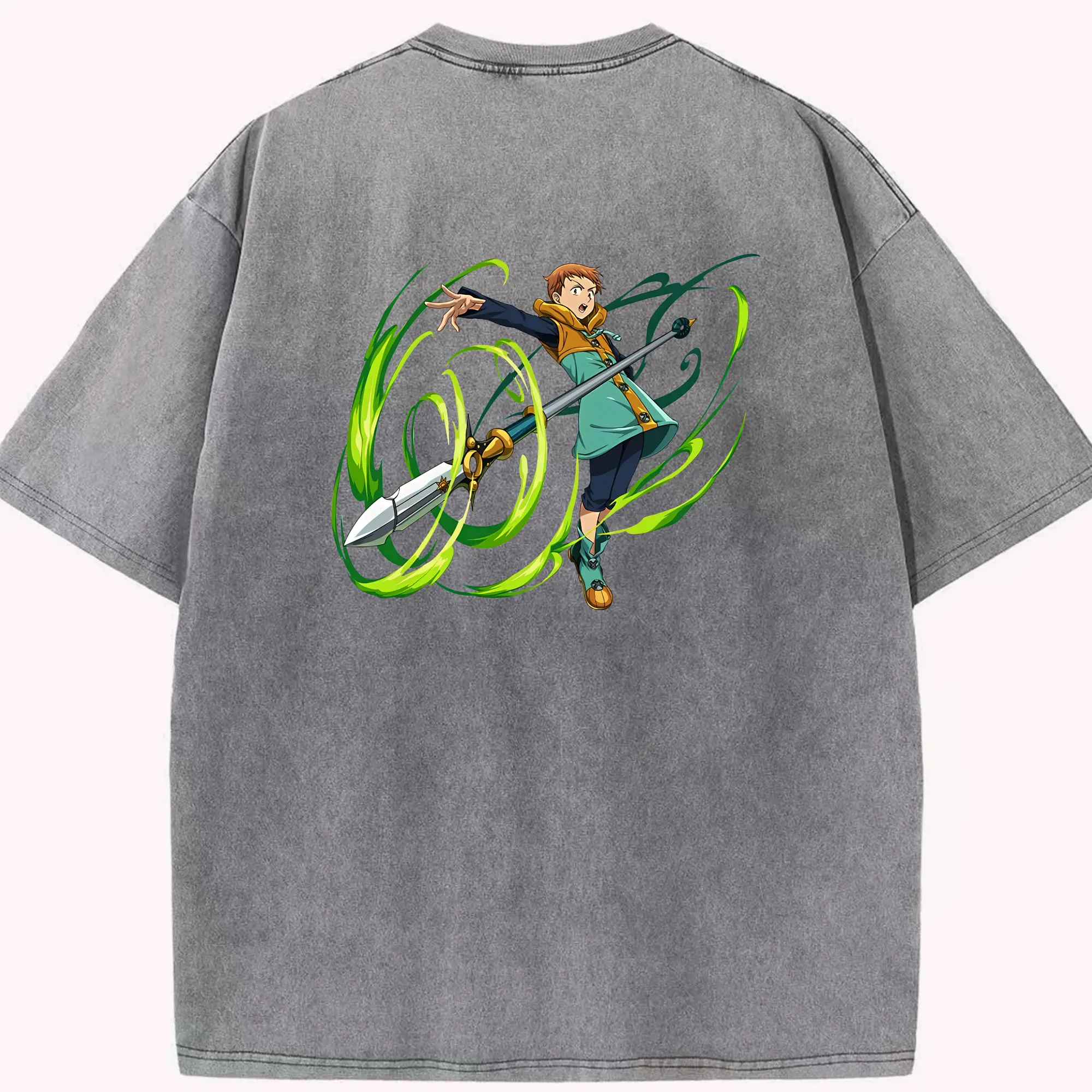 七つの大罪 グッズ キング - 綿100% ヴィンテージ風 半袖Tシャツ ・ フロントプリント ・ 柔らか肌触り ・ 通気性 快適 ・ スポーツ カジュアル 外出用