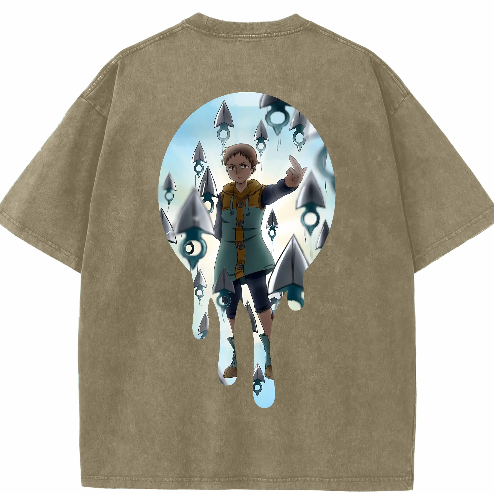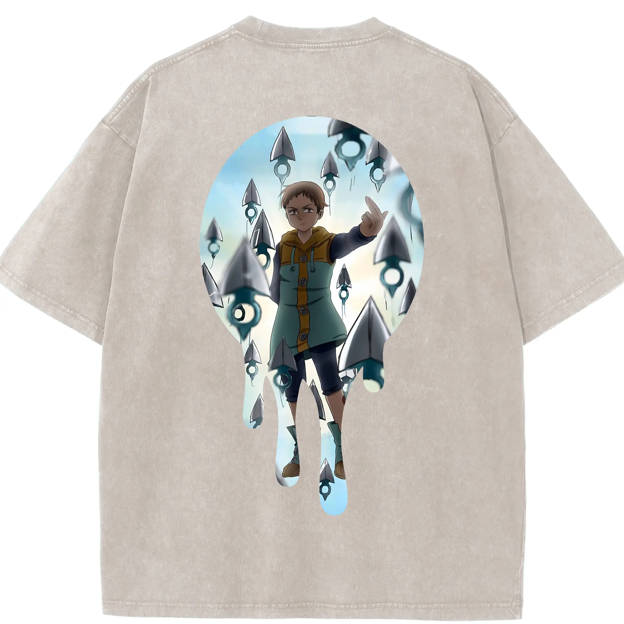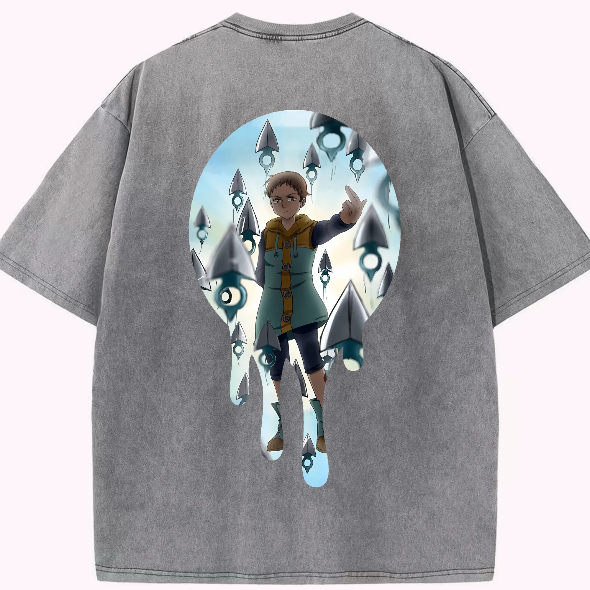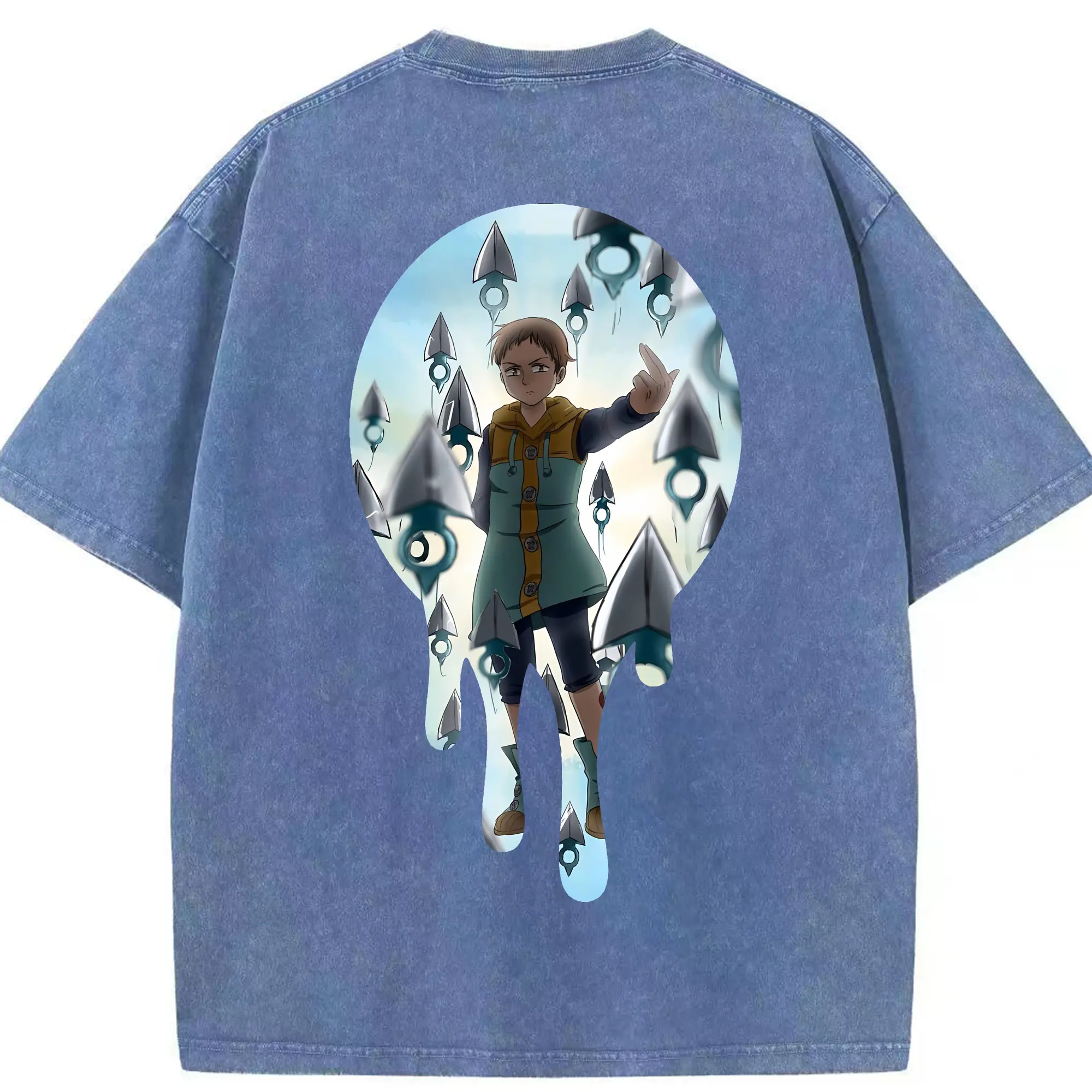 七つの大罪 グッズ キング - 綿100% ヴィンテージ風 半袖Tシャツ ・ フロントプリント ・ 柔らか肌触り ・ 通気性 快適 ・ スポーツ カジュアル 外出用