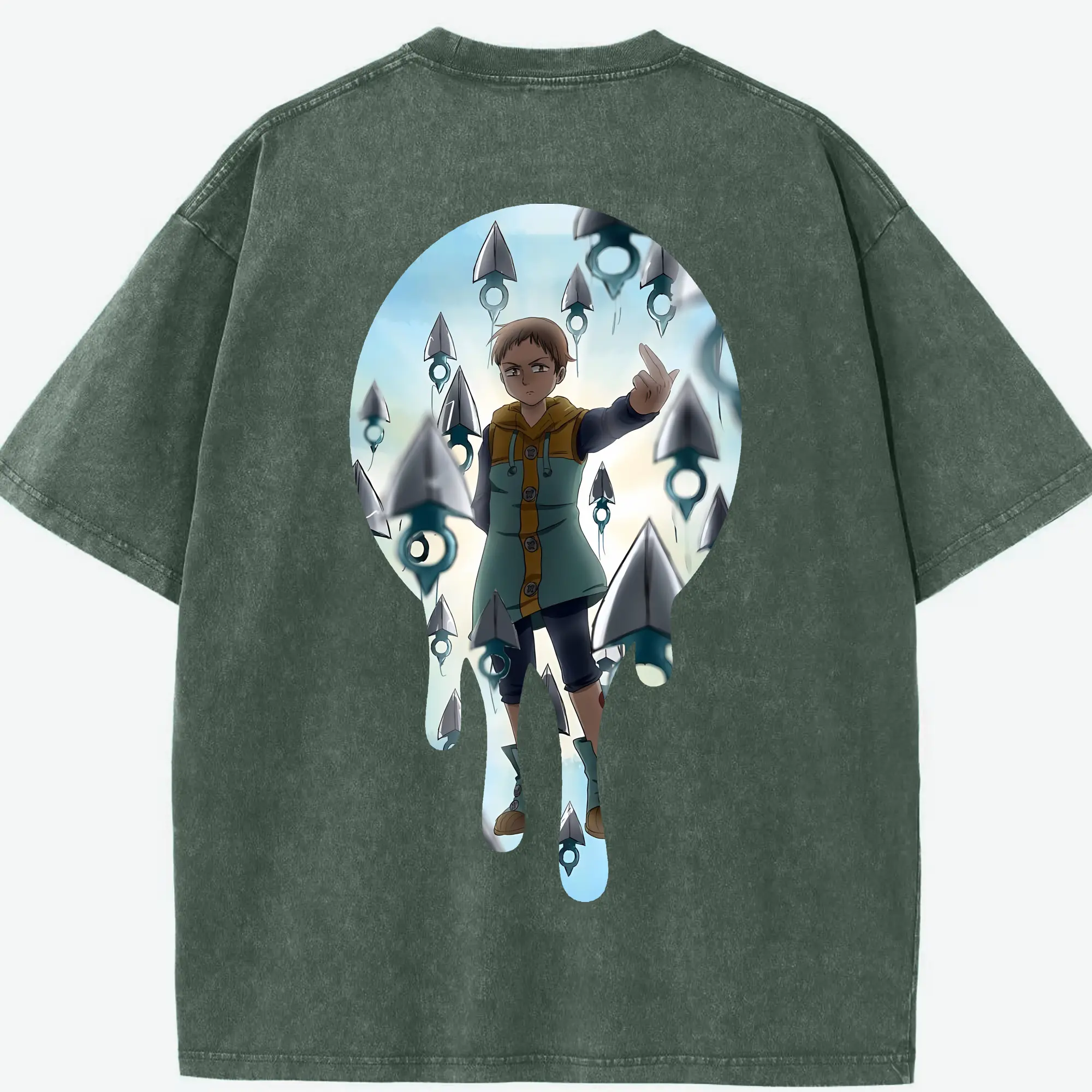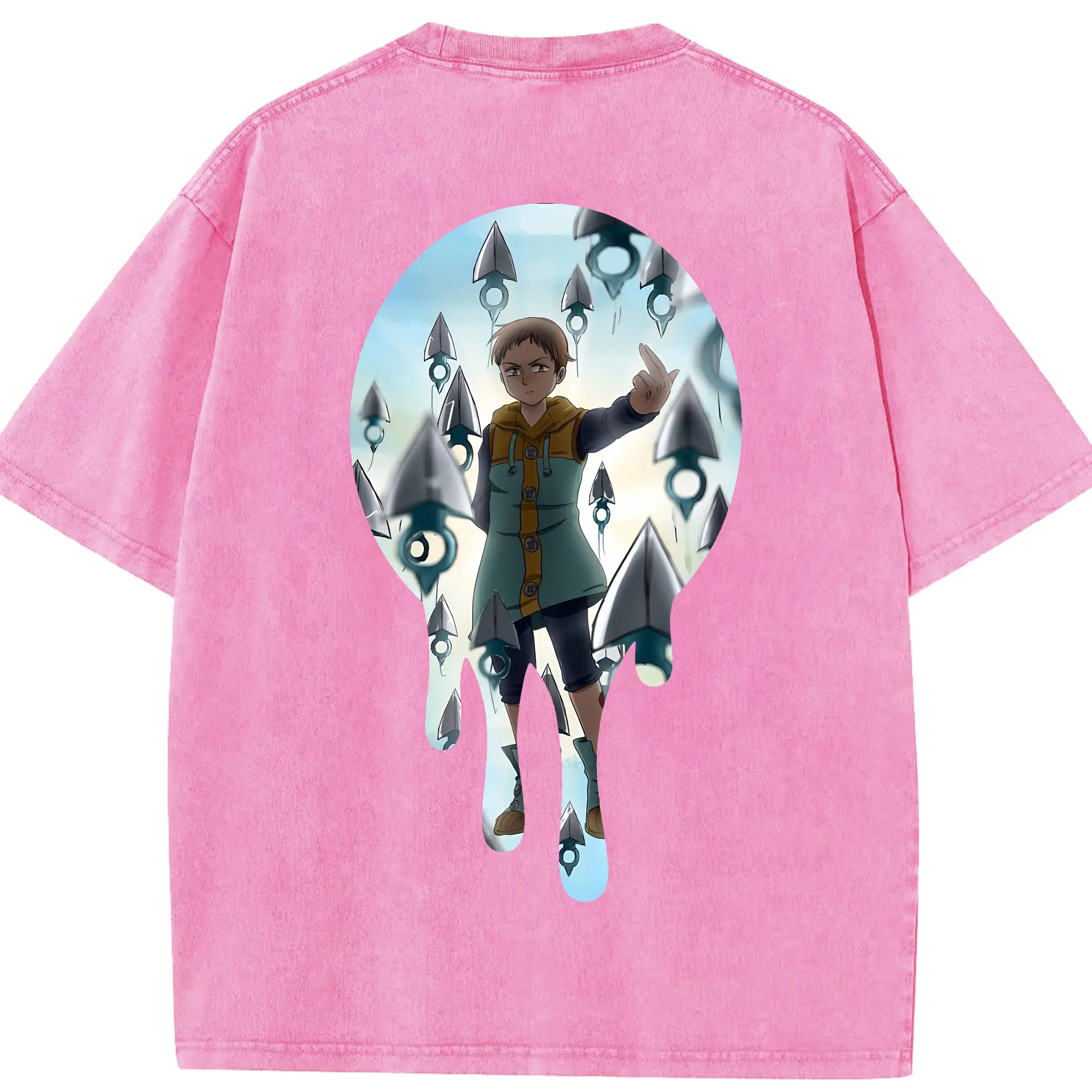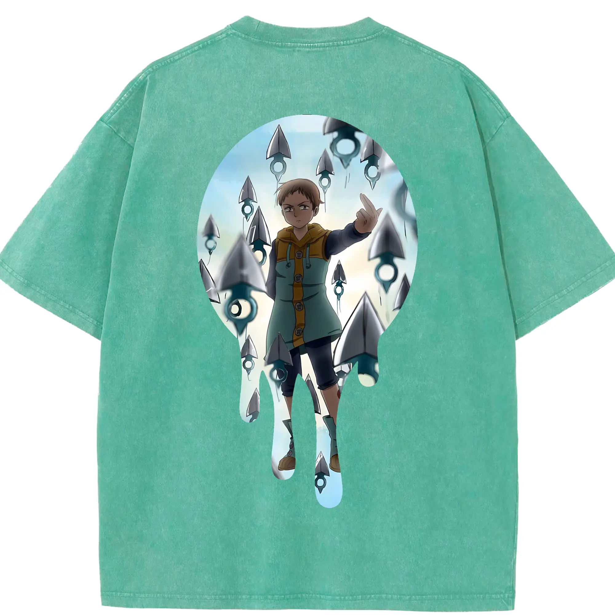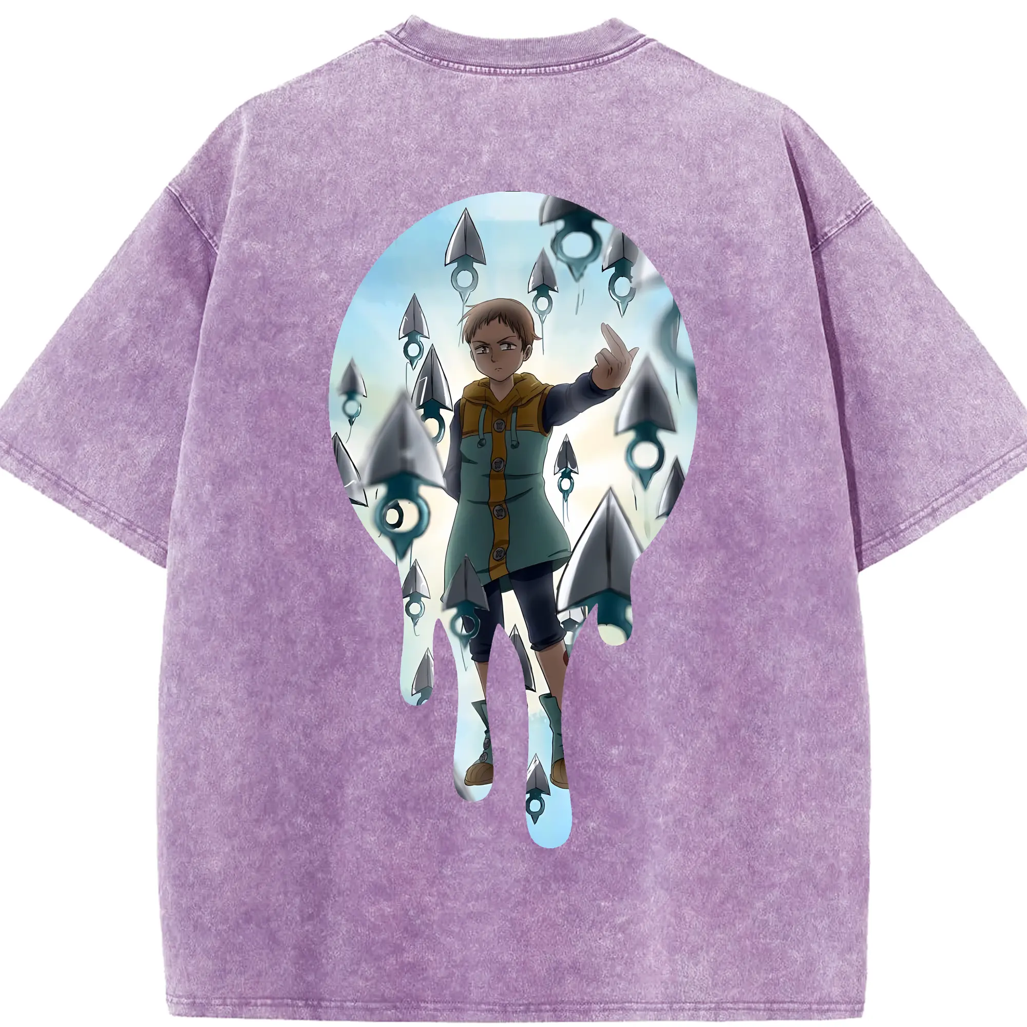 七つの大罪 グッズ キング - 綿100% ヴィンテージ風 半袖Tシャツ ・ フロントプリント ・ 柔らか肌触り ・ 通気性 快適 ・ スポーツ カジュアル 外出用