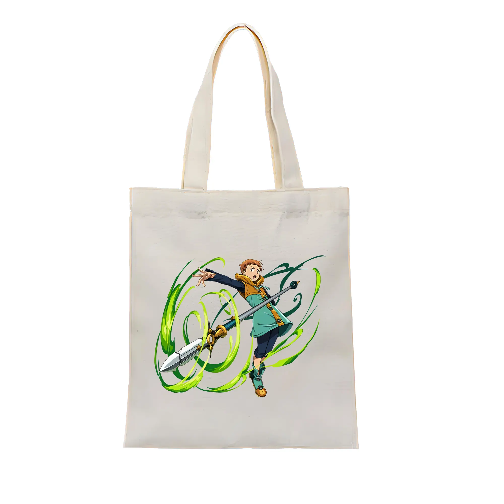 七つの大罪 グッズ キング - 縦型キャンバス手提げバッグ(トートバッグ) ・ キャンバス素材 ・ ショッピング用 ・ 軽量 丈夫 お手入れ簡単