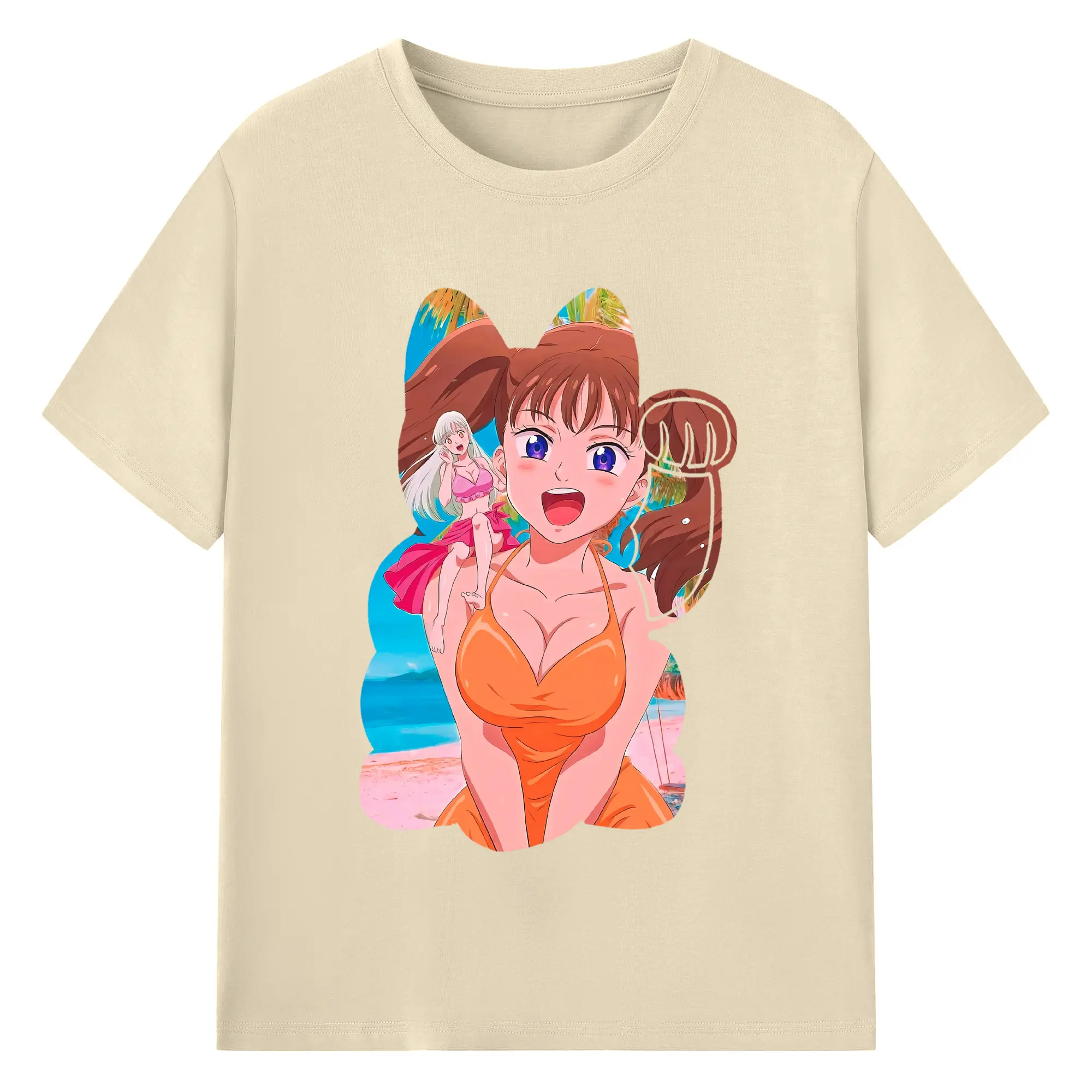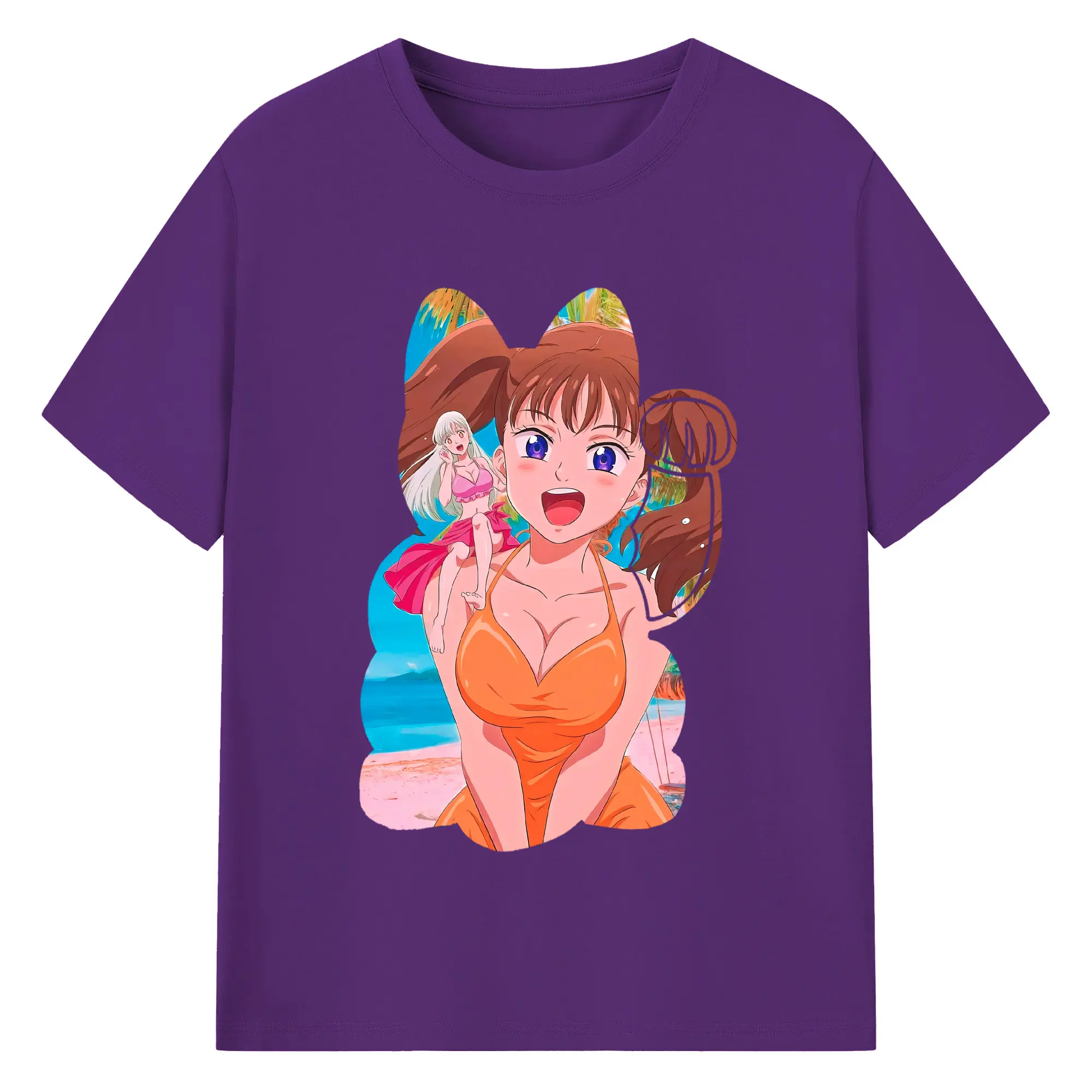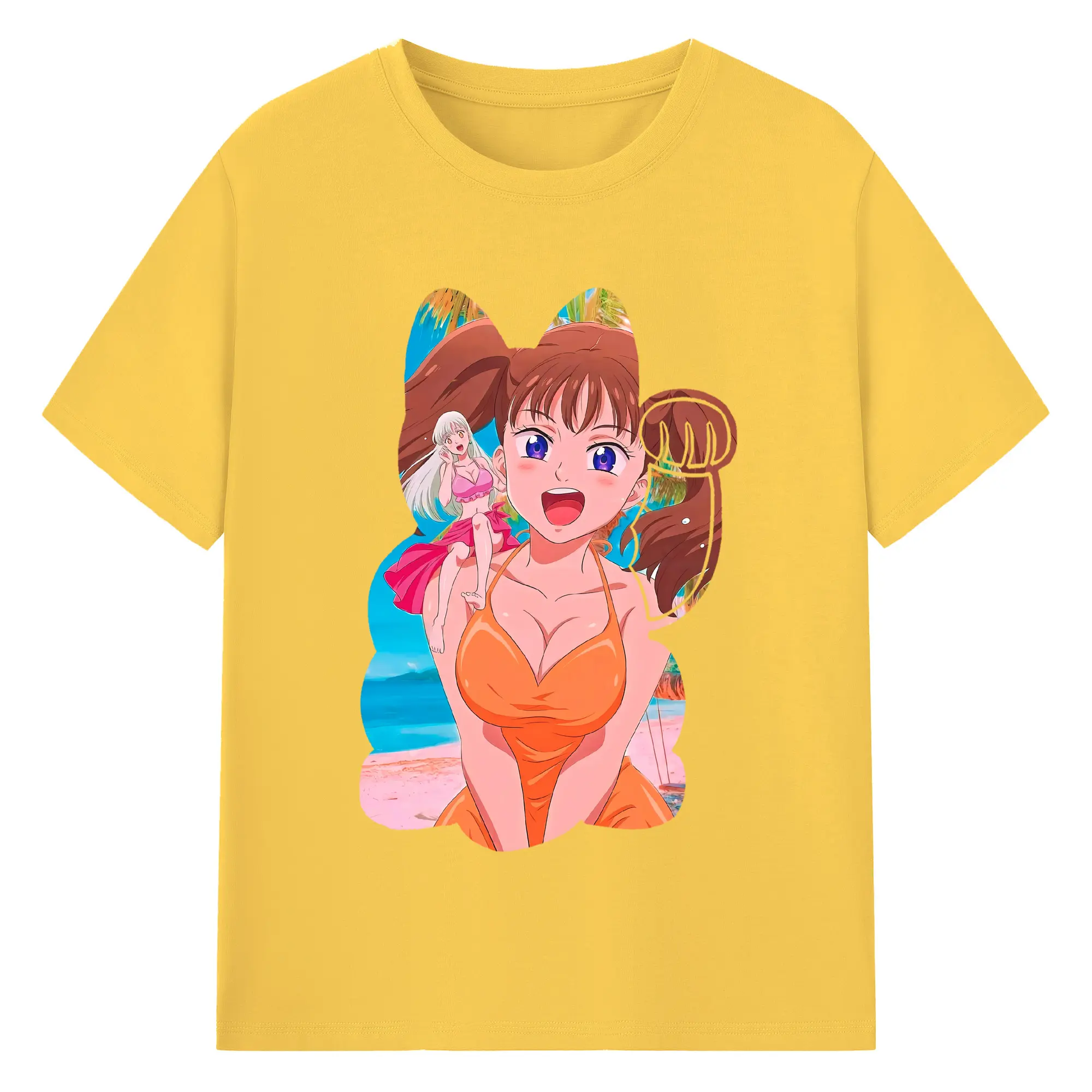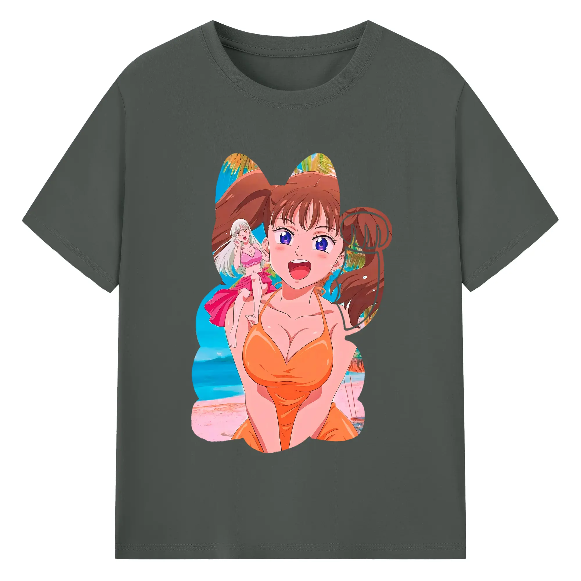 七つの大罪 グッズ ディアンヌ - 綿100% 半袖Tシャツ ・ バックプリント ・ 快適 通気性 ・ 日常使い 散歩 スポーツ用