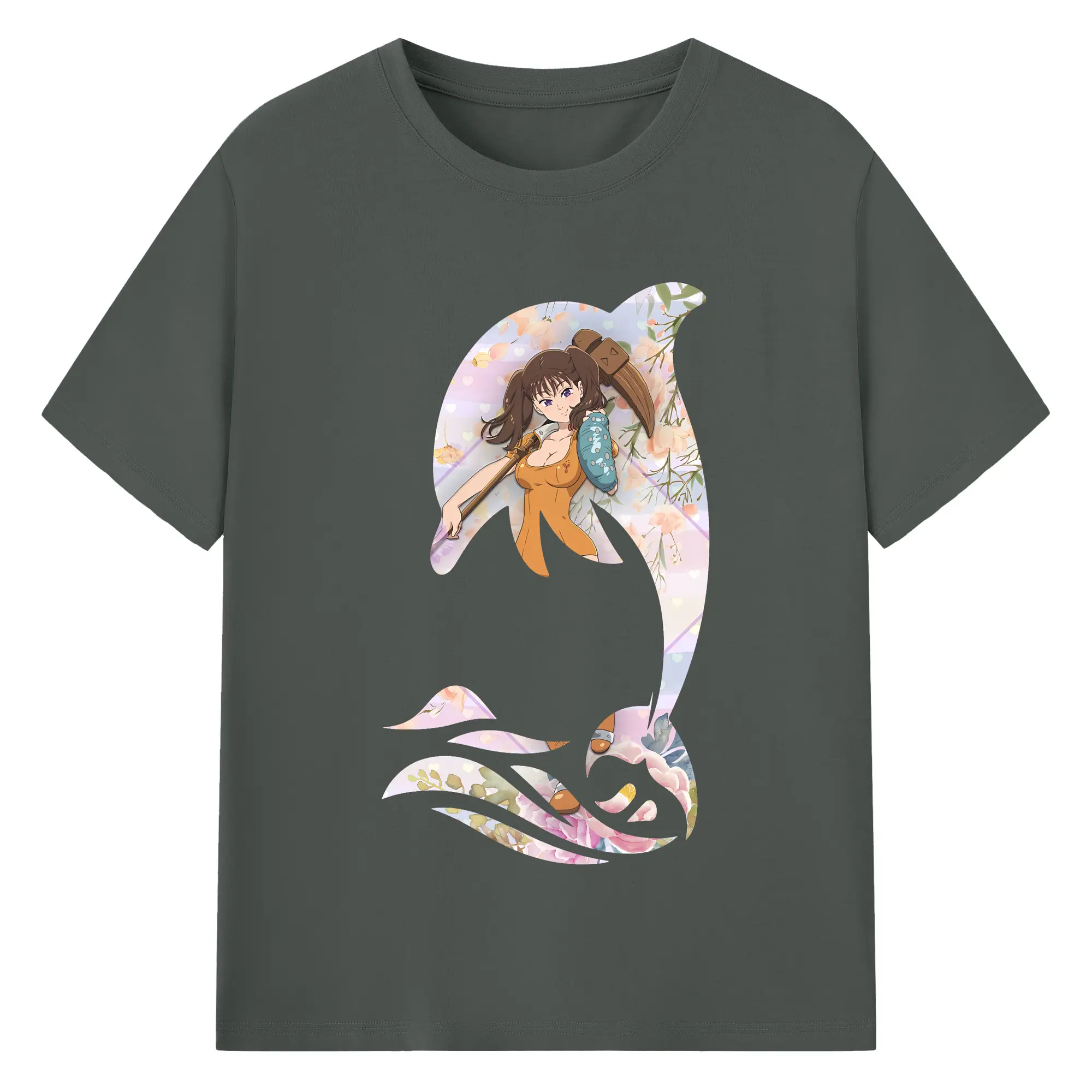 七つの大罪 グッズ ディアンヌ - 綿100% 半袖Tシャツ ・ バックプリント ・ 快適 通気性 ・ 日常使い 散歩 スポーツ用