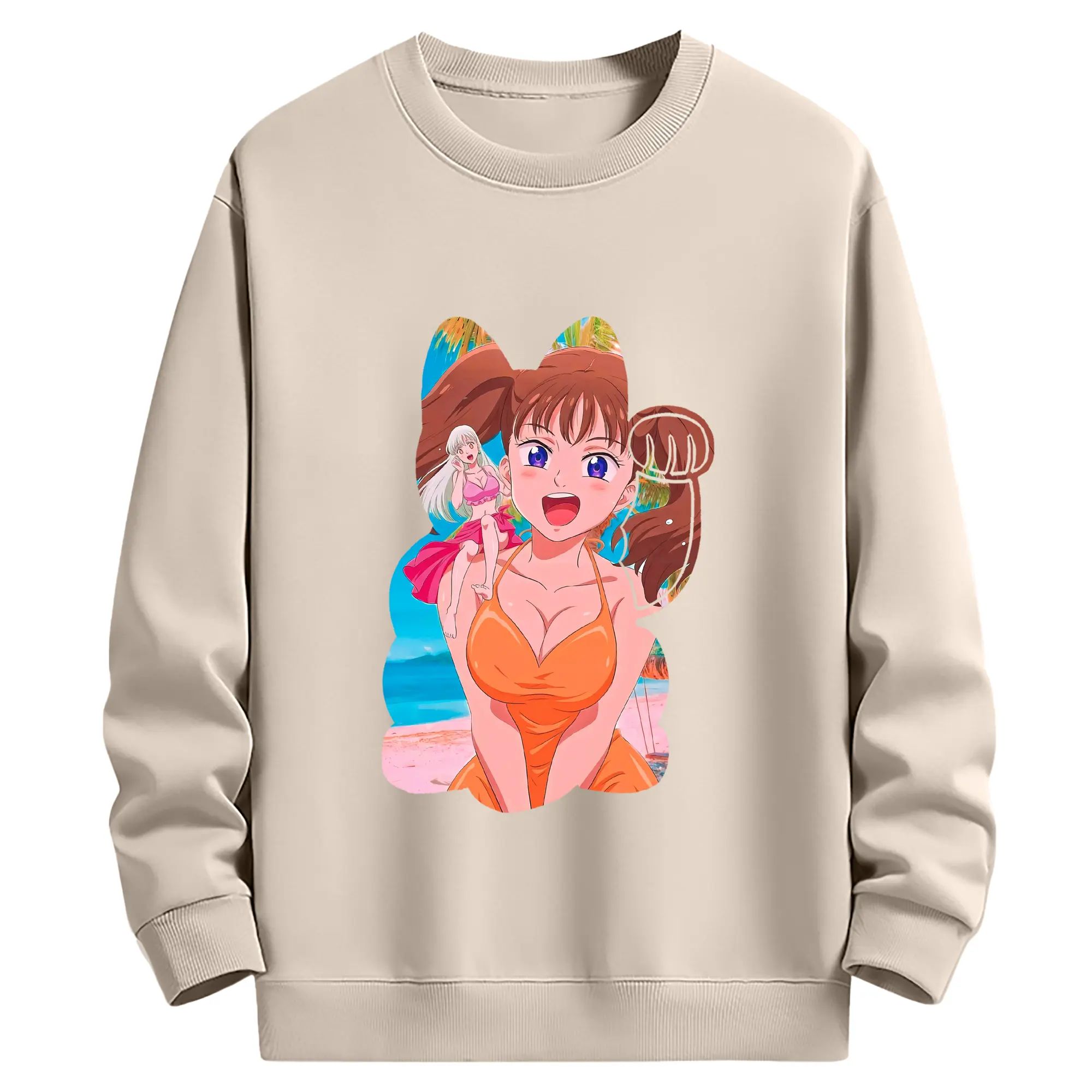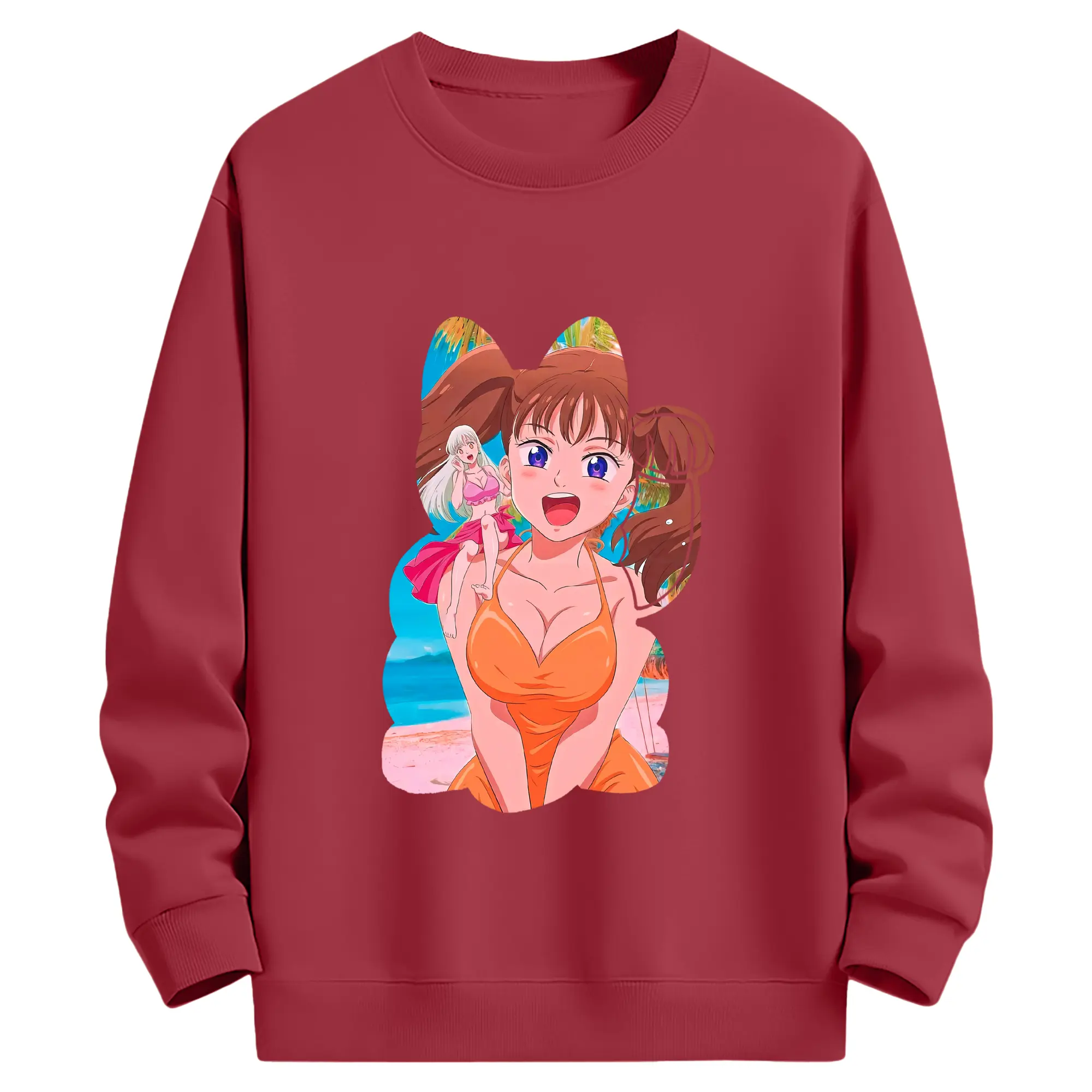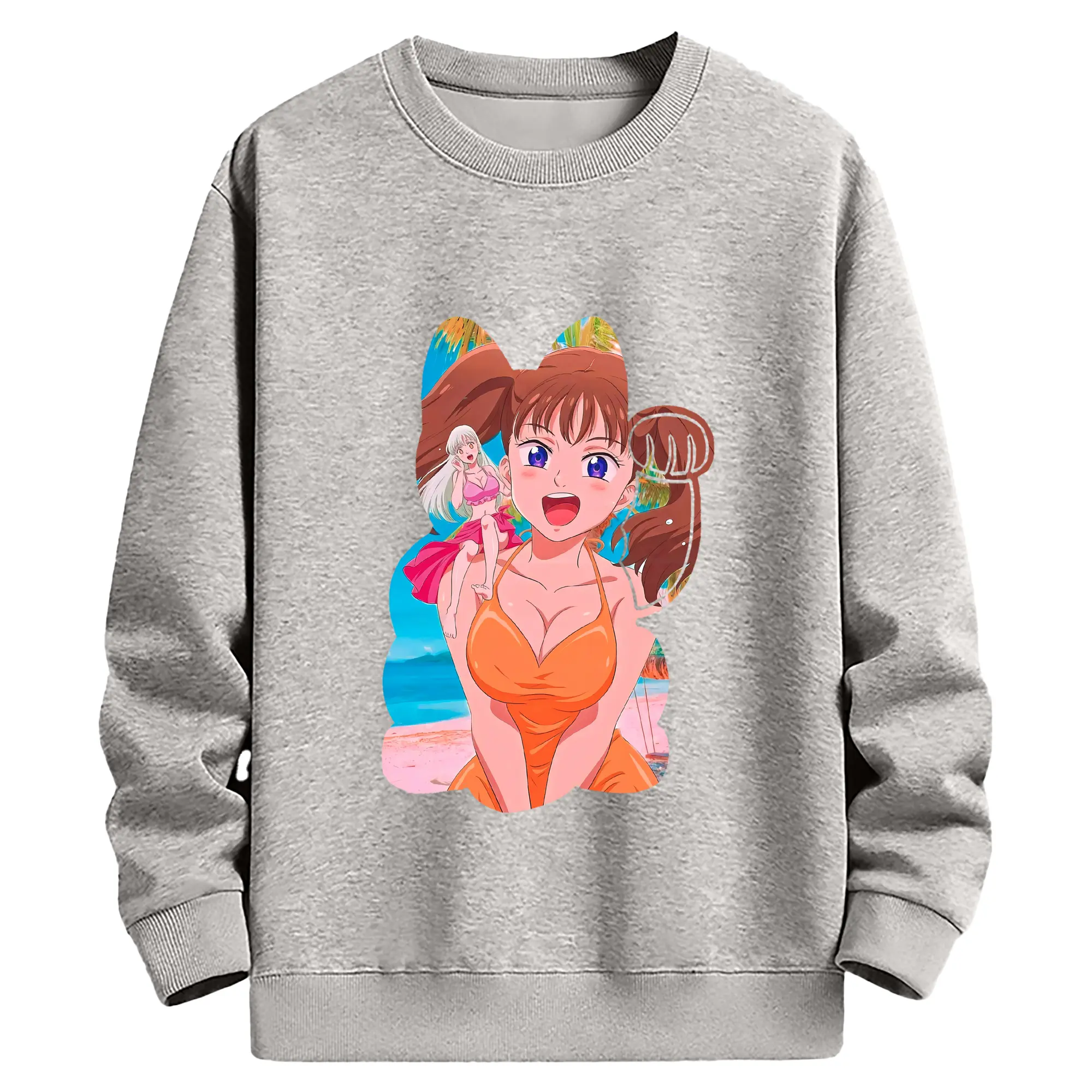 七つの大罪 グッズ ディアンヌ - 薄手 クルーネック スウェット 裏毛260g · ポリエステル 春秋向け カジュアル 男女兼用 · トレーナー デイリー スポーツ 散歩に最適
