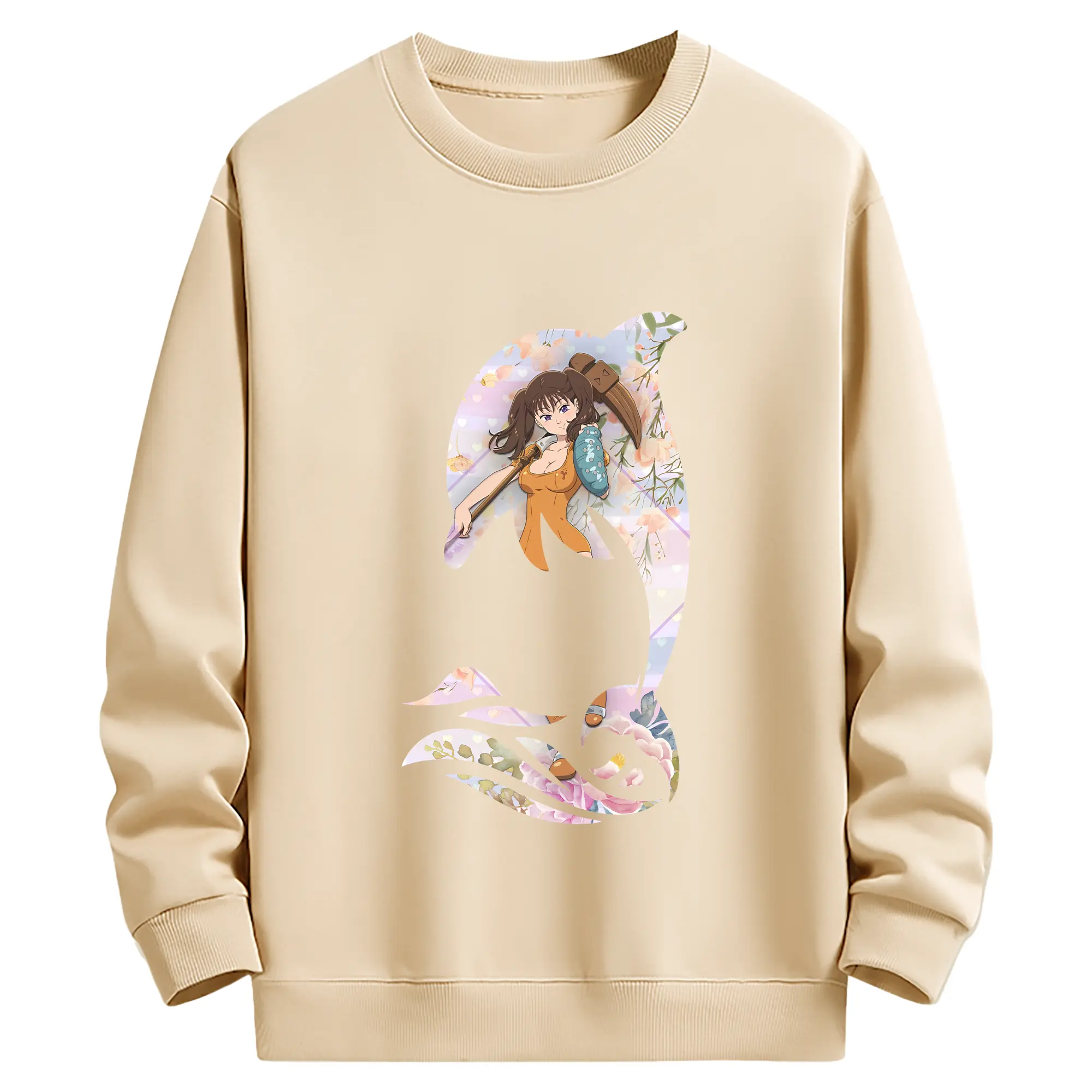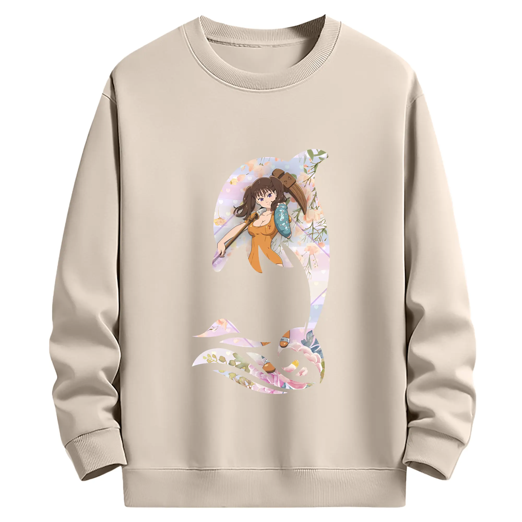 七つの大罪 グッズ ディアンヌ - 薄手 クルーネック スウェット 裏毛260g · ポリエステル 春秋向け カジュアル 男女兼用 · トレーナー デイリー スポーツ 散歩に最適