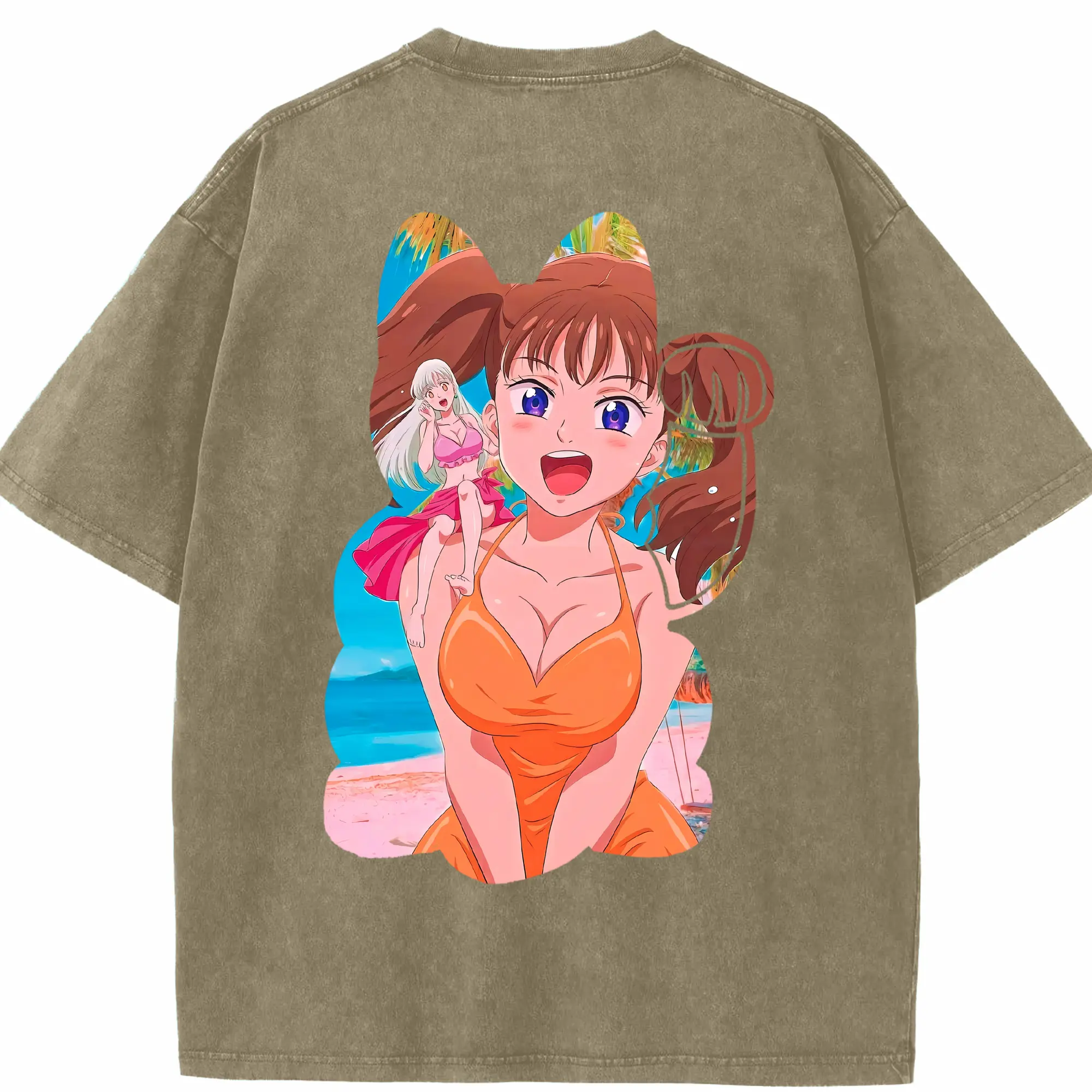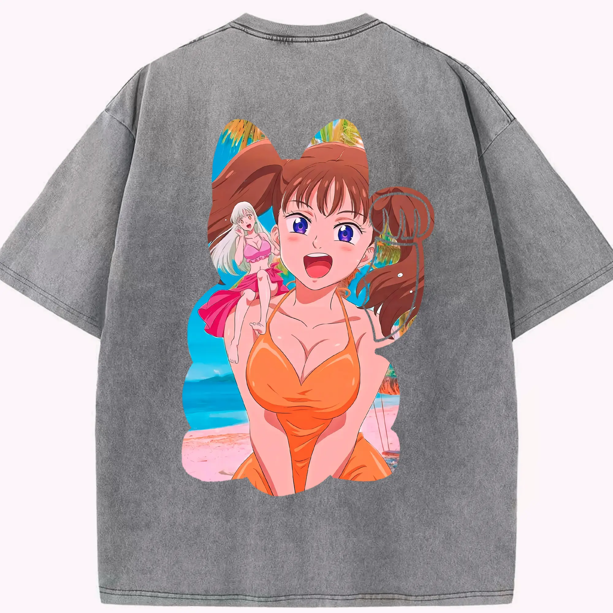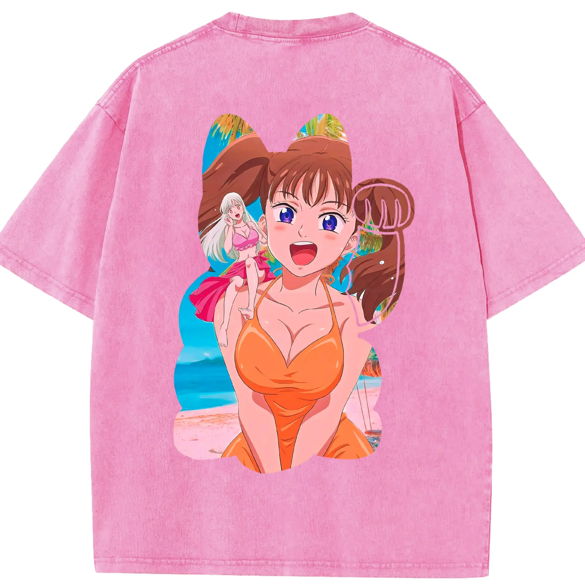 七つの大罪 グッズ ディアンヌ - 綿100% ヴィンテージ風 半袖Tシャツ ・ フロントプリント ・ 柔らか肌触り ・ 通気性 快適 ・ スポーツ カジュアル 外出用