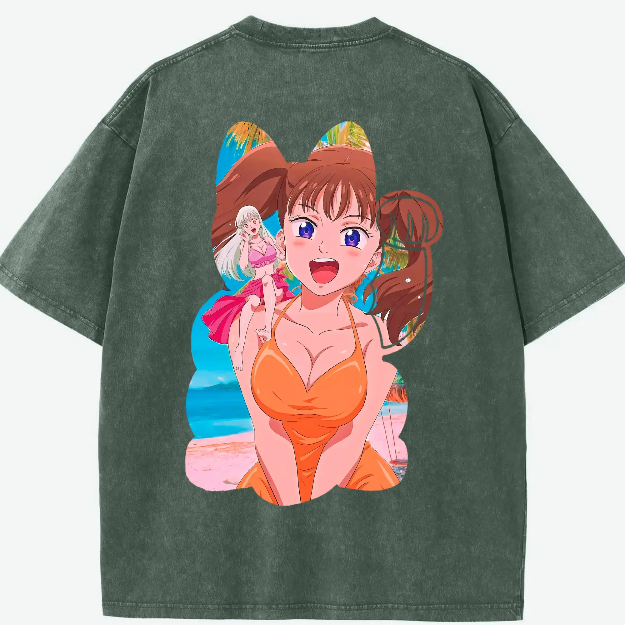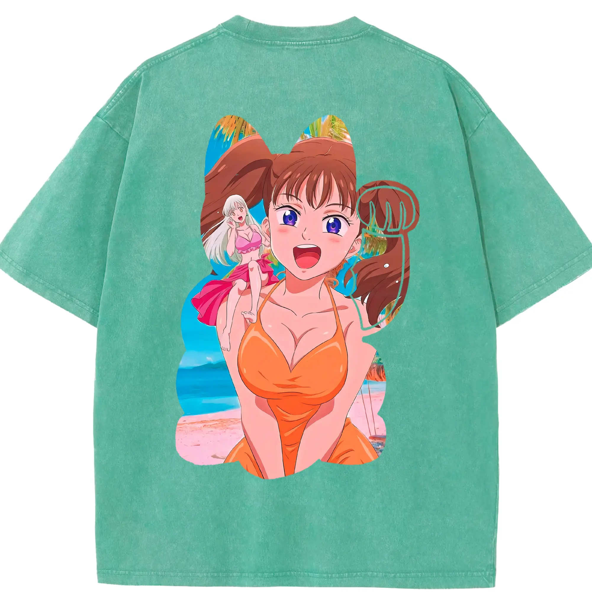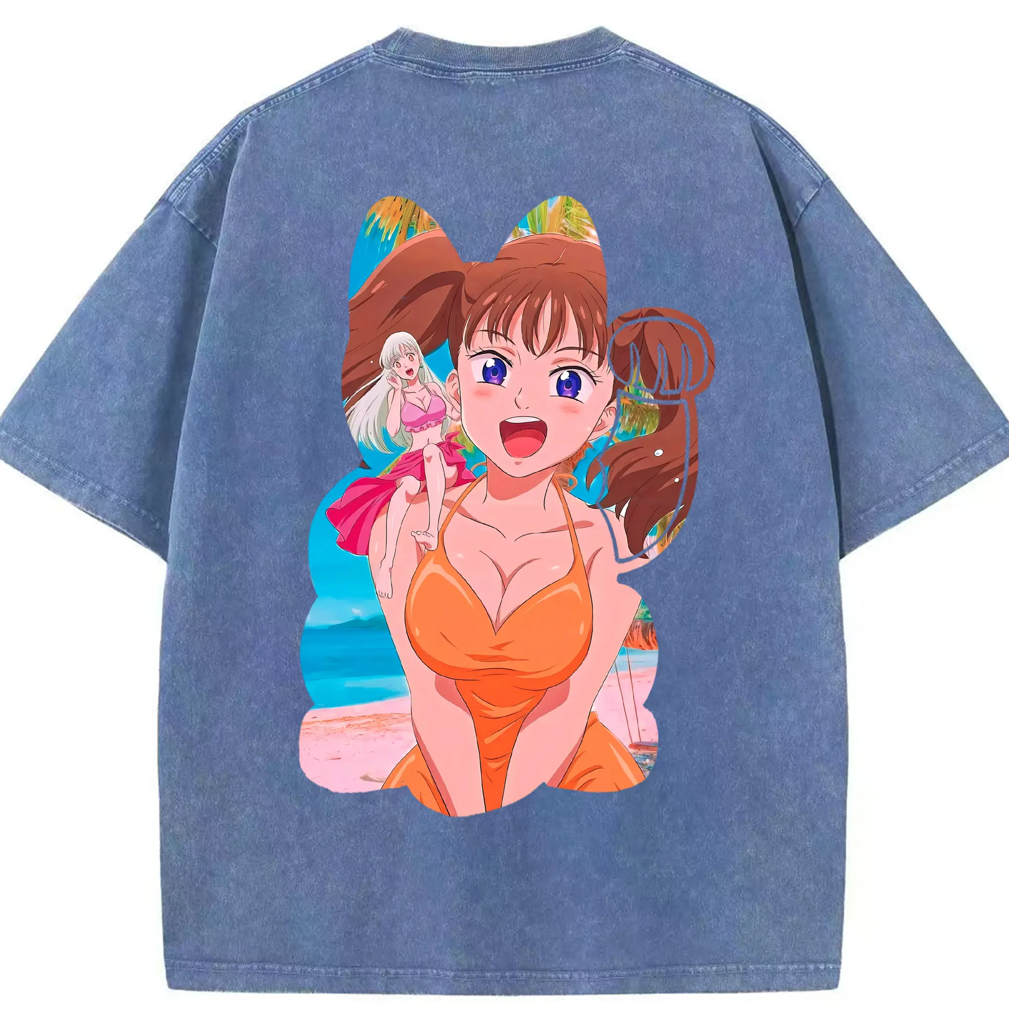 七つの大罪 グッズ ディアンヌ - 綿100% ヴィンテージ風 半袖Tシャツ ・ フロントプリント ・ 柔らか肌触り ・ 通気性 快適 ・ スポーツ カジュアル 外出用